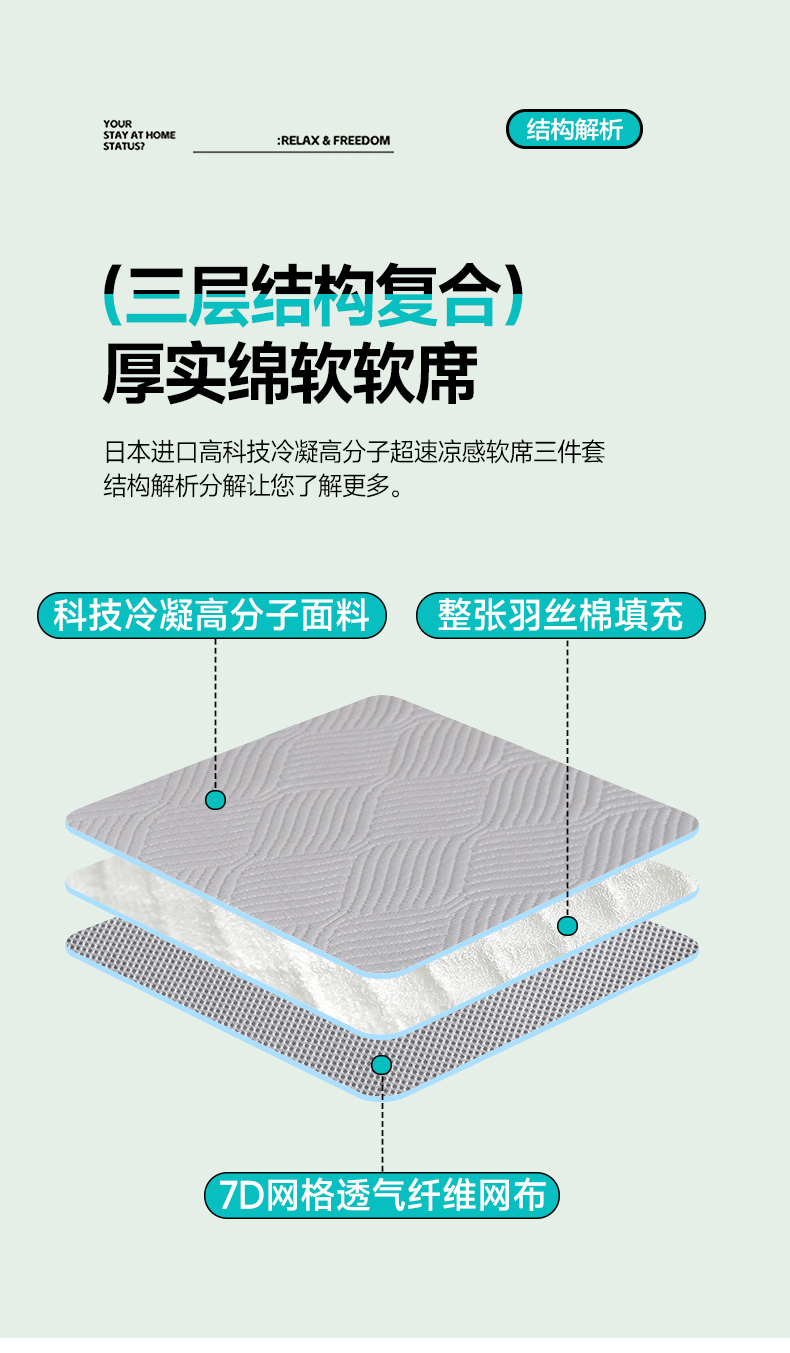 商品名称:桂雅居 2025新款高科技冷凝高分子超速凉感软席三件套 星空灰