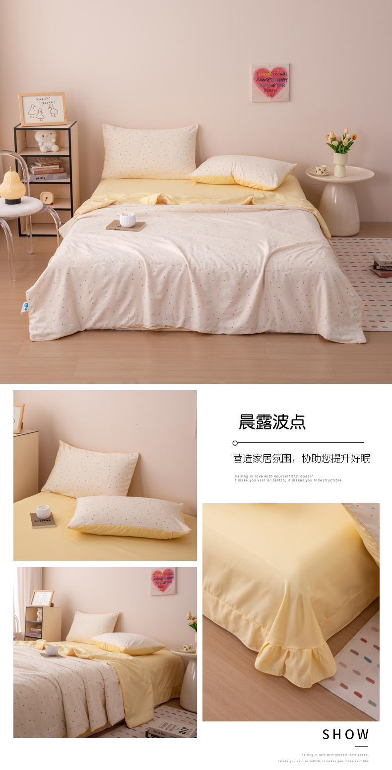 商品名称:南北家居 2025新款针织棉双层纱夏被四件套 晨露波点