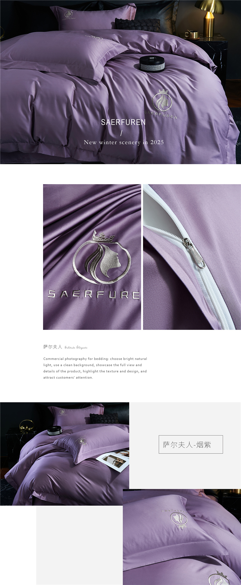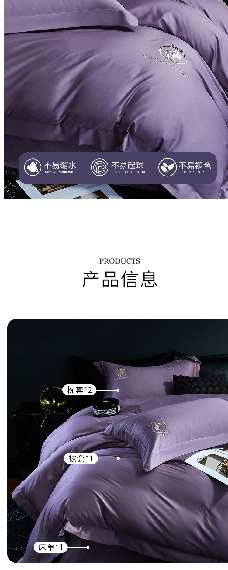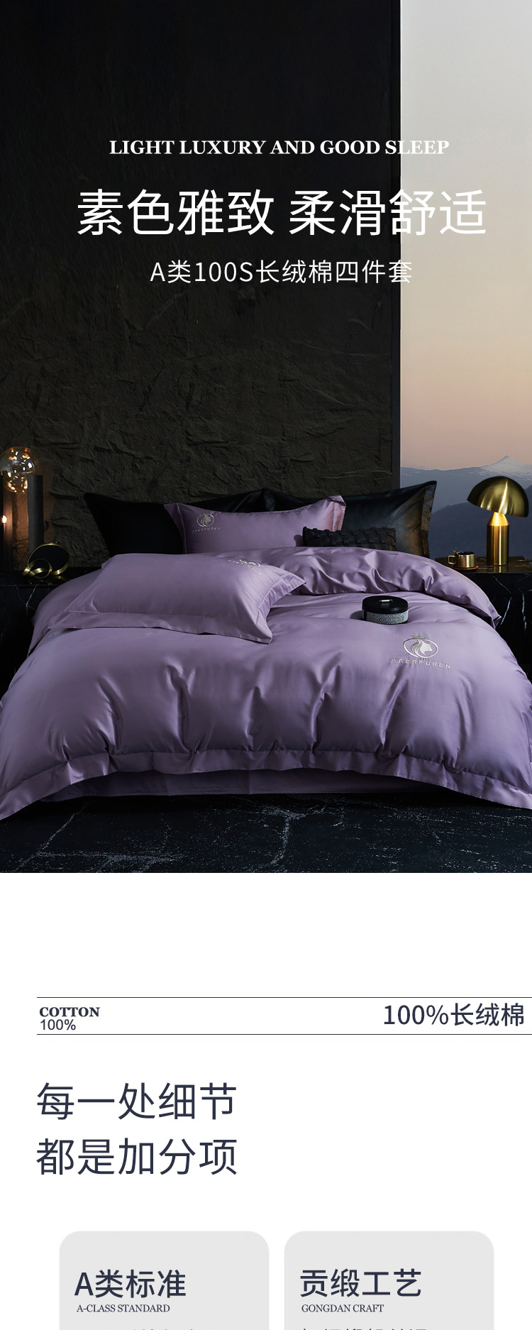 当前位置: 91家纺网 > 商品网购 > 床品套件 > 四件套 > 长绒棉四件套 > 沃尔居 2025新款全棉纯棉长绒棉四件套刺绣绣花纯色贡缎床笠款高端礼盒装 萨尔夫人-烟紫