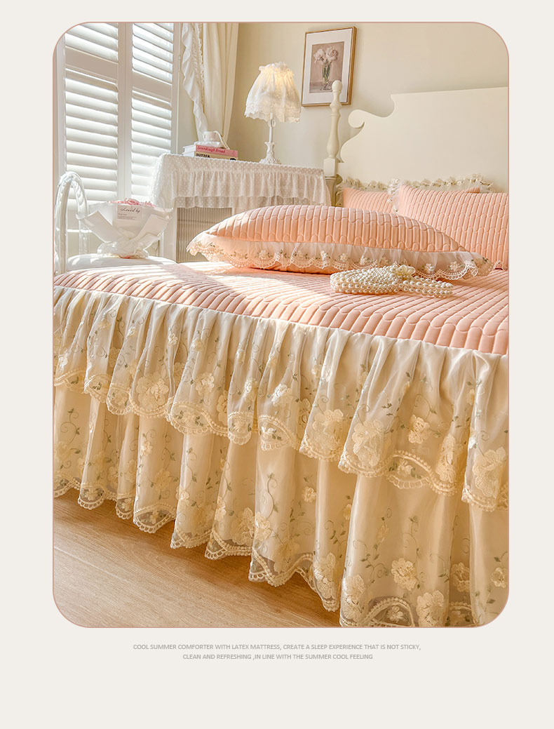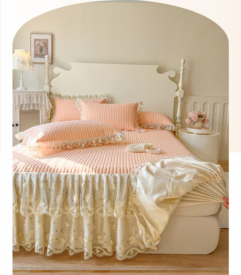 (总)恋尚 2025新款韩式蕾丝丝光棉夹棉床裙四件套,蜜芙-浅蓝,蜜芙-米黄,蜜芙-蜜桃粉,蜜芙-浅白,蜜芙-水绿,蜜芙-香芋紫