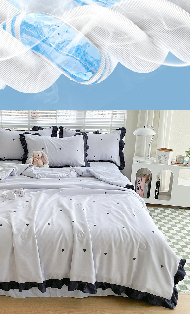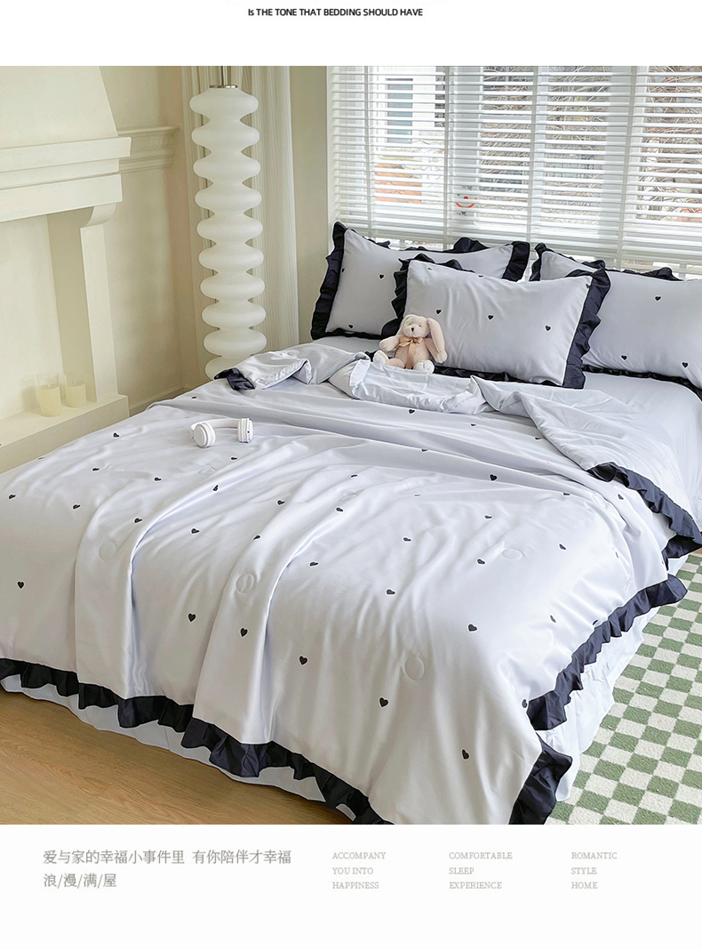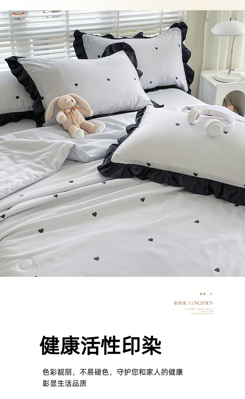 商品名称:绣女坊 2025新款水洗天丝夏被四件套 蓝色爱心