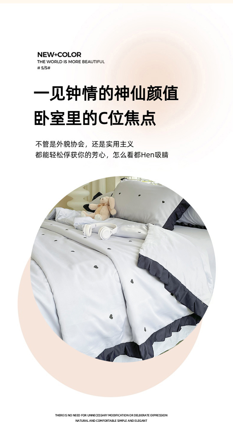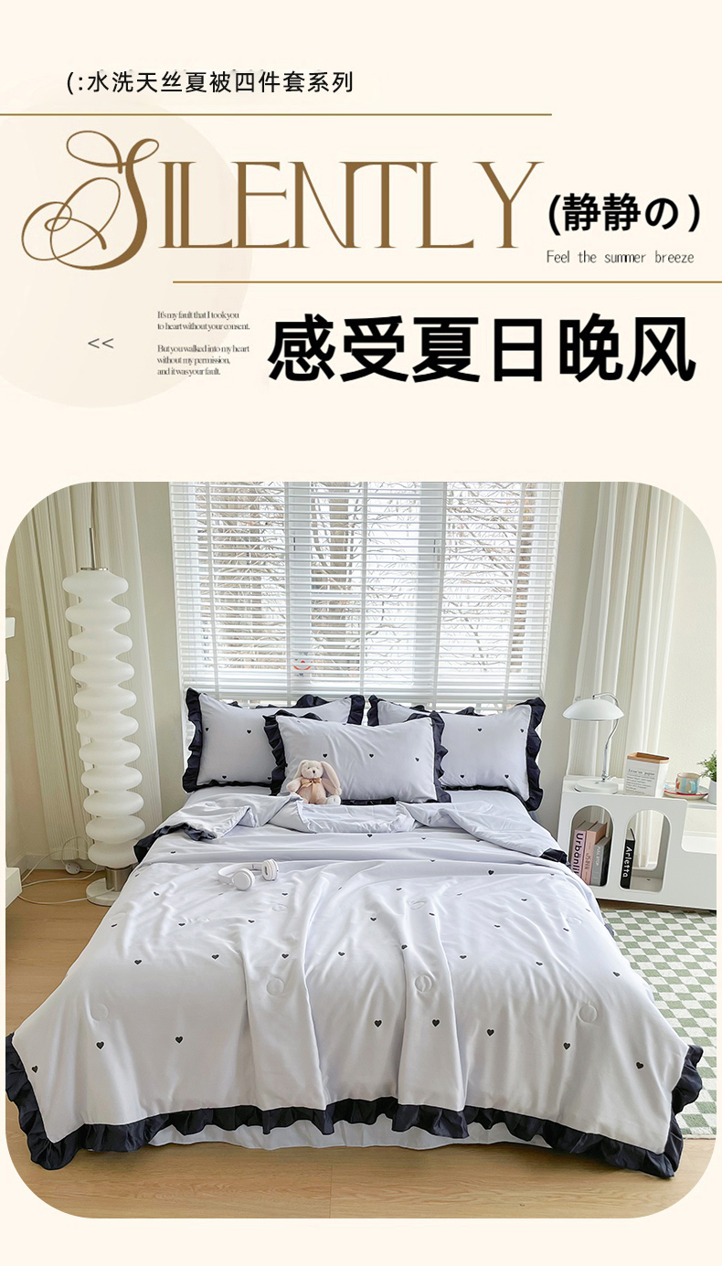 (总)绣女坊 2025新款水洗天丝夏被四件套,粉色爱心,粉色玫瑰,粉色圆点,黄色爱心,黄色玫瑰,蓝色爱心,蓝色蝴蝶结,蓝色圆点,银色爱心,紫色蝴蝶结,紫色圆点
