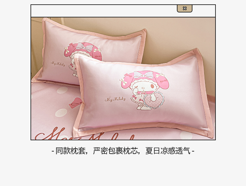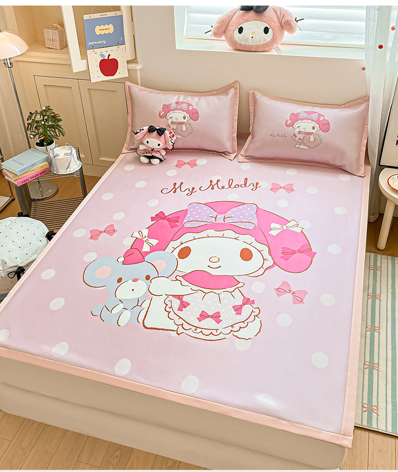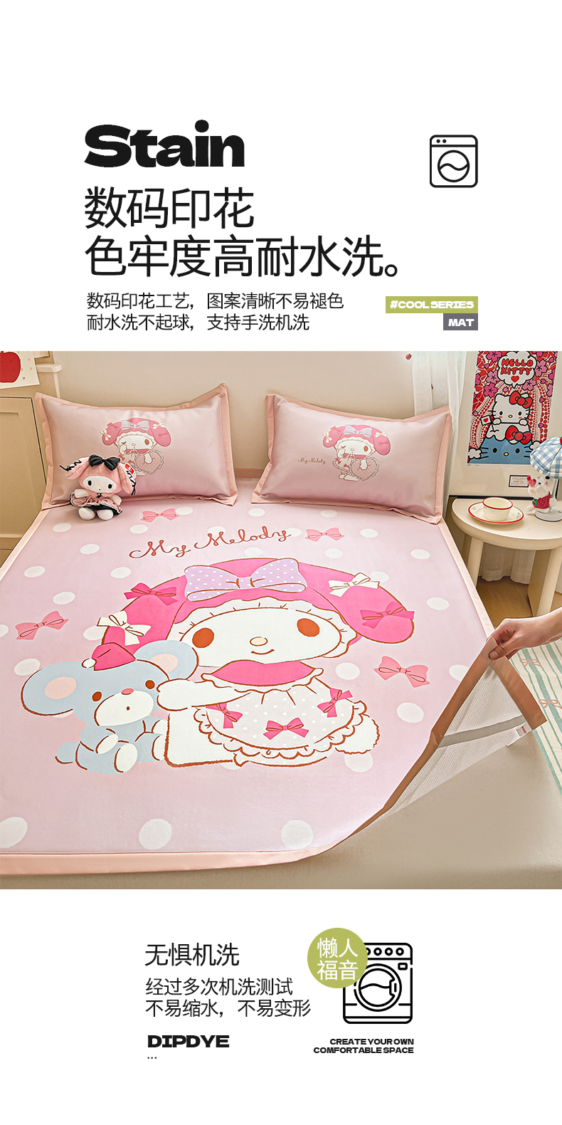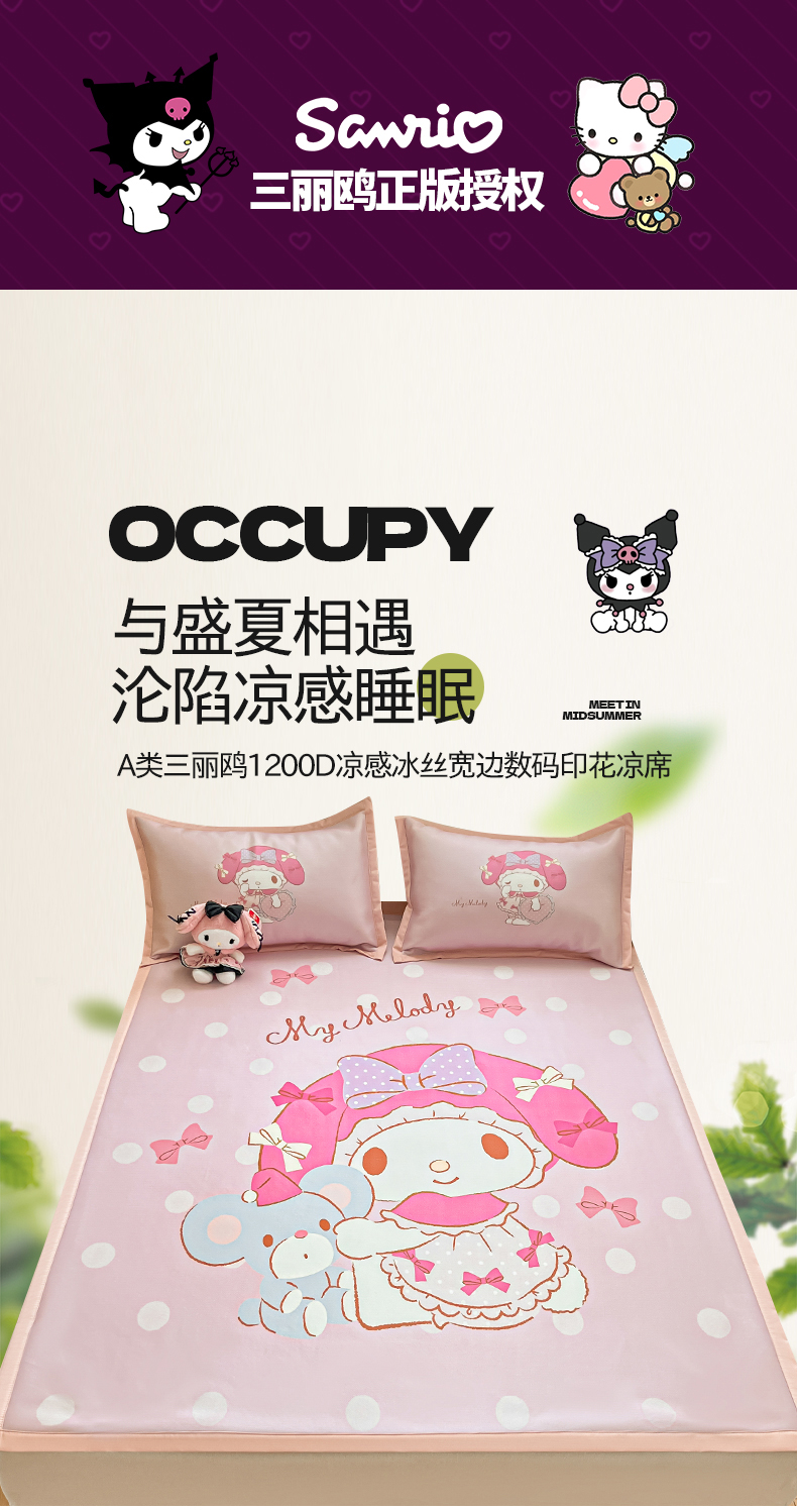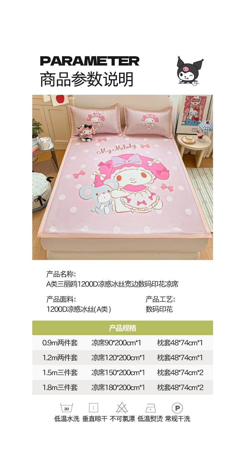 商品名称:桃子家居 2025新款A类三丽鸥授权数码印花中分子1200D凉感冰丝宽边凉感软席席子 冰丝席-美乐蒂小熊