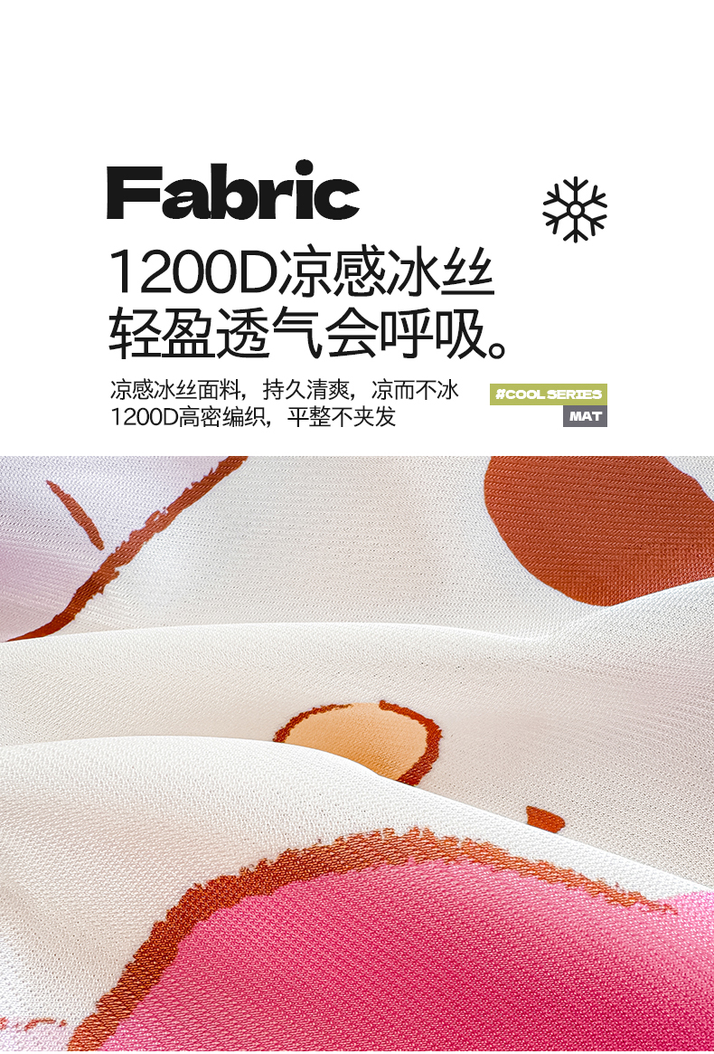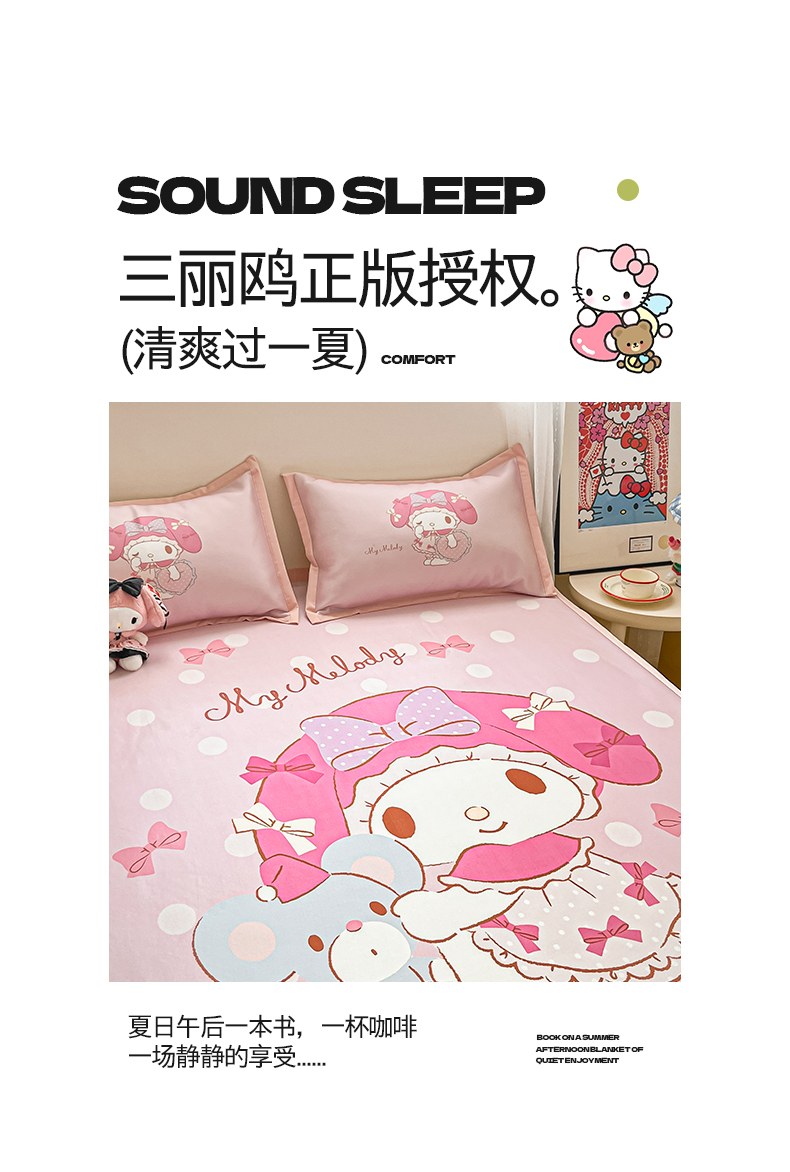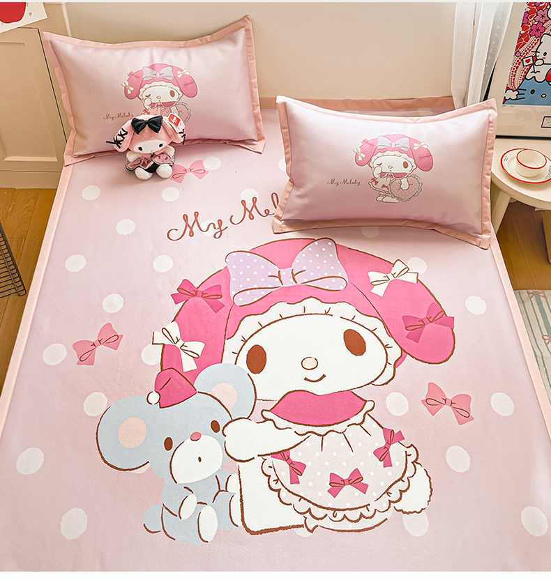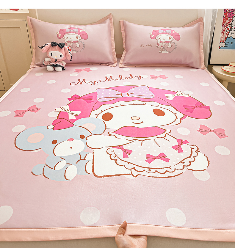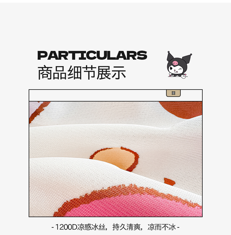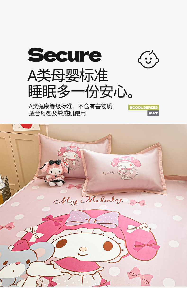 商品名称:桃子家居 2025新款A类三丽鸥授权数码印花中分子1200D凉感冰丝宽边凉感软席席子 冰丝席-美乐蒂小熊