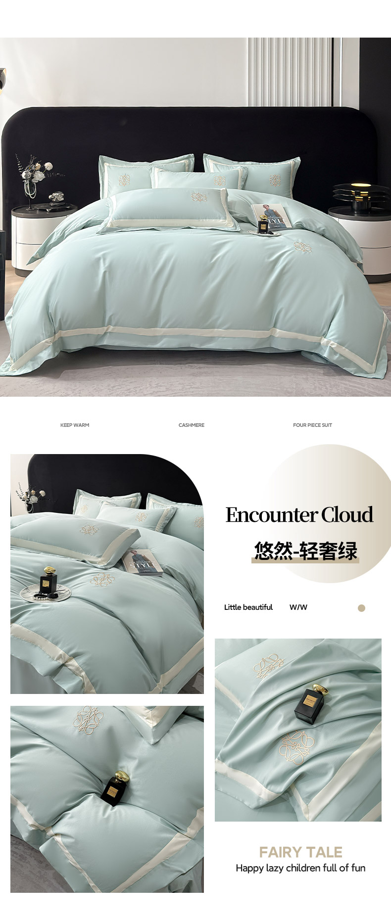 (总)合欢(原天一阁) 2025新款A类高克重全消光韩版牛奶绒刺绣四件套-千姿,千姿 湖绿,千姿 浅豆沙,千姿 天蓝,千姿 原木色