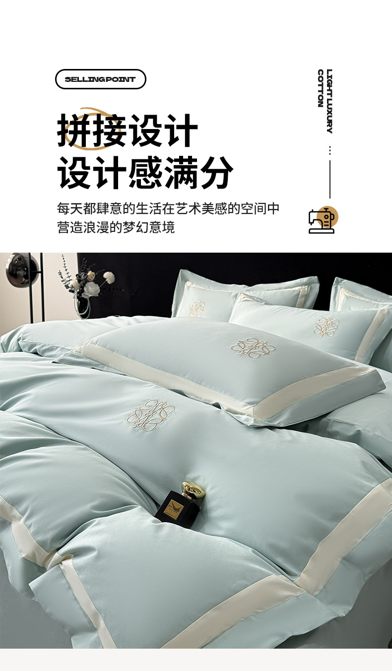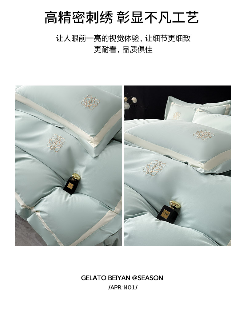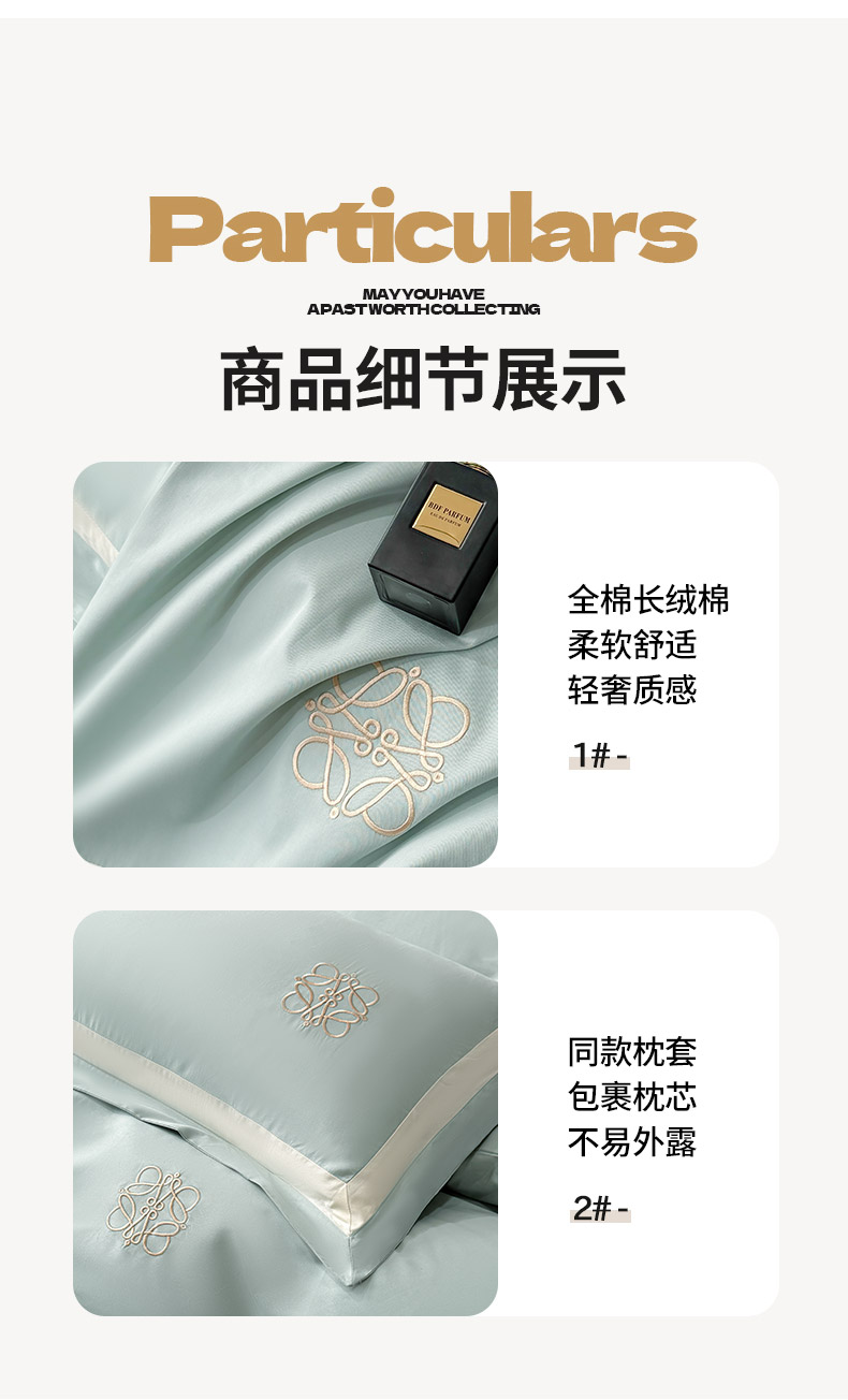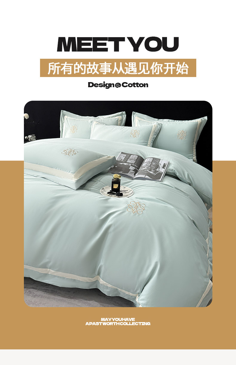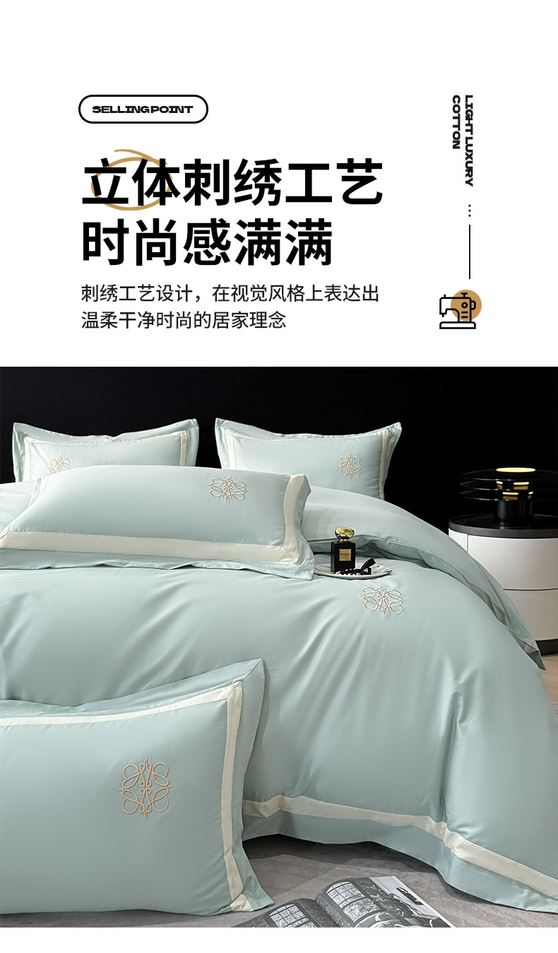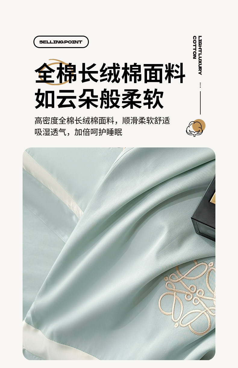 商品名称:合欢(原天一阁)2025新款全棉纯棉长绒棉工艺款刺绣礼盒装四件套 悠然-轻奢绿