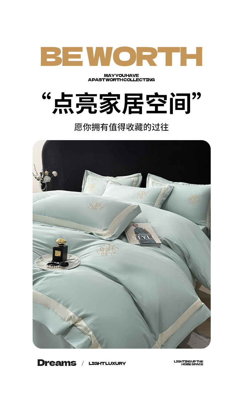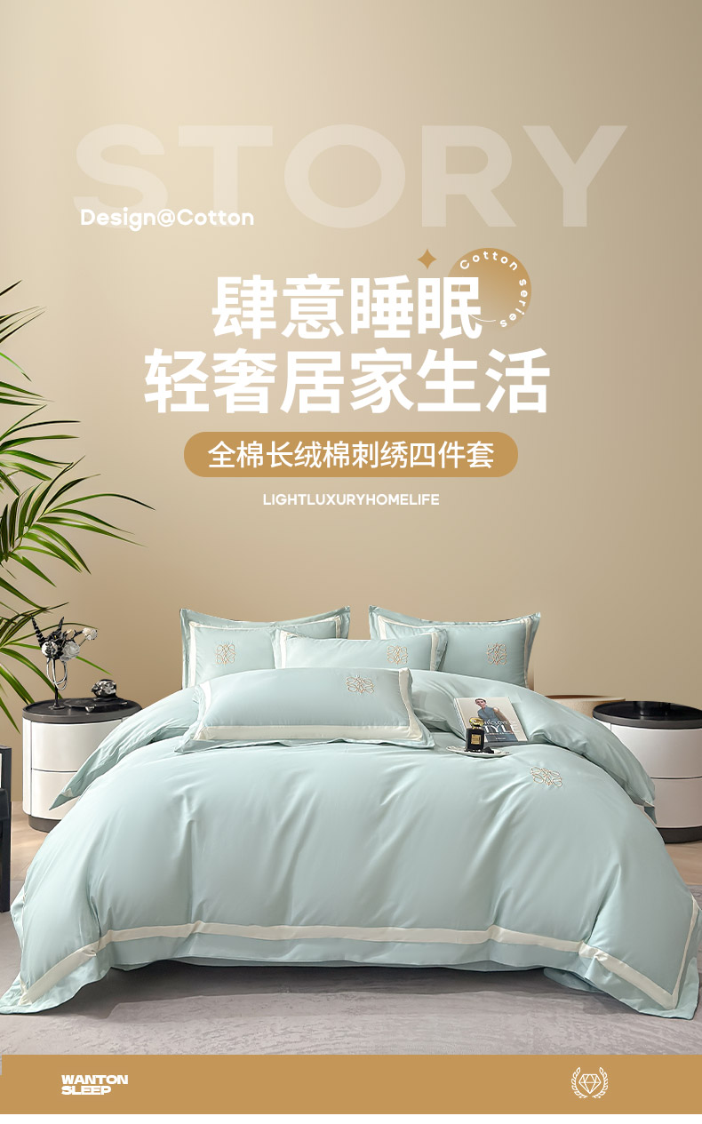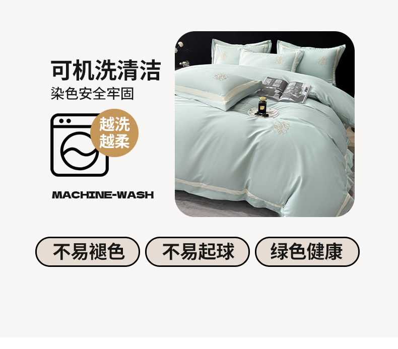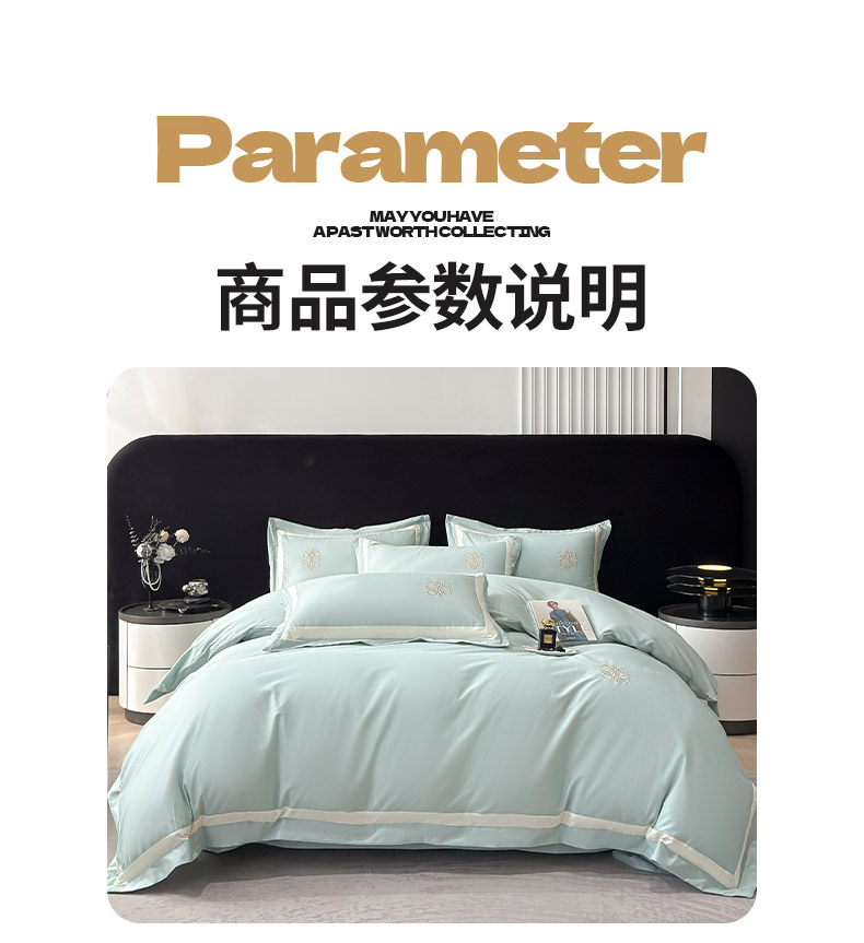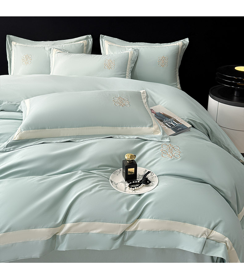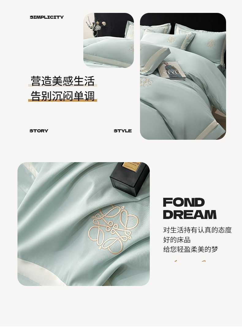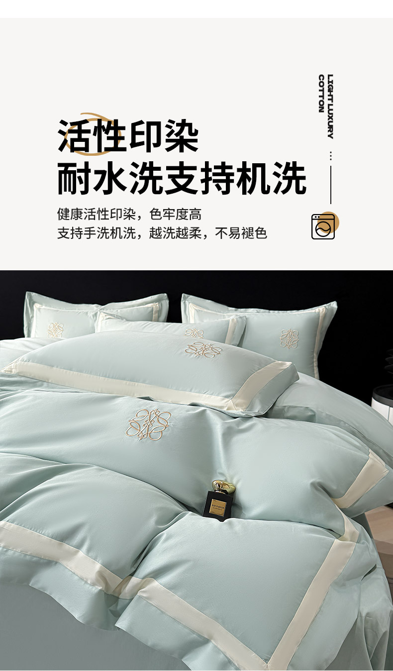 商品名称:合欢(原天一阁)2025新款全棉纯棉长绒棉工艺款刺绣礼盒装四件套 悠然-轻奢绿