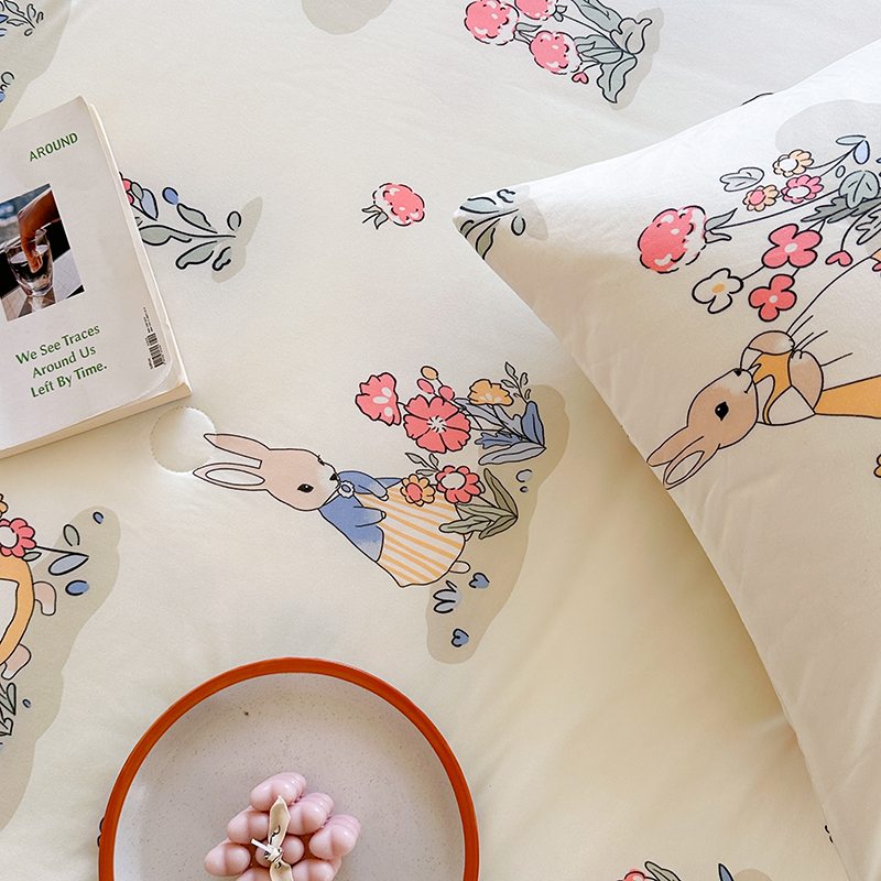 (总)麦伦家居 2026年春夏新款全棉纯棉有氧双层纱印花四件套-第二波,组合图仅供展示-不可下单,白露,花香粉,萌星粉,木马乐园,俏皮熊猫,甜梦汪汪,兔兔茉莉,心动狗狗,云锦兔-粉,云锦兔-蓝