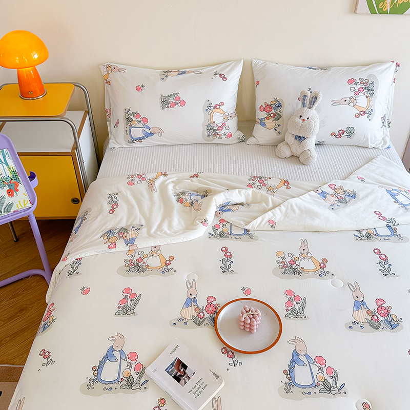 商品名称:麦伦家居 2025新款云柔针织棉大豆夏凉被 花丛小兔