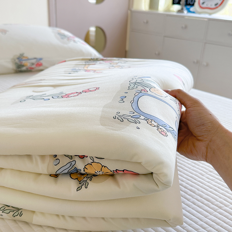 (总)麦伦家居 2025新款双面莫代尔天丝床盖,爱心摩卡,粉色碎花,好梦熊,糯米团子,清雅-蓝,清雅-米,水果熊猫,香岛巴黎,小小樱桃,组合图仅供参考