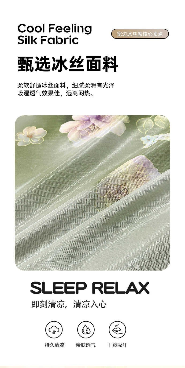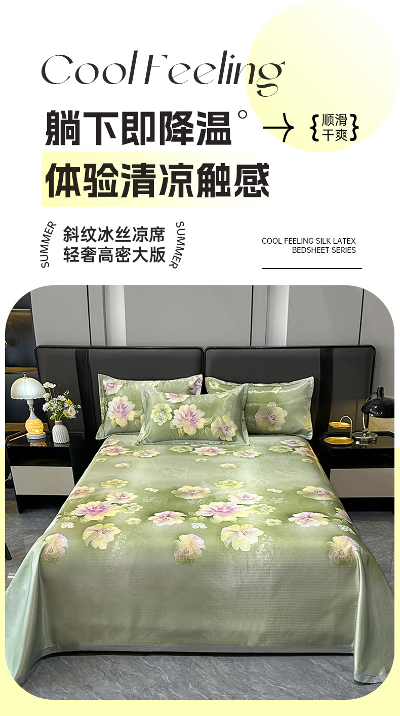 (总)许林 2025新款冰丝凉席床单款凉席三件套,绿玉薄荷,雨桐,尤娜,紫色蝶海,蓝色蝶海,蜜桃花,卡米拉,天堂鸟,观夏,小树梨,熊猫,雨桐绿,绿洲,凝夜,海棠花,绿意,春藤,森林幻境,盛夏,蝶恋花香,郁金香,小蜜蜂,春暖花开,锦叶,蓝玉薄荷,繁花,洛丽塔,苏叶,爱与蝶,长夏,凝光,梧桐,迪奥,欧若拉,落英缤纷-灰,尤丽斯特,卡罗拉,达芙妮
