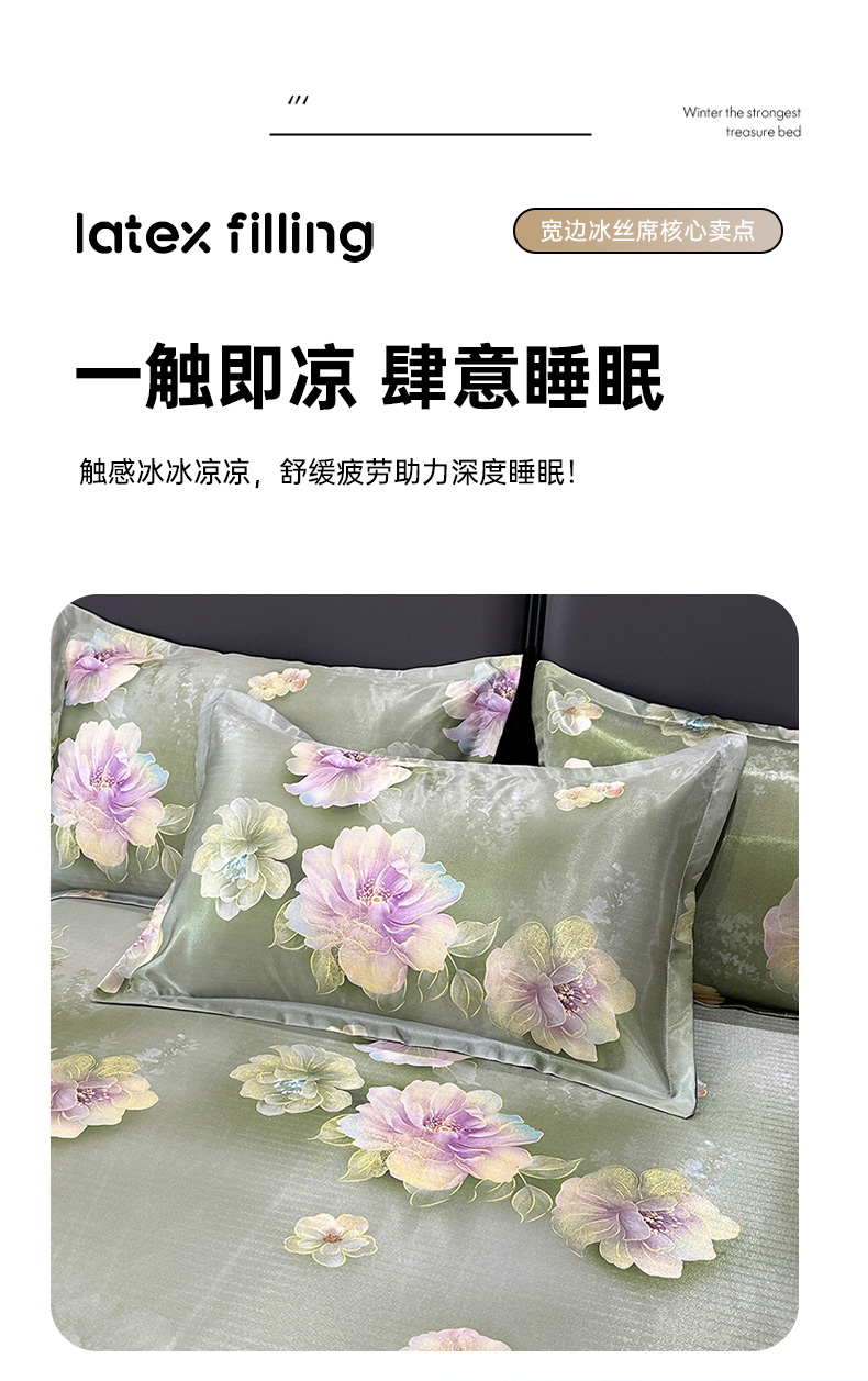 许林 2025新款冰丝凉席床单款凉席三件套-繁花,繁花