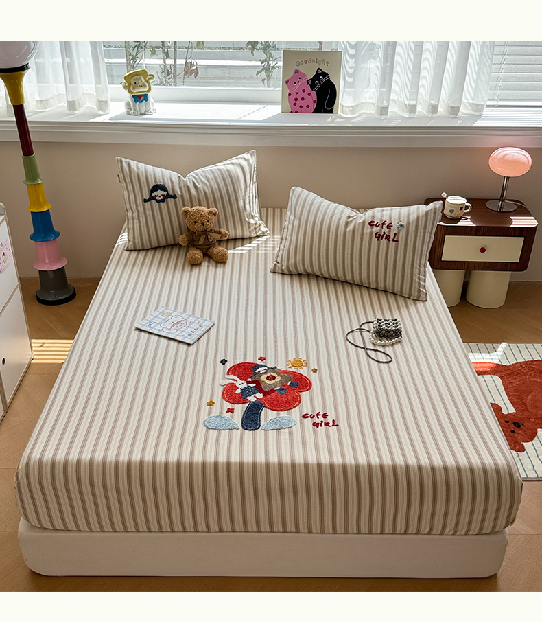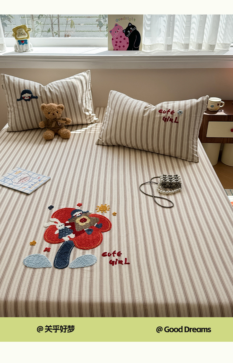 • 91家纺网 家纺一手货源 找家纺 蓝邻家纺 2025春夏新款全棉纯棉老粗布刺绣床笠凉席席子 组合图仅供展示