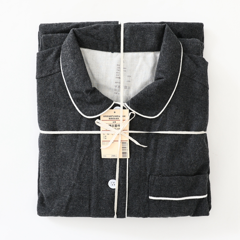 商品名称:伊嫚家居 2025新款无印日式双股全棉法兰绒家居服良品睡衣女纯棉直播秋冬款情侣睡衣 纯碳灰男