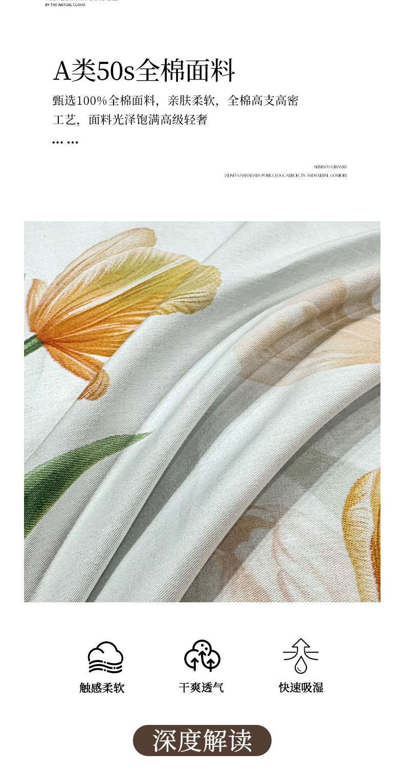 红日子纺织品 2025新款50s全棉纯棉印花四件套 繁花