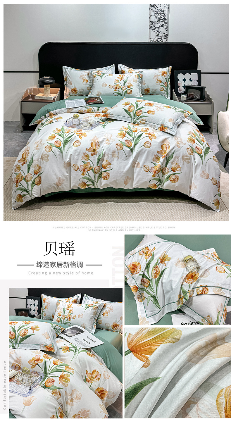 (总)红日子纺织品 2025新款全棉纯棉数码印花四件套,花暖容颜-绿,波斯记忆-蓝,茶山露水-桔,淡雅清风-蓝,芳若-绿,花情共舞-米,焕彩玫瑰-黄,美尼尔-粉,莫兰迪-紫,莫妮花园-粉,浓情蜜意-粉,翩翩花语-绿,秋日盛情-黄,日落花雨-灰,如若梦境-绿,诗丹娜-深蓝,邂逅柔情-蓝,秀雅佳人-灰
