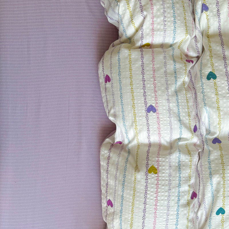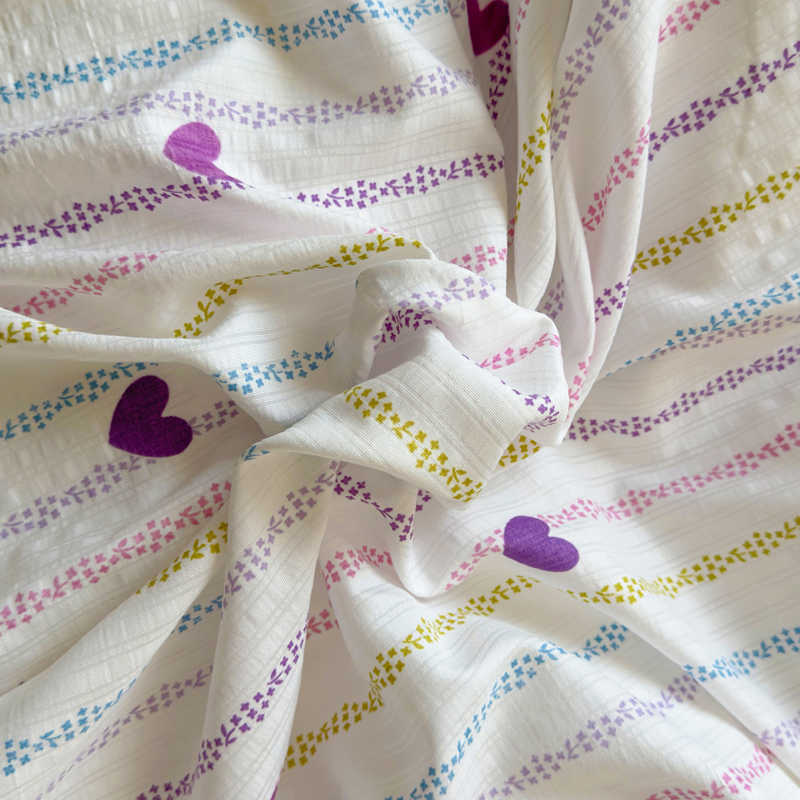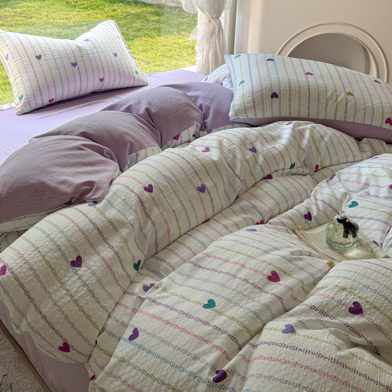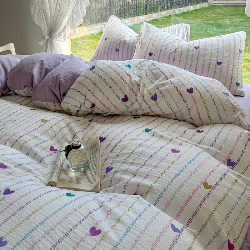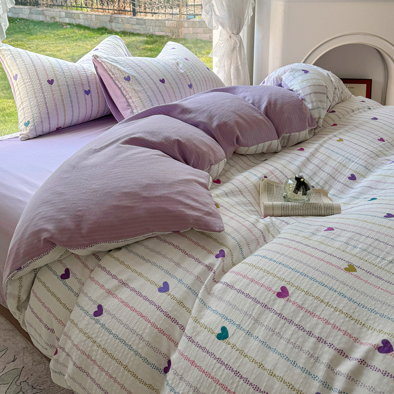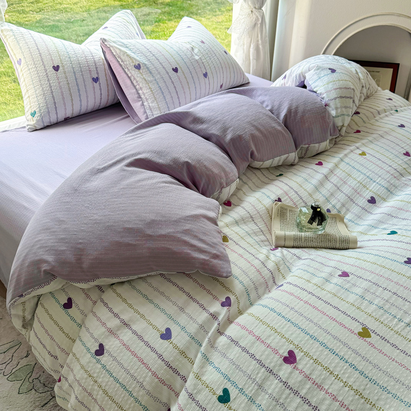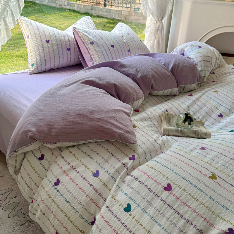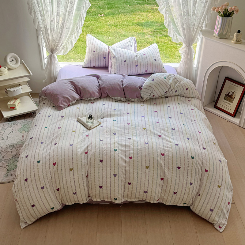 王朝国际 2025新款直播热款有氧提花有氧双层纱碎花单被套 紫爱心