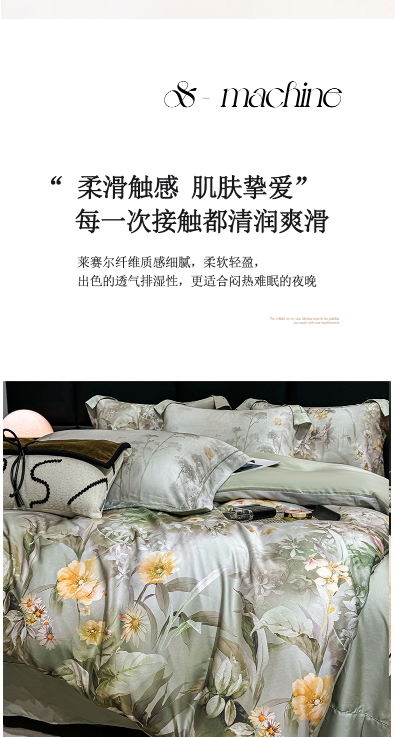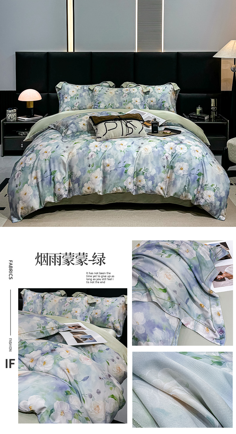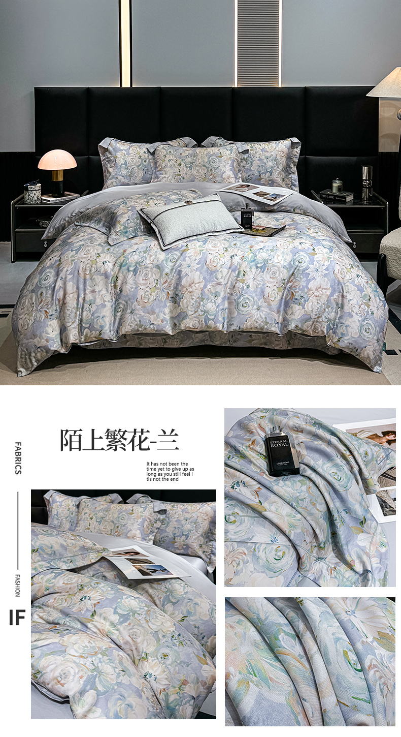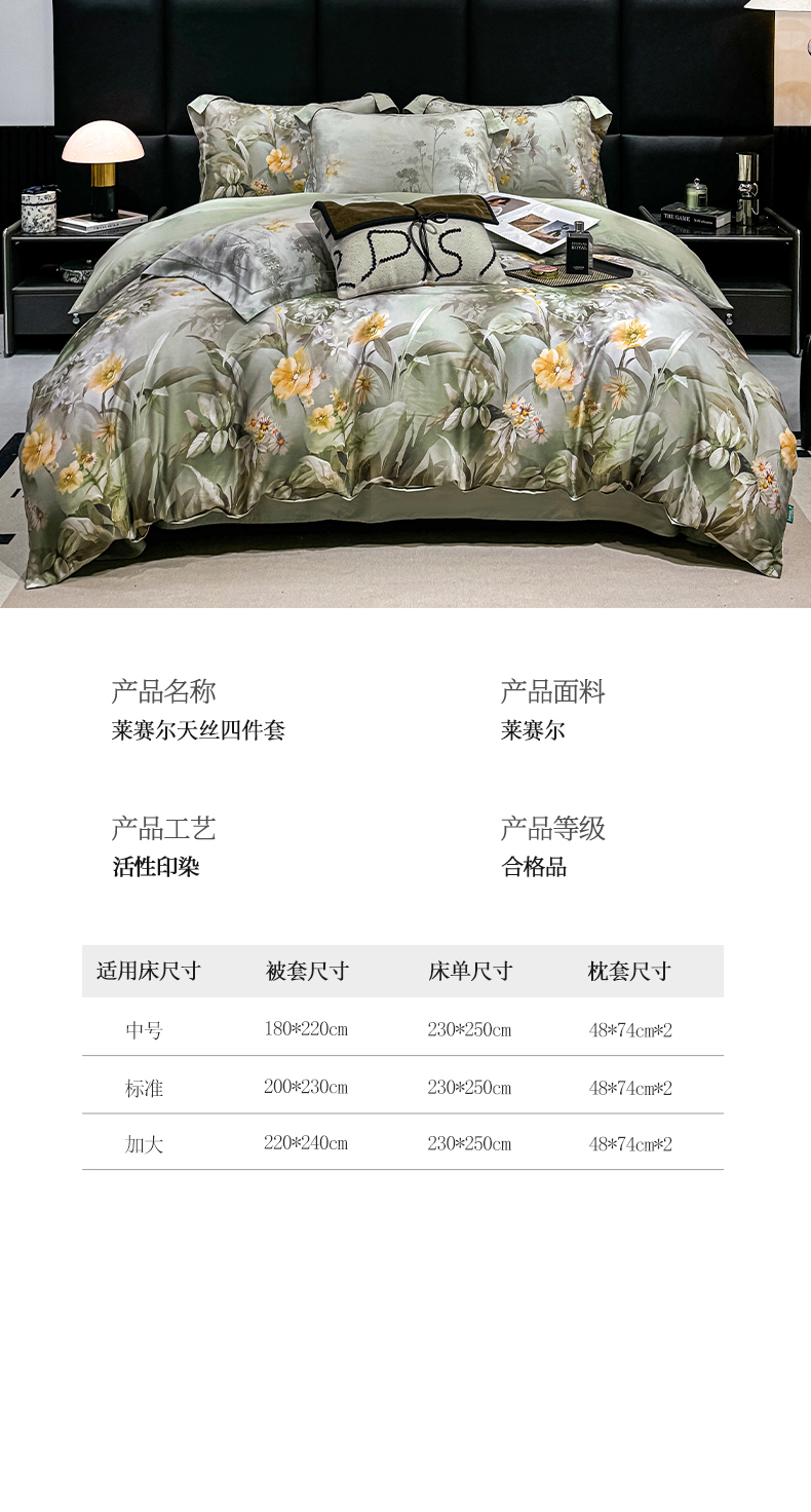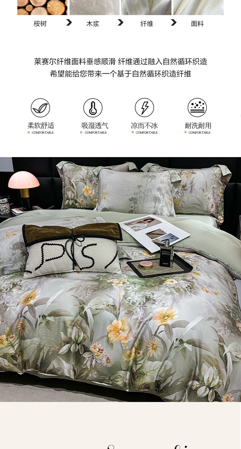 红日子纺织品 2025新款亲肤舒适莱赛尔天丝四件套 陌上繁花-兰