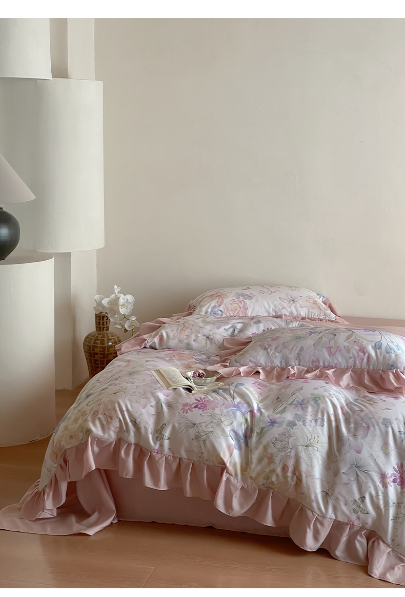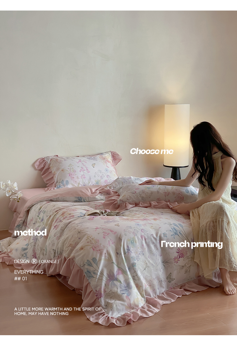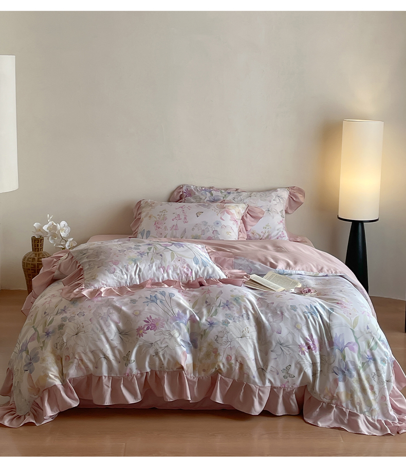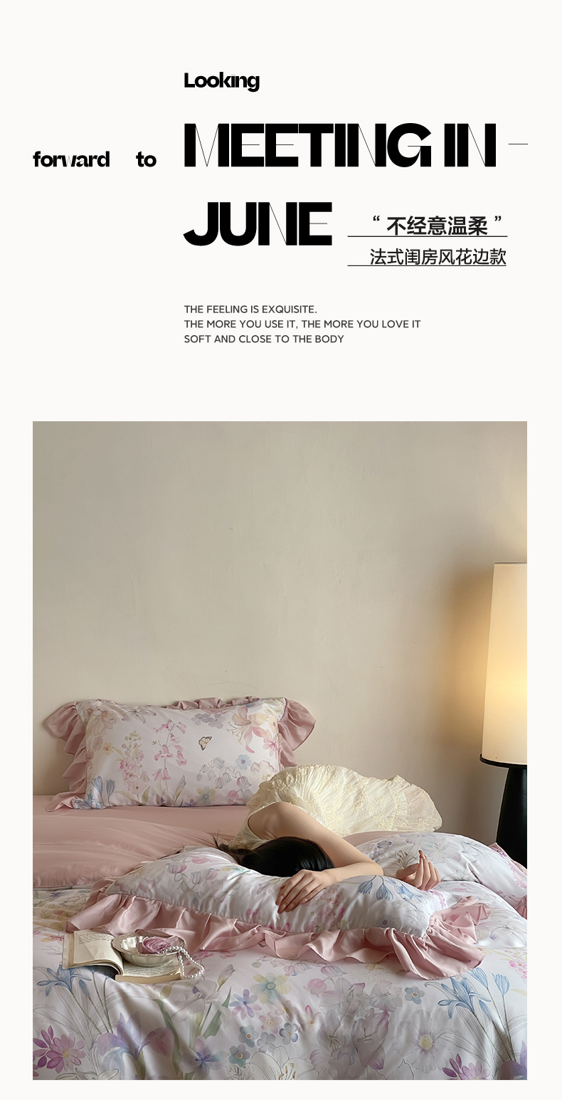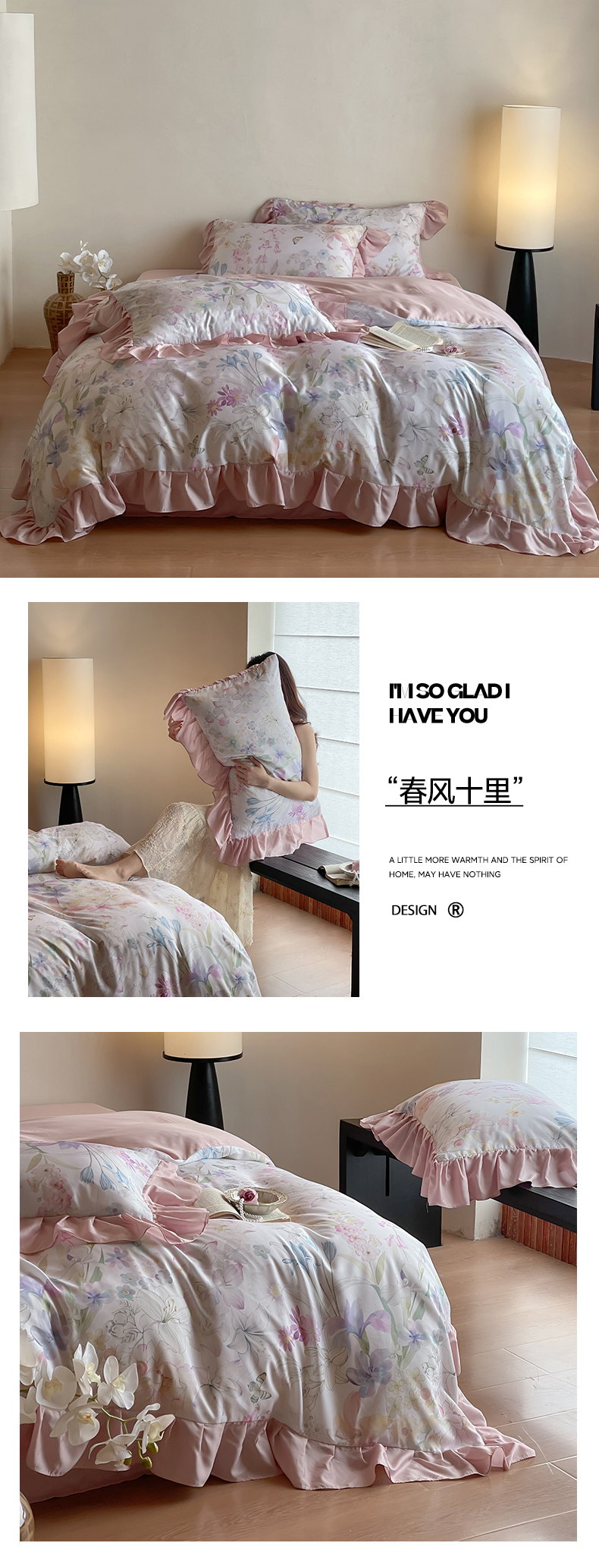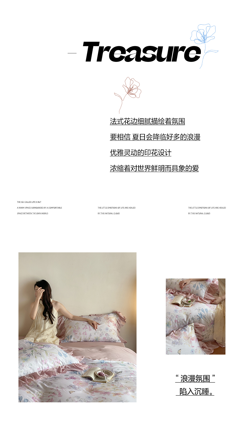 卡巴伦家纺 2025新款天丝四件套-法式闺房风花边款【不得低于(店铺折后/券后)标准:249元】 春风十里