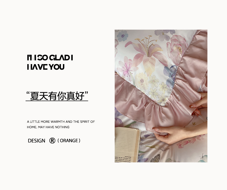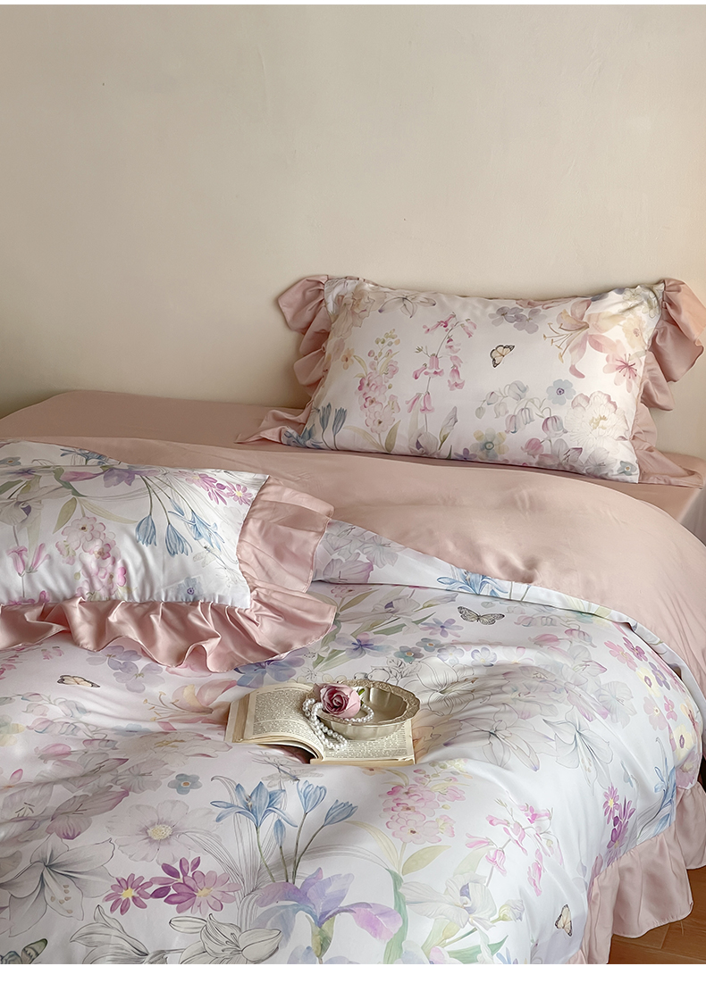 (总)卡巴伦2025新款60兰精天丝夏被四件套,晨露花园粉,晨露花园蓝