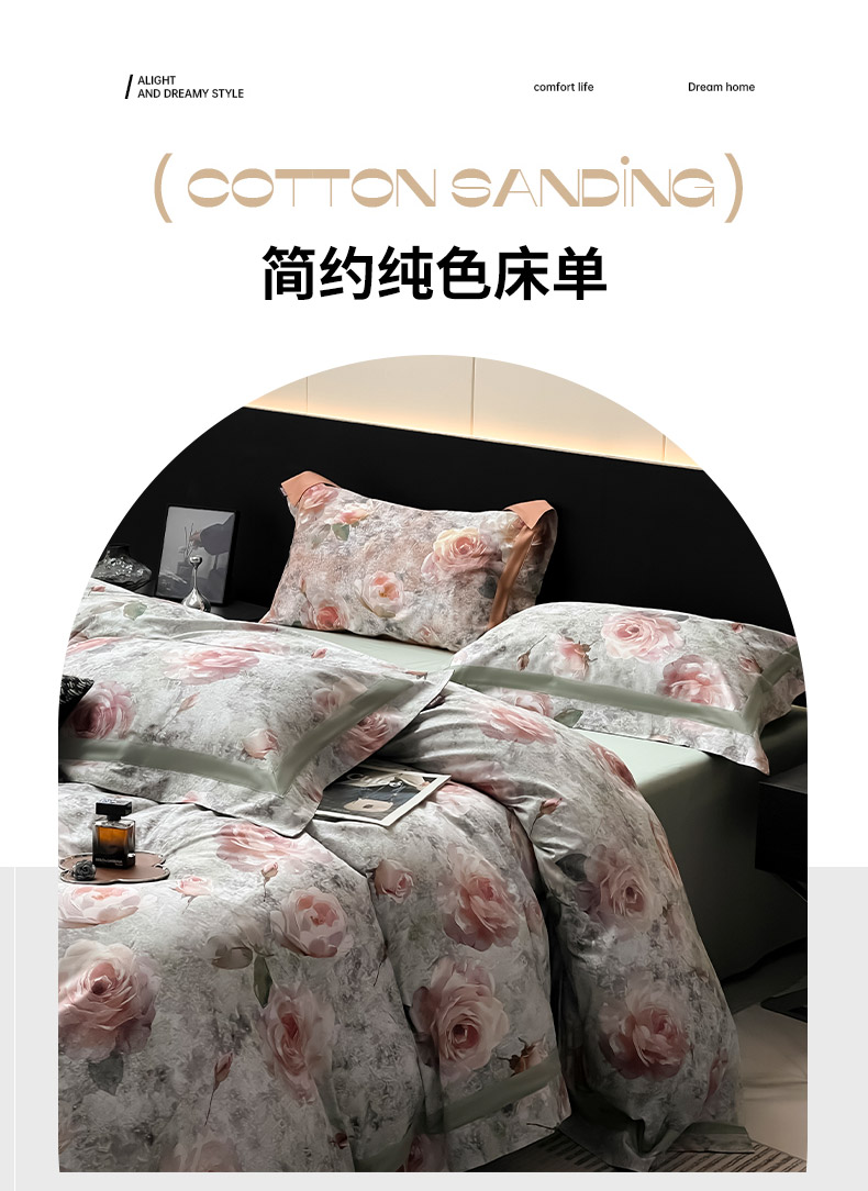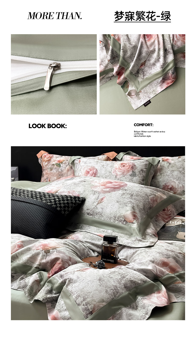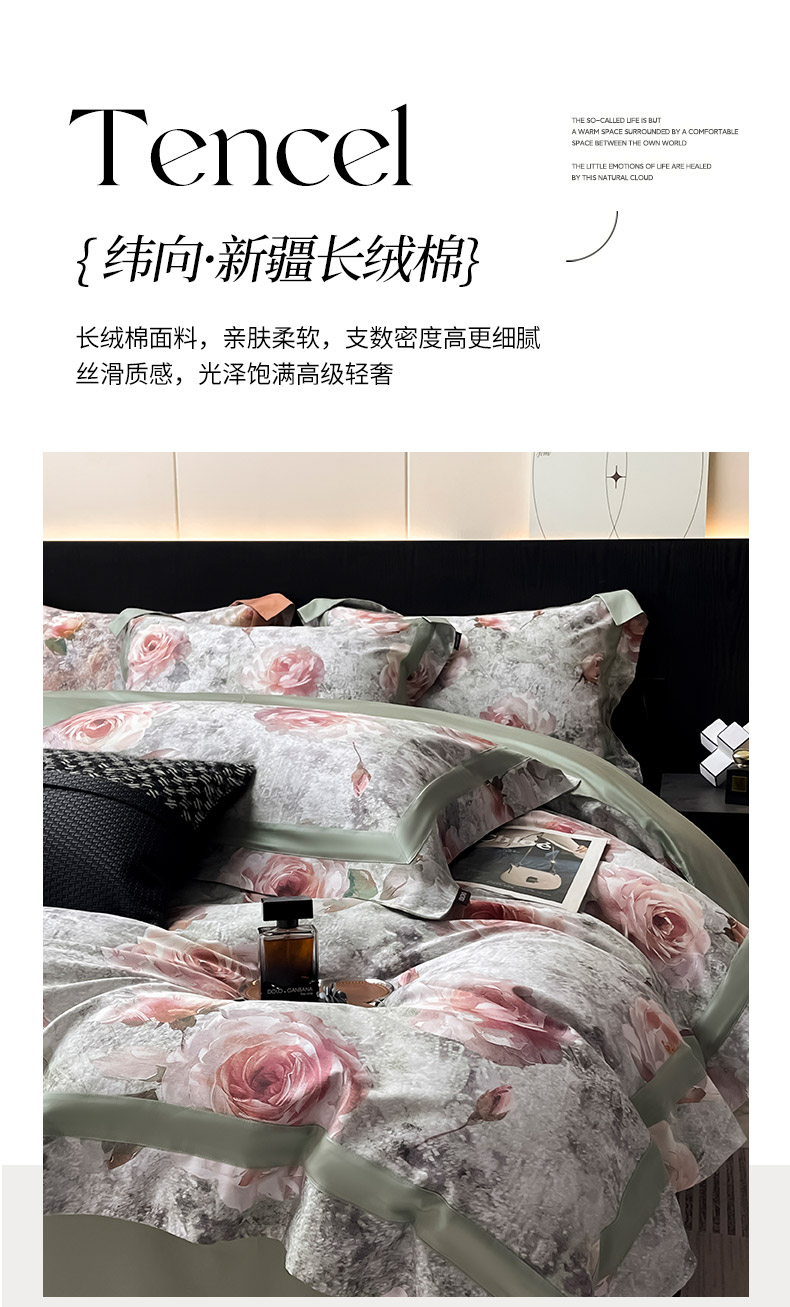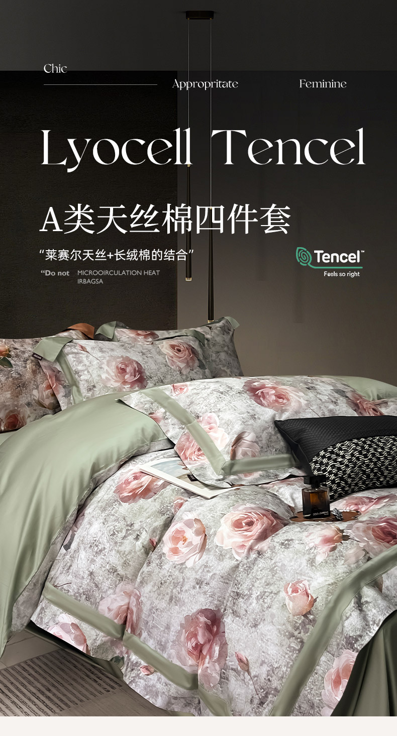 (总) 2025夏季A类母婴级天丝棉印花四件套纯棉全棉高端数码印花丝滑裸睡长绒棉被套真丝