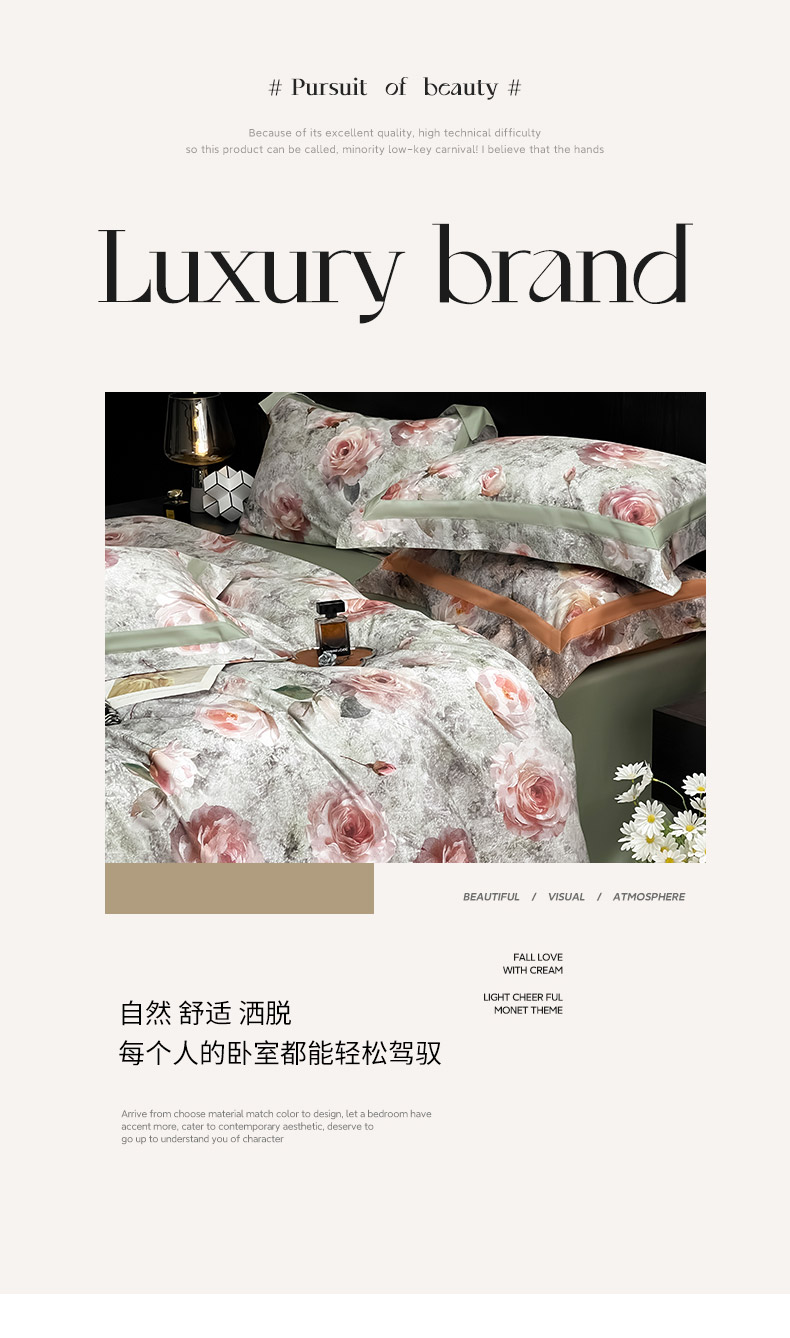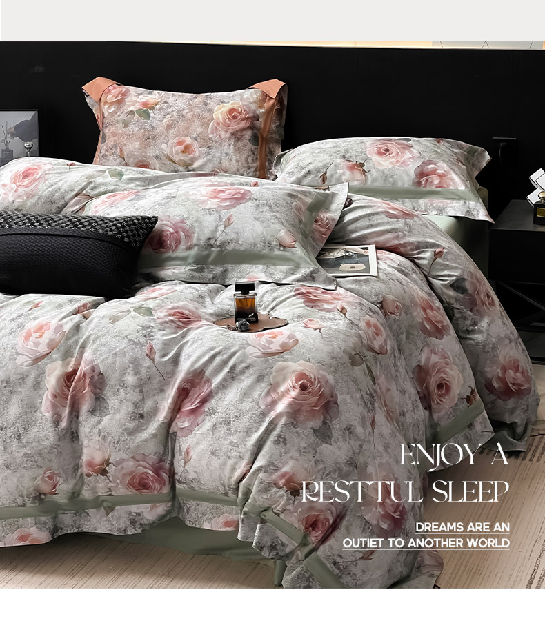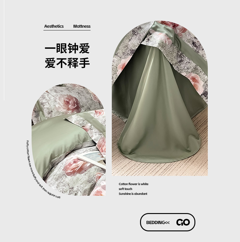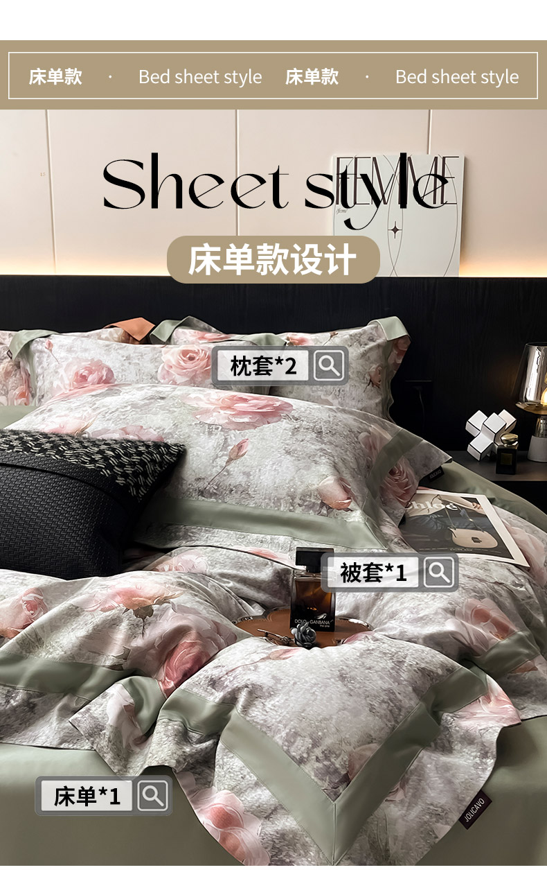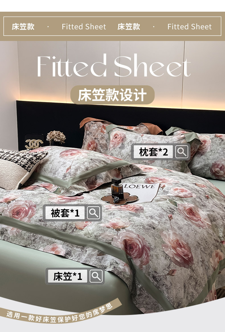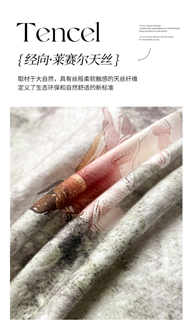 商品名称:(总) 2025夏季A类母婴级天丝棉印花四件套纯棉全棉高端数码印花丝滑裸睡长绒棉被套真丝