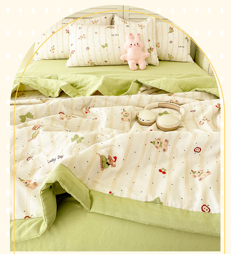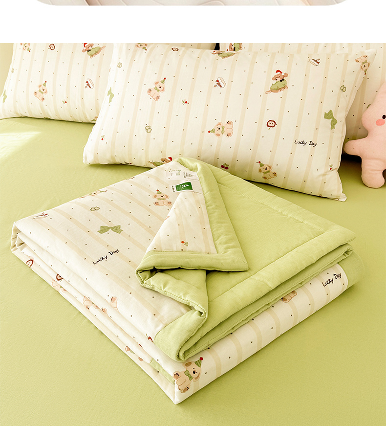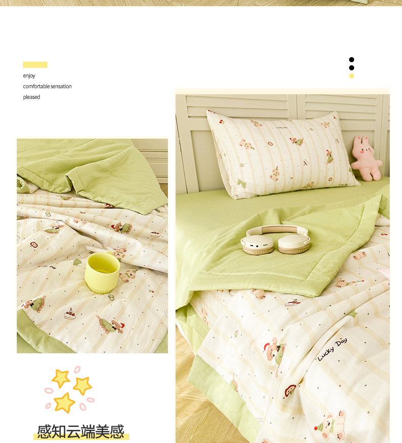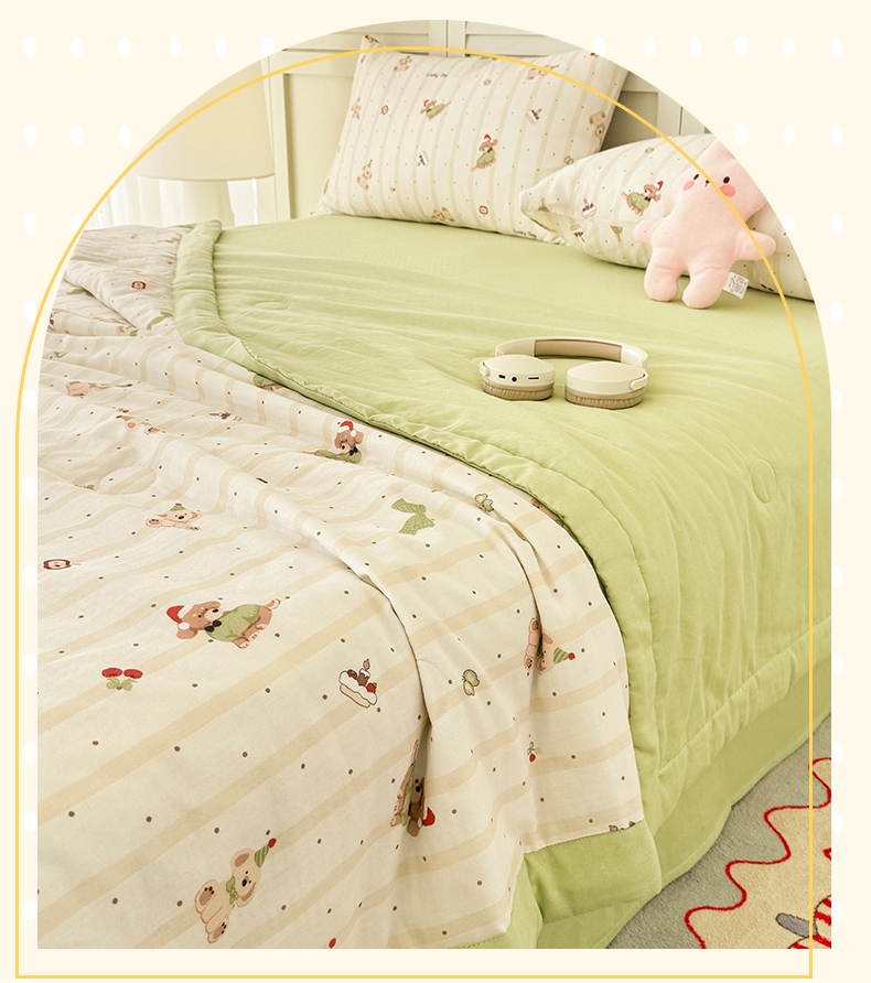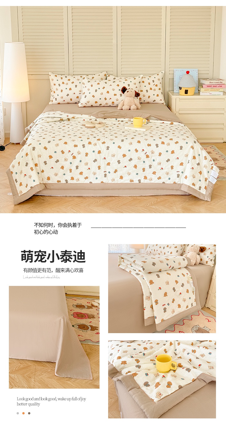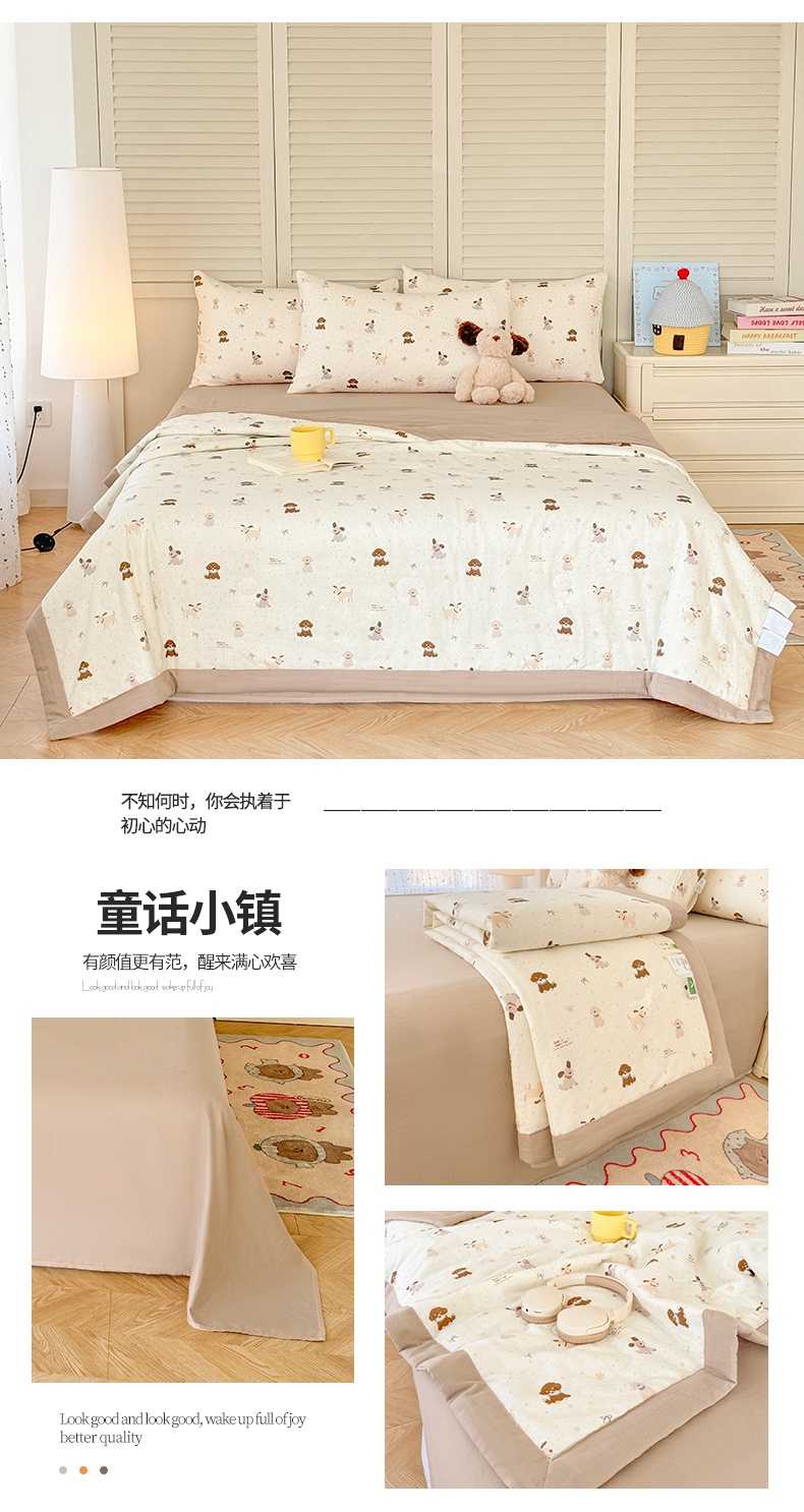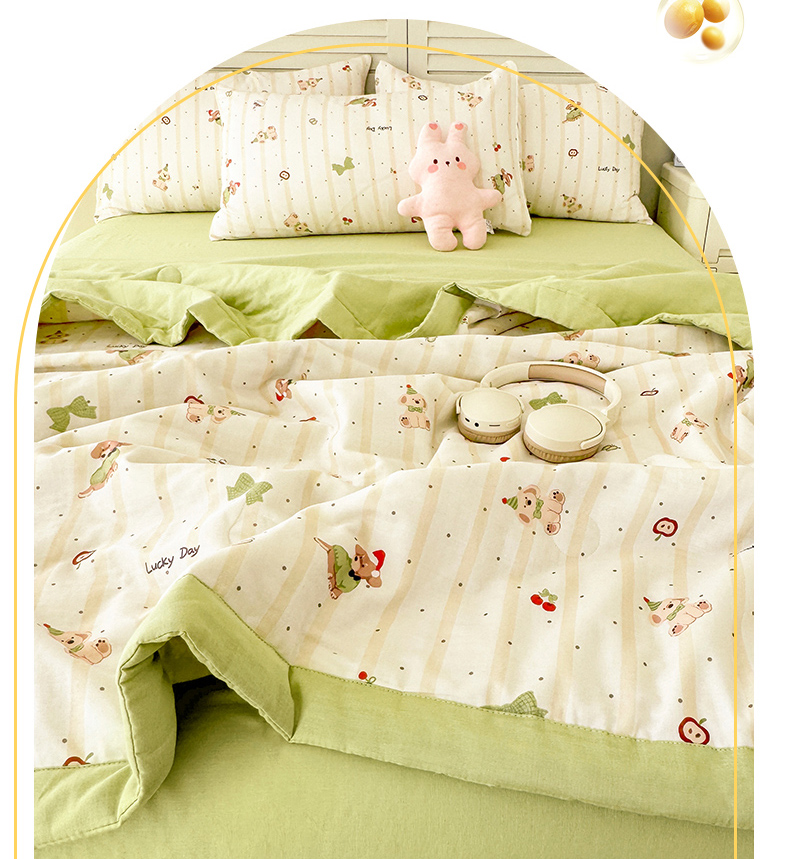 当前位置: 91家纺网 > 商品网购 > 床品套件 > 四件套 > 夏被四件套 > 佰亿莱 2025新款全棉双层纱大豆夏被四件套 帽子狗狗