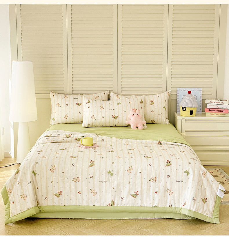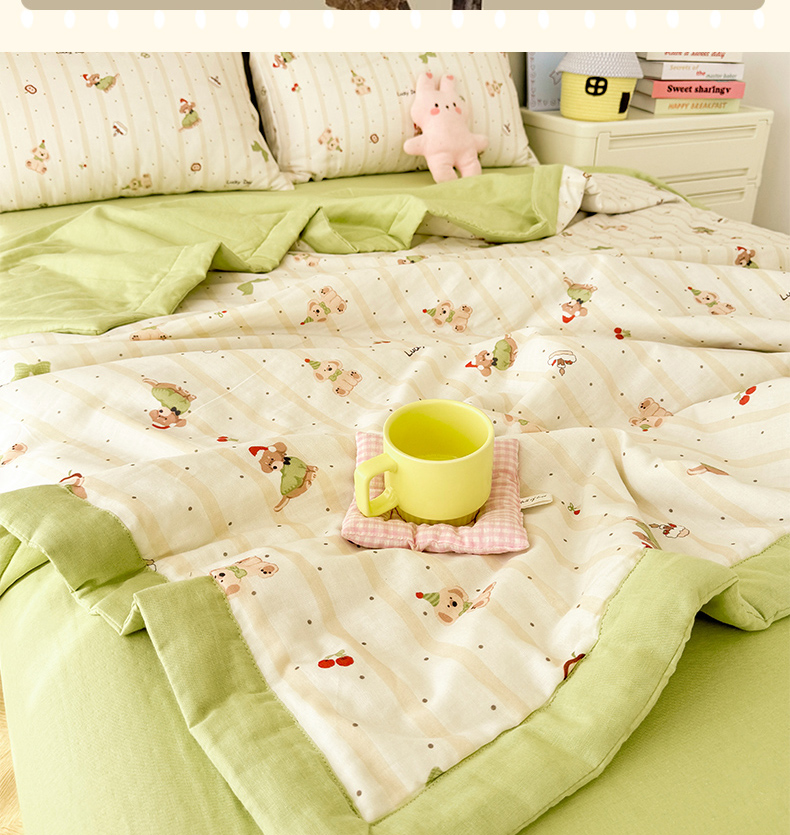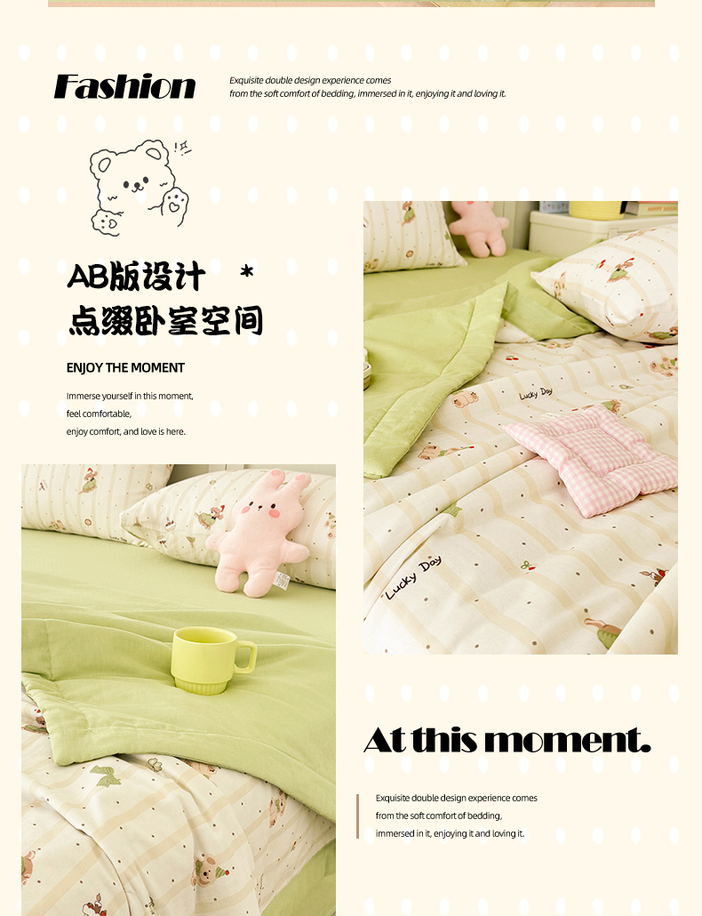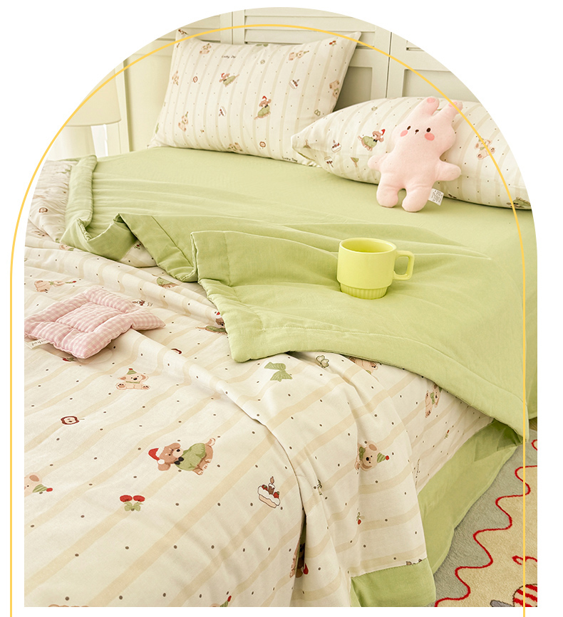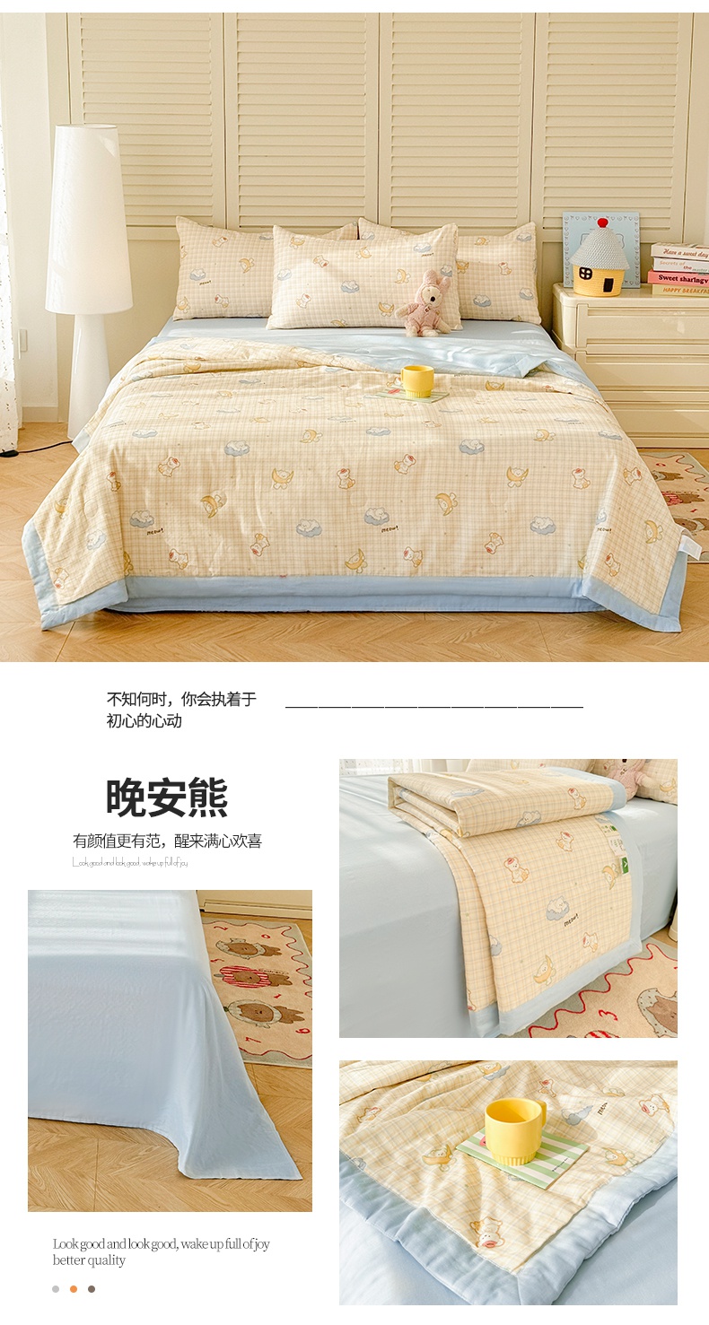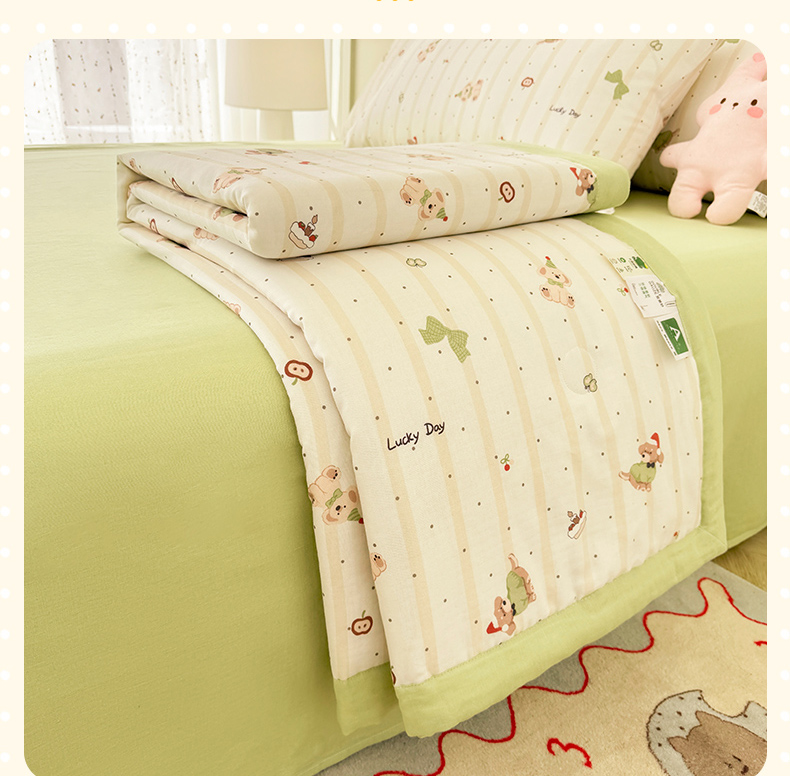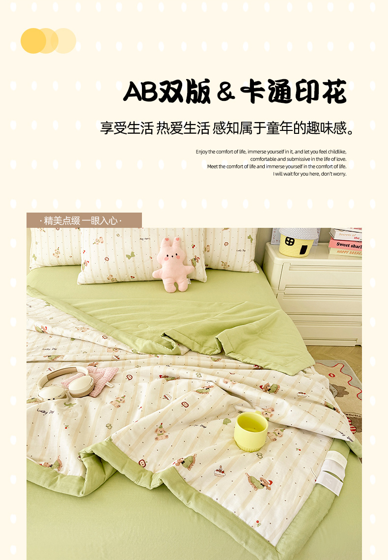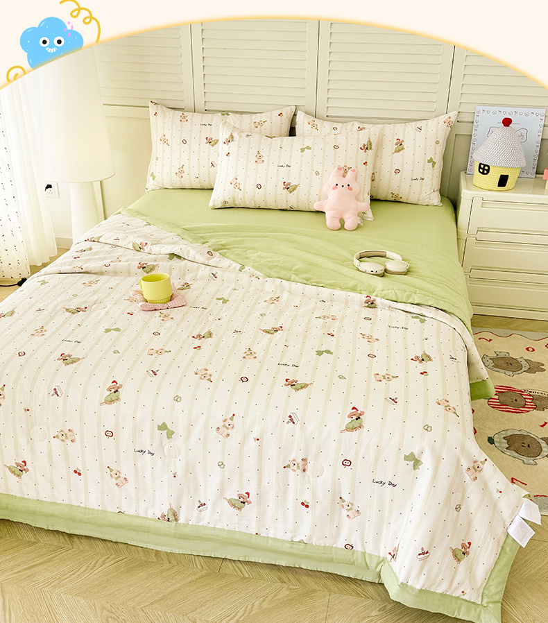 当前位置: 91家纺网 > 商品网购 > 床品套件 > 四件套 > 夏被四件套 > 佰亿莱 2025新款全棉双层纱大豆夏被四件套 帽子狗狗