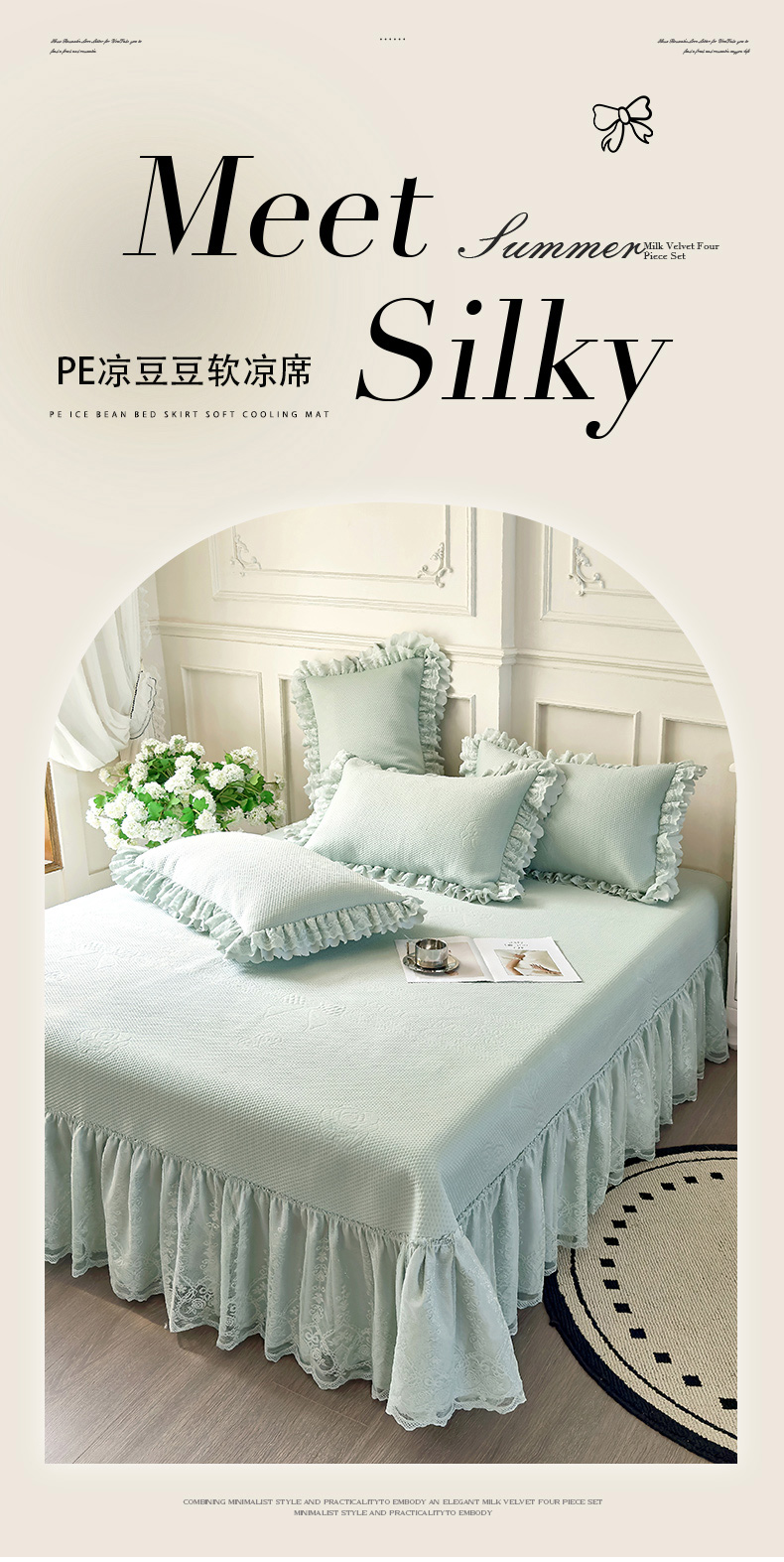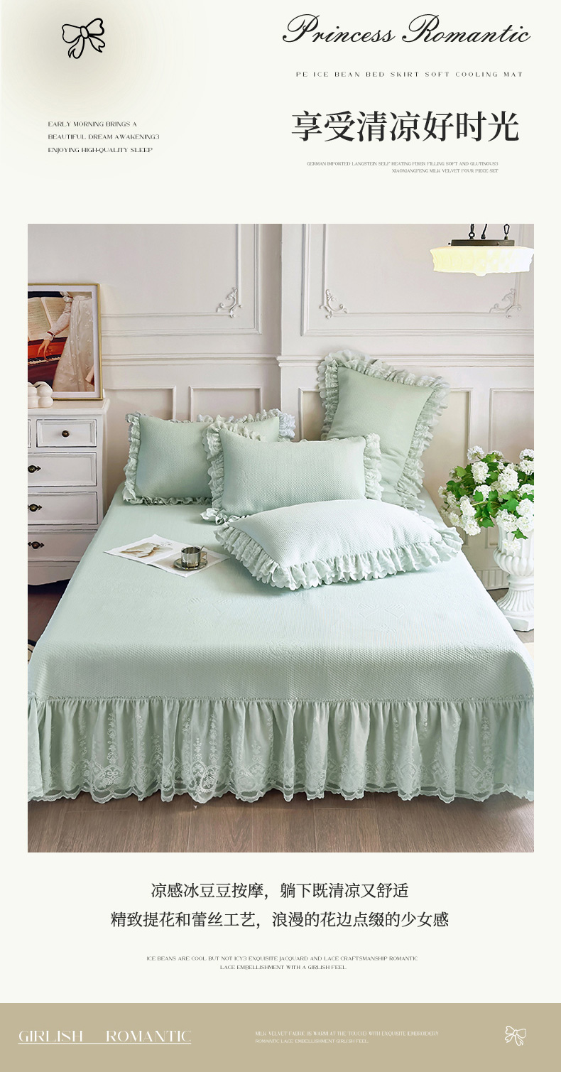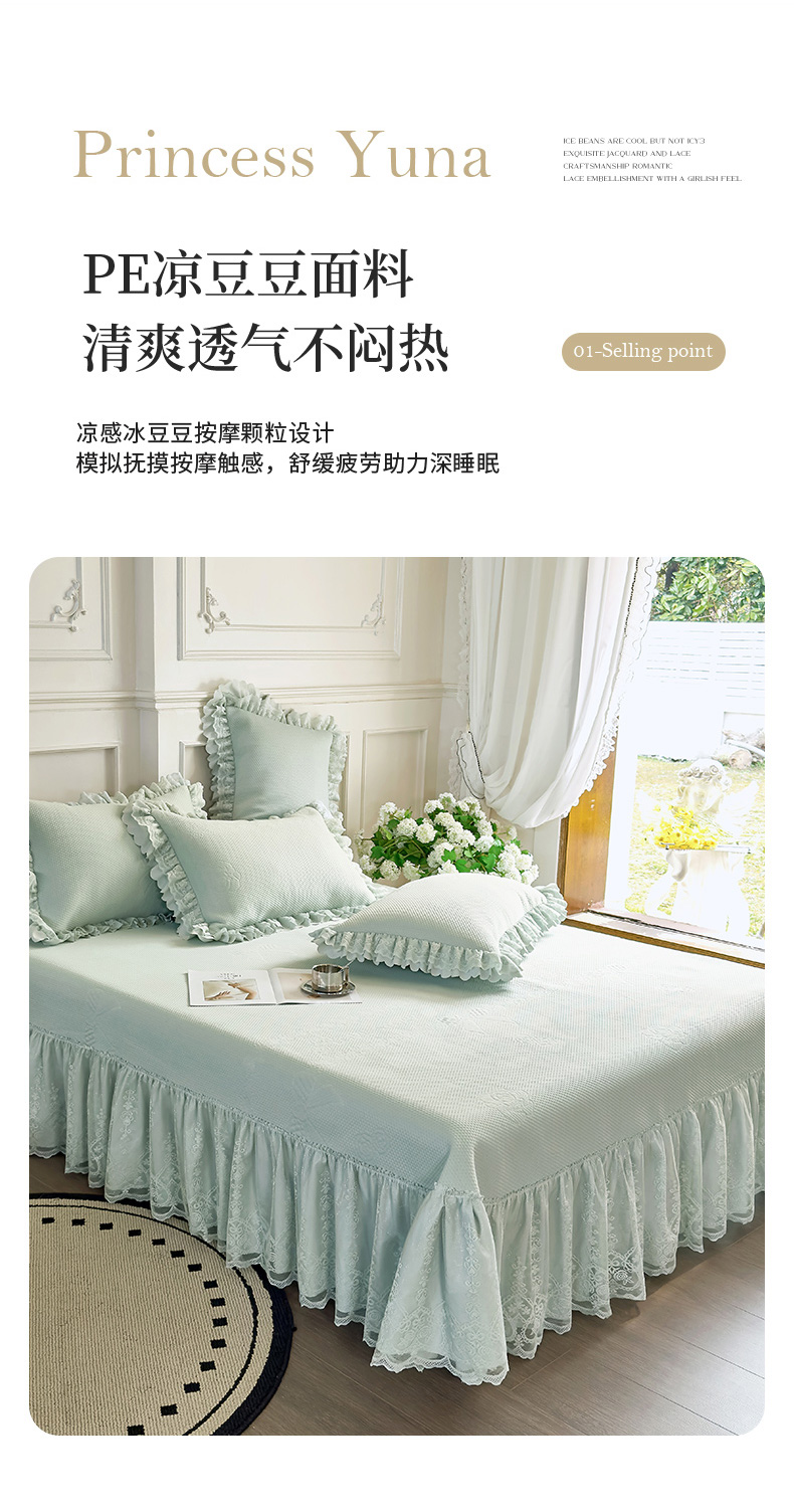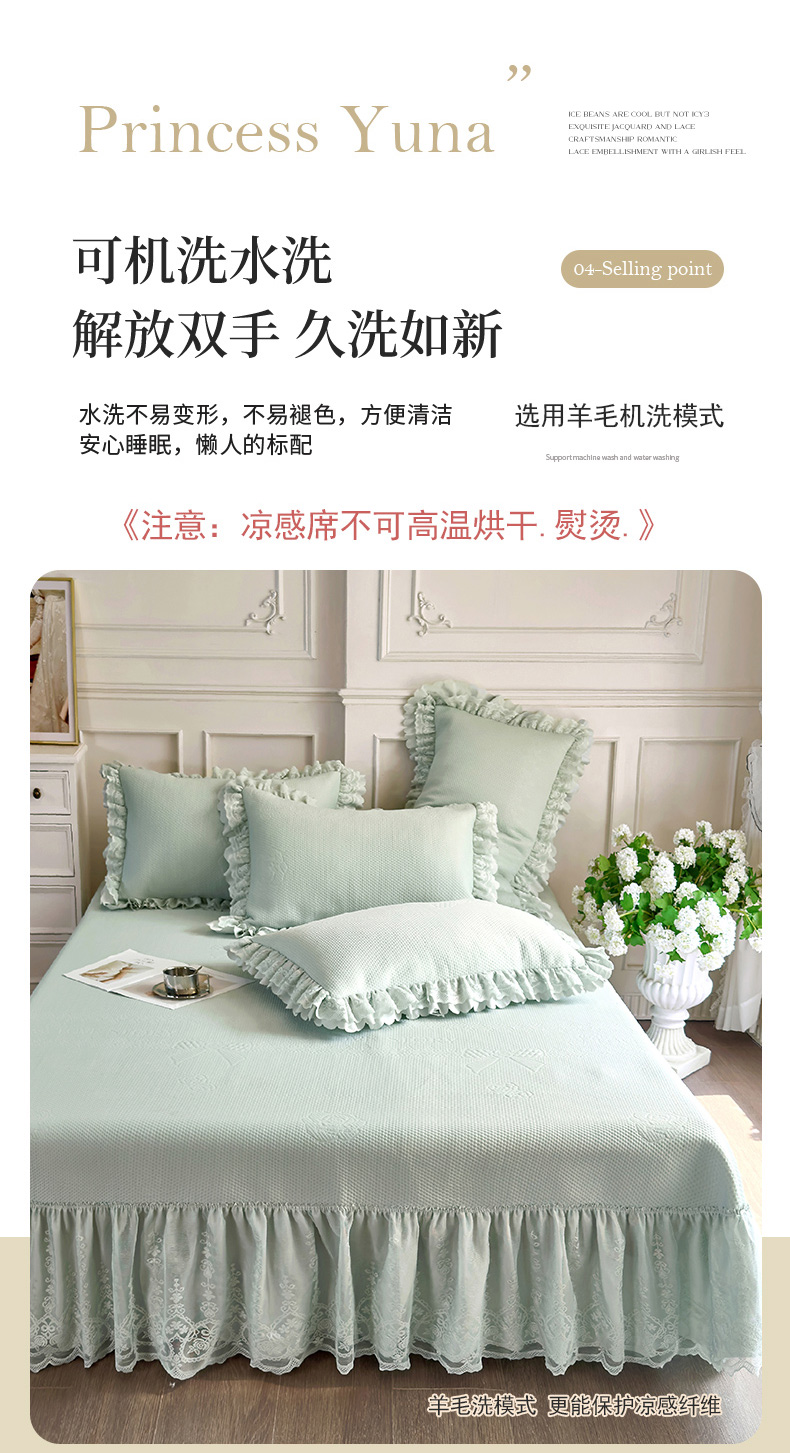(总)乐朵家居 2025新款洛丽塔系列A类凉感席三件套,洛丽塔-豆沙,洛丽塔-蓝,洛丽塔-绿,洛丽塔-奶白,洛丽塔-玉