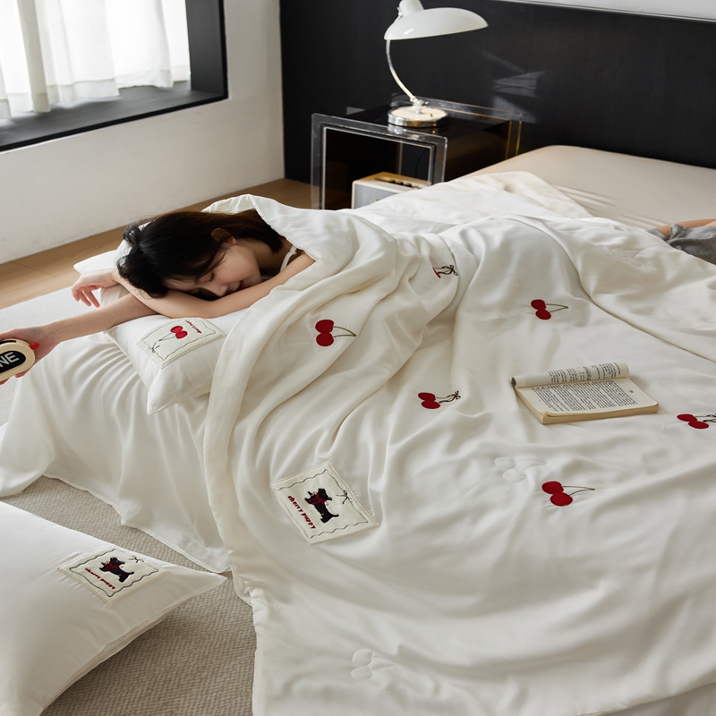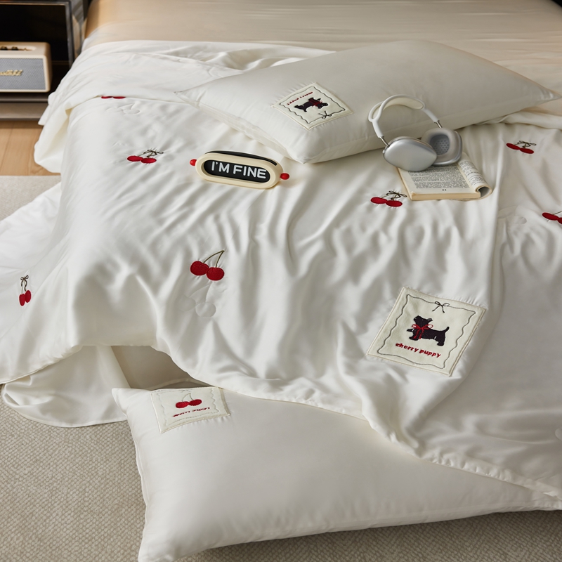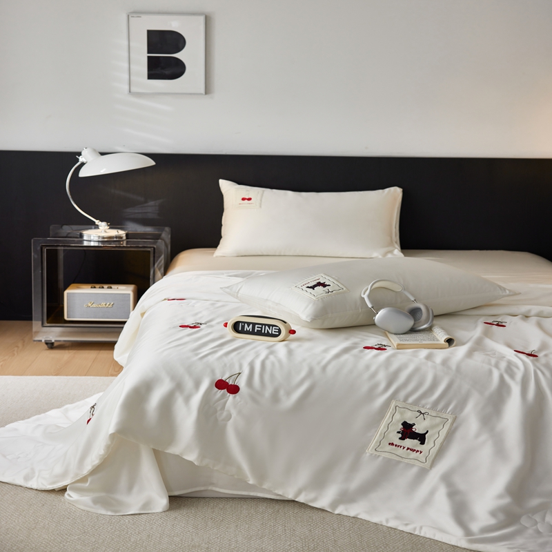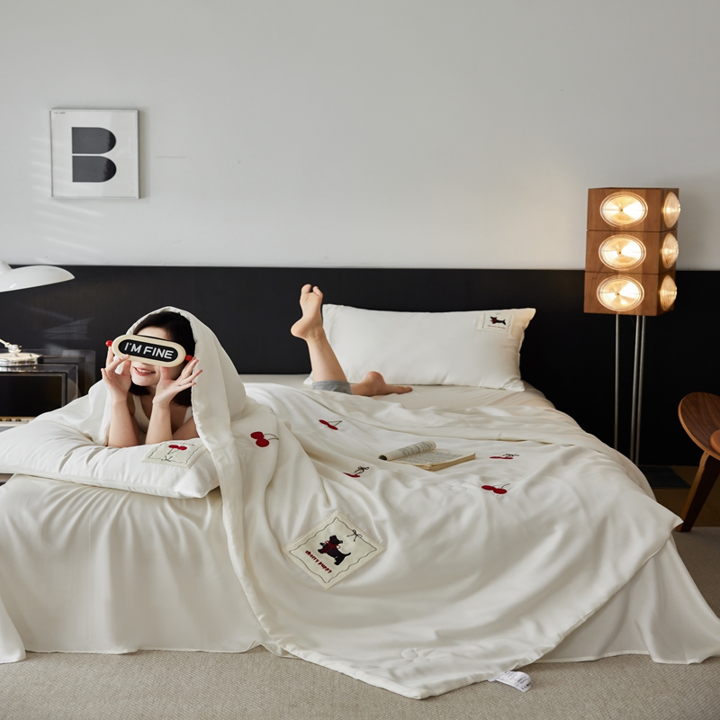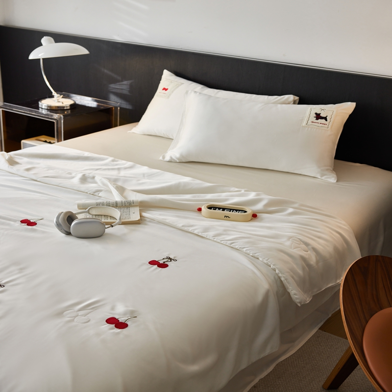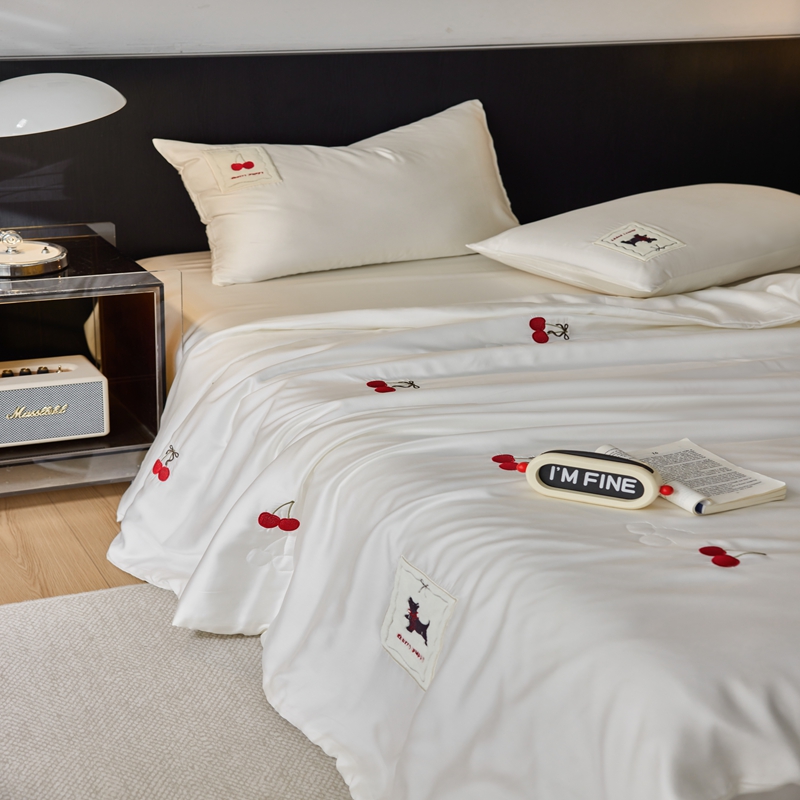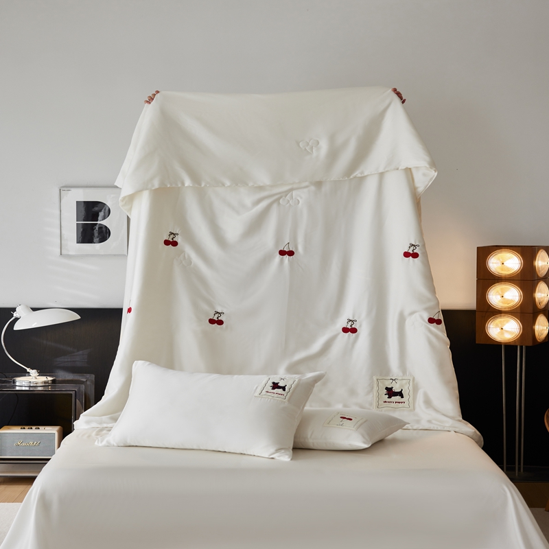 商品名称:初拾 2025新款60支奥地利进口兰精天丝夏被夏凉被空调被—樱桃奇奇 象牙白