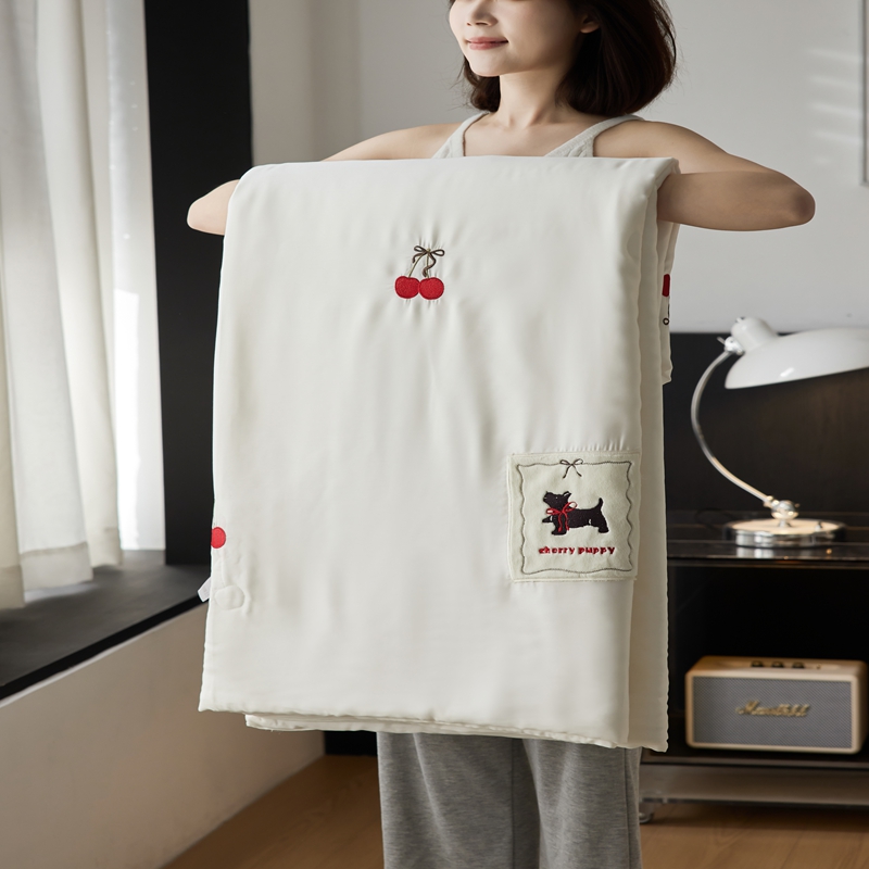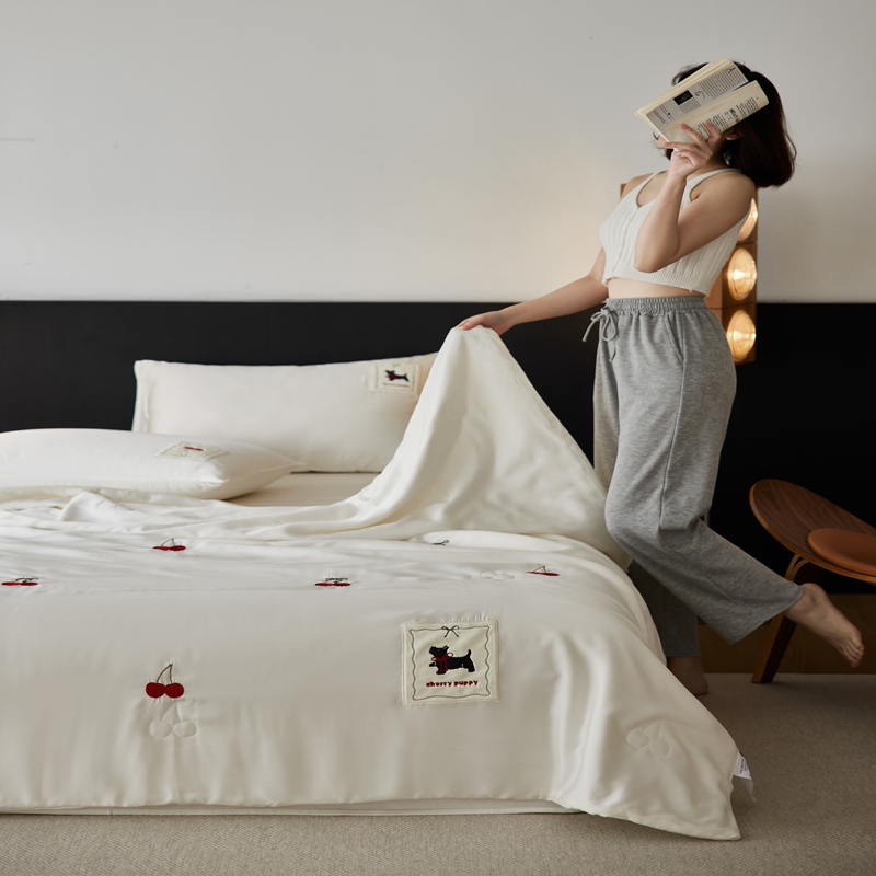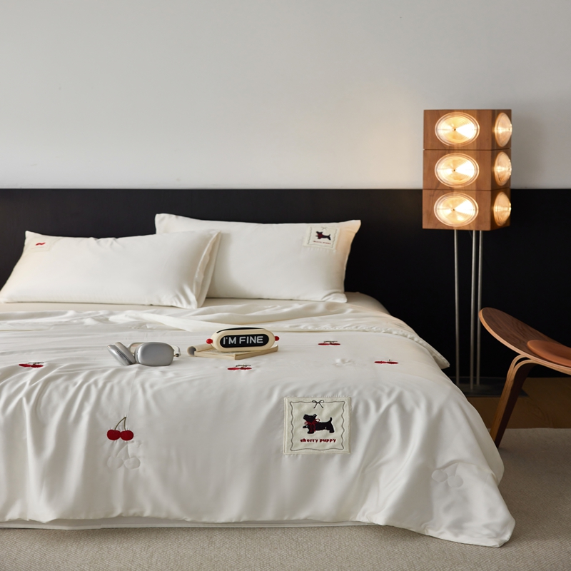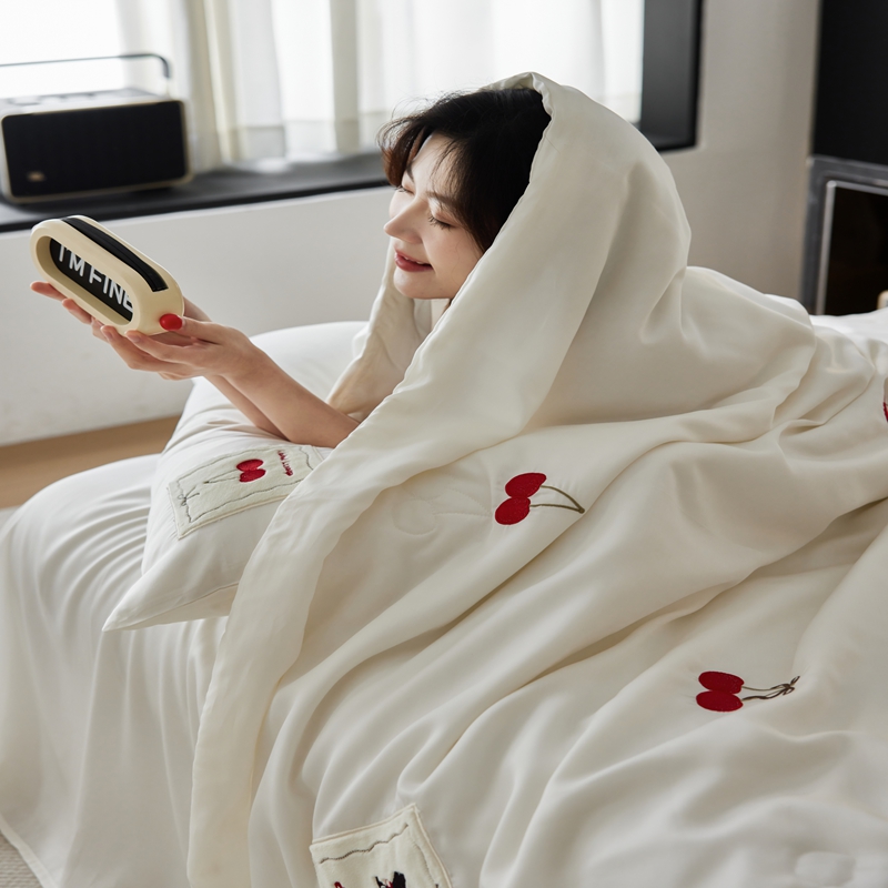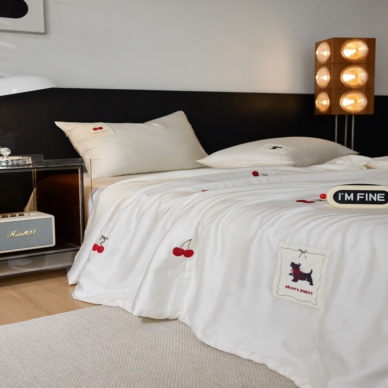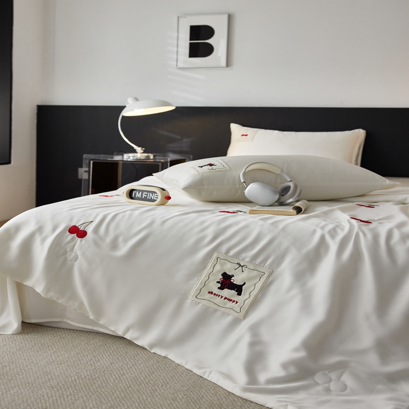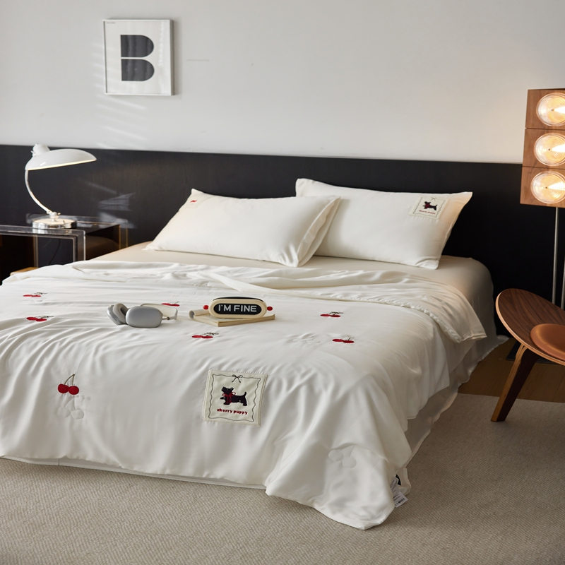 商品名称:初拾 2025新款60支奥地利进口兰精天丝夏被夏凉被空调被—樱桃奇奇 象牙白