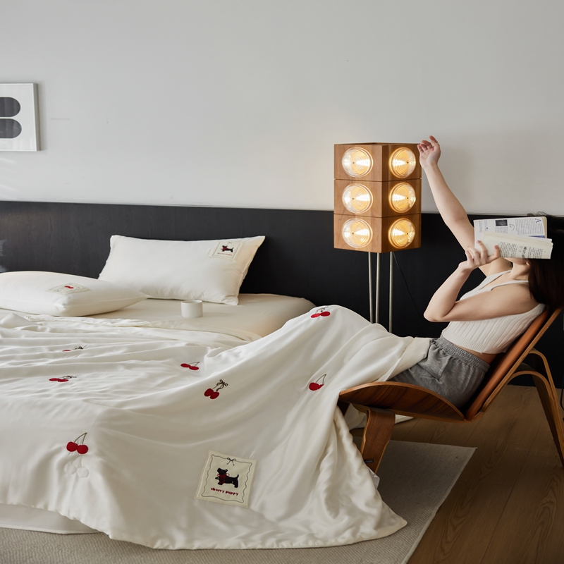 初拾 2025新款60支奥地利进口兰精天丝夏被夏凉被空调被—樱桃奇奇 象牙白