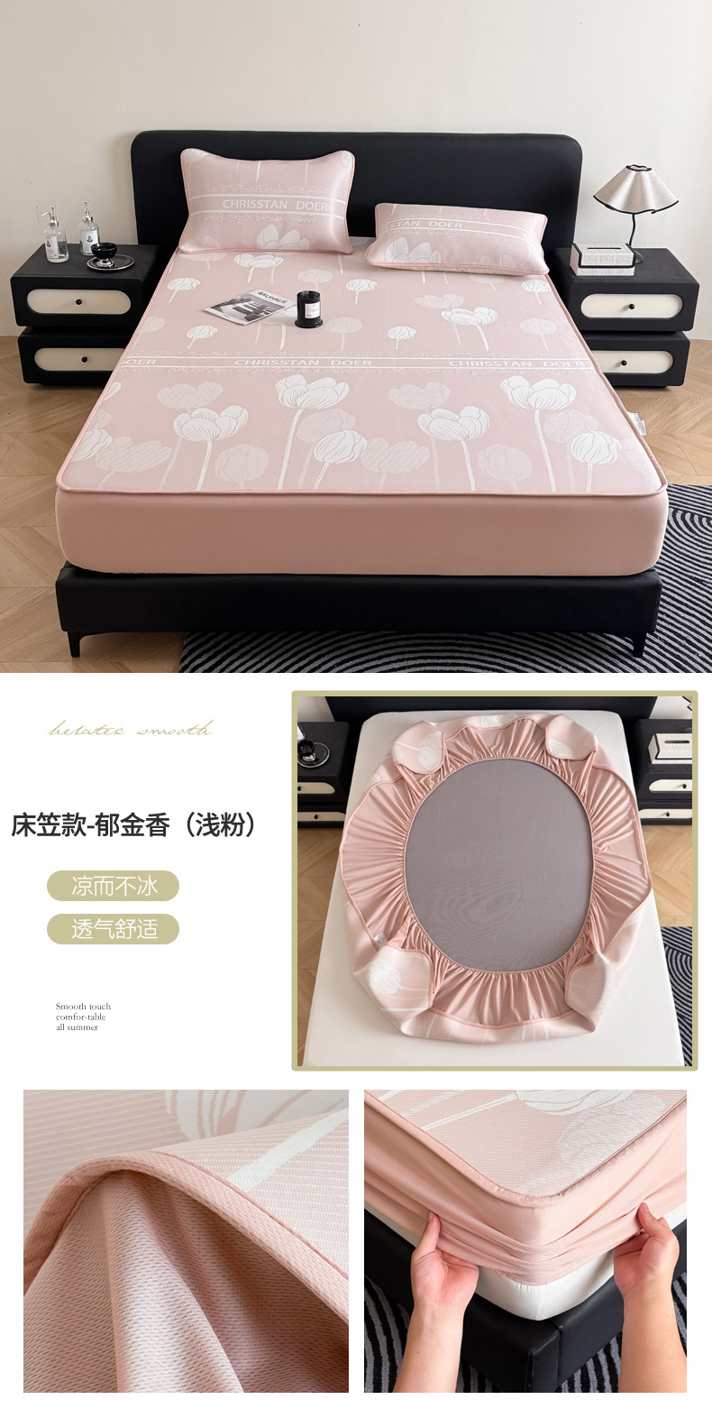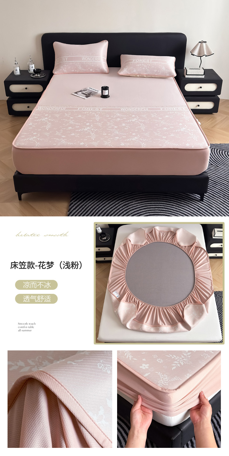 九花鹿2024新款A类大版碳光冰丝凉席床笠款三件套四件套,大版床笠款-甜心草莓