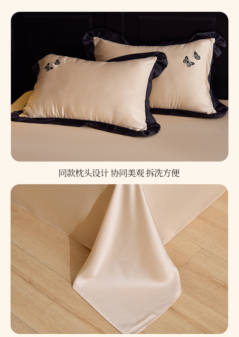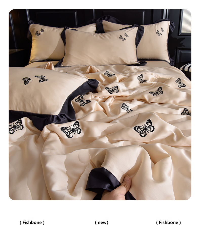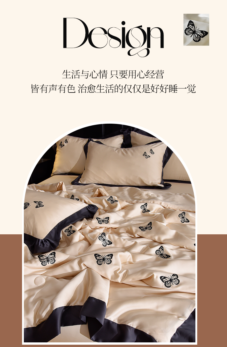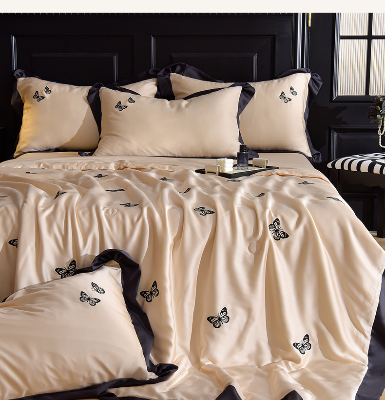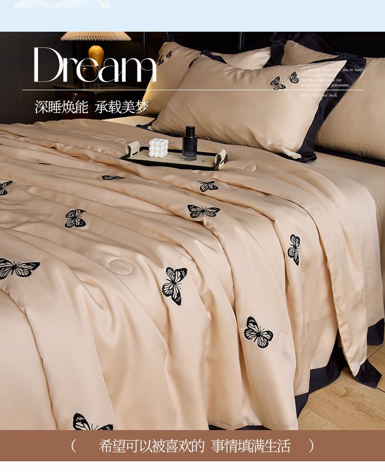商品名称:大麦家纺 2025新款水洗天丝绣花款夏被四件套 蝴蝶飞飞-奶杏