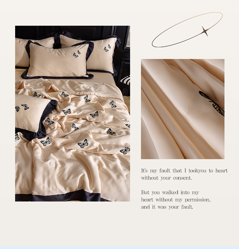 大麦家纺 2025新款水洗天丝绣花款夏被四件套 蝴蝶飞飞-奶杏