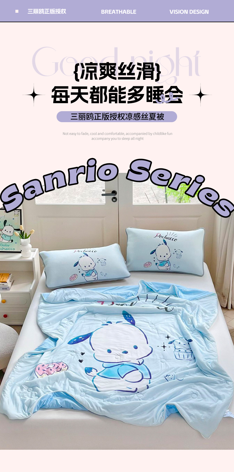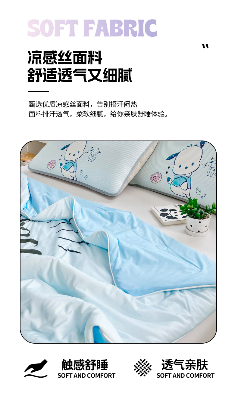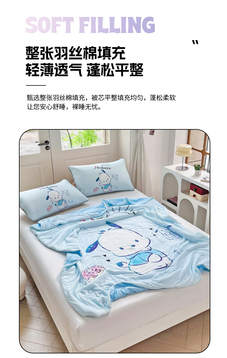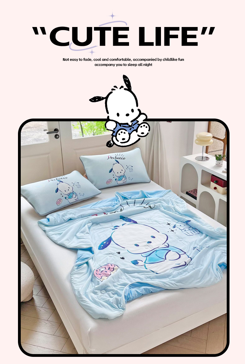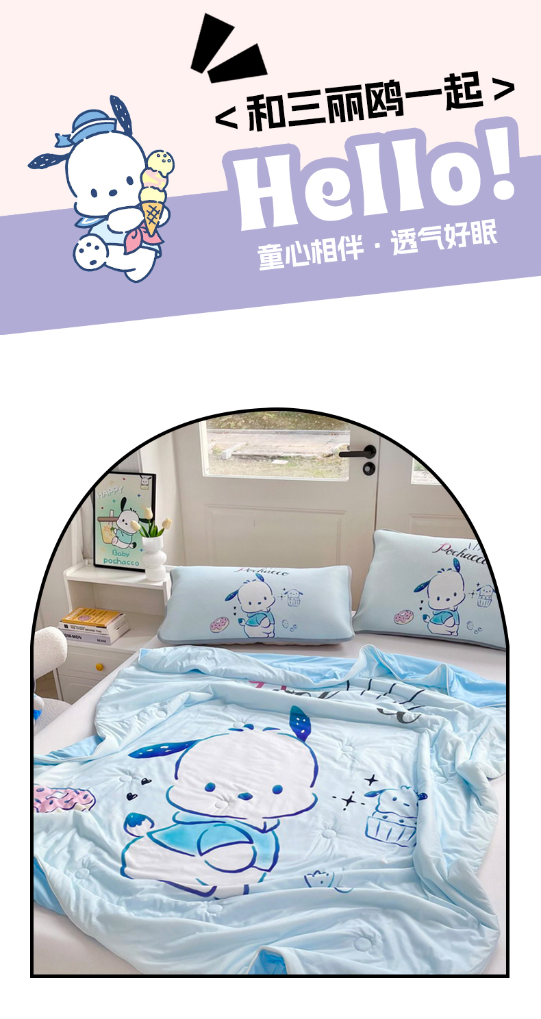 • 91家纺网 家纺一手货源 找家纺 蘭菲家纺 2025新款三丽鸥卡通印花夏被 恰恰.蓝