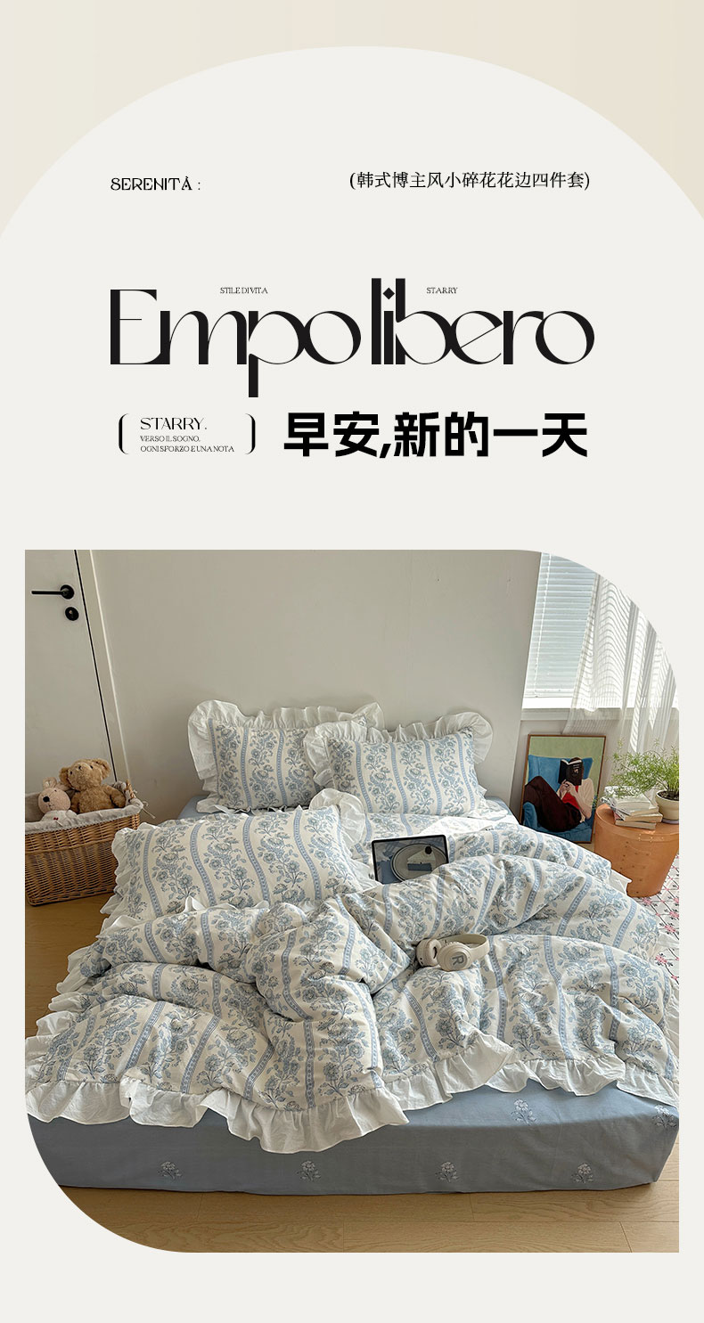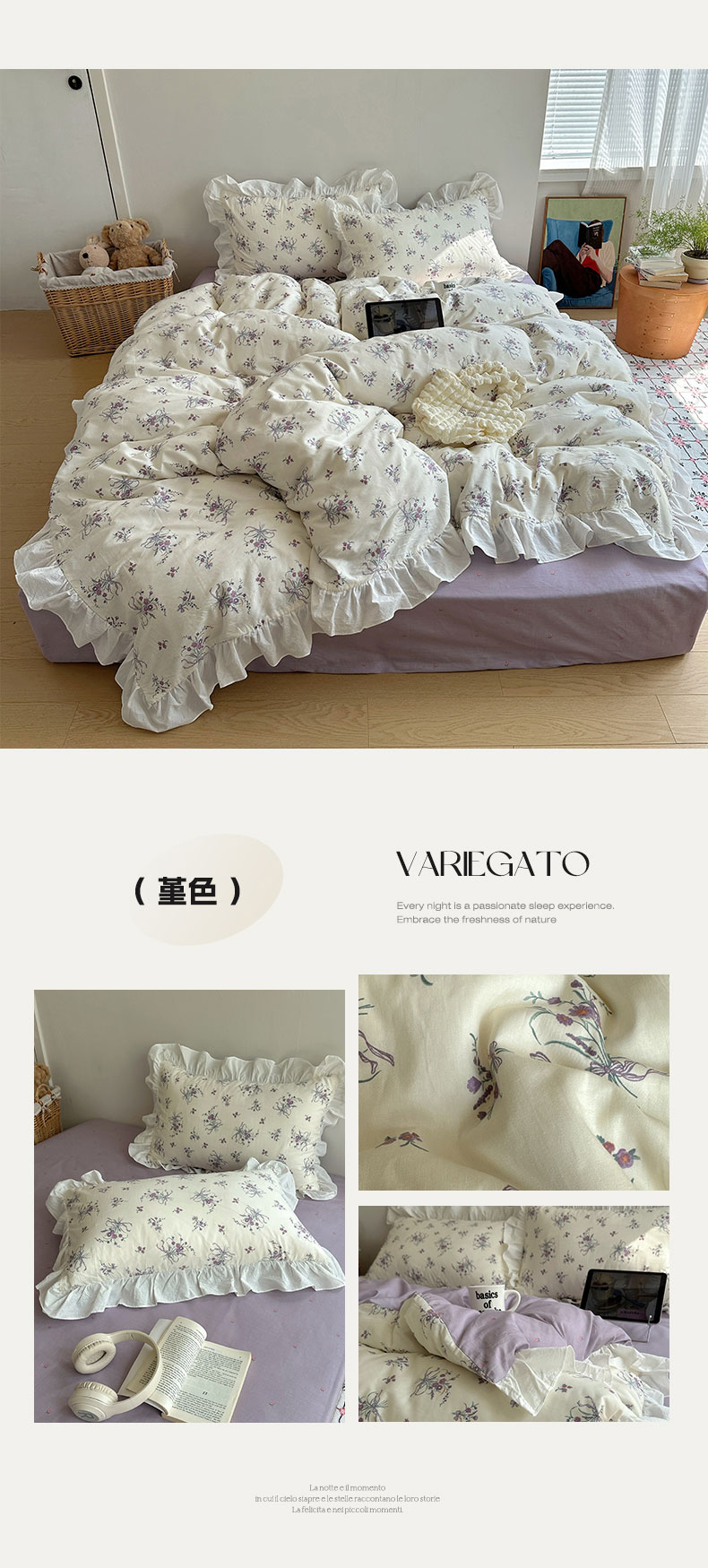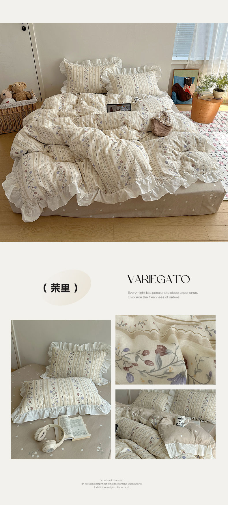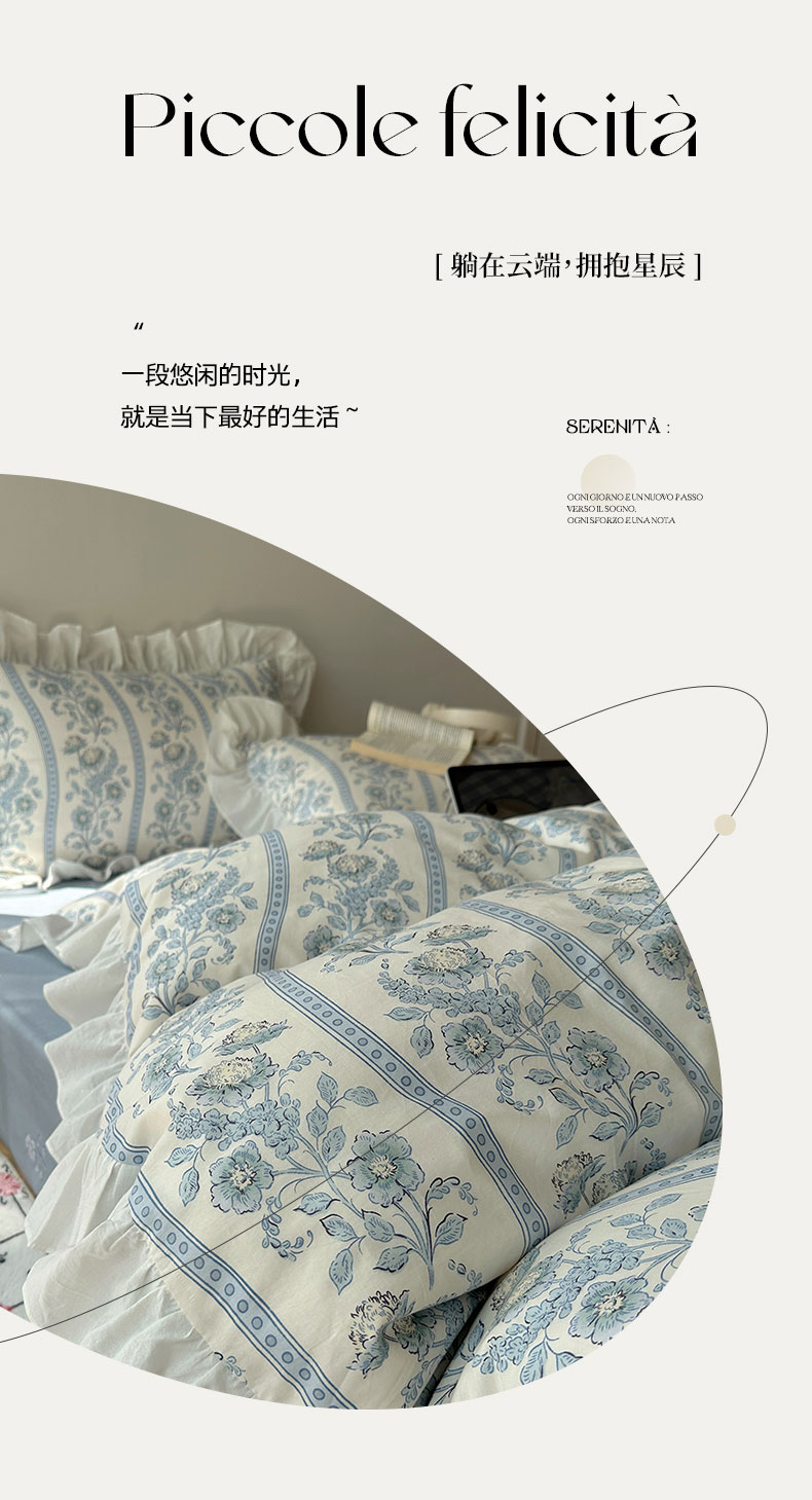 六巷胡同 2025新款40支全棉韩式INS博主风小碎花花边四件套-风格二 觅夏