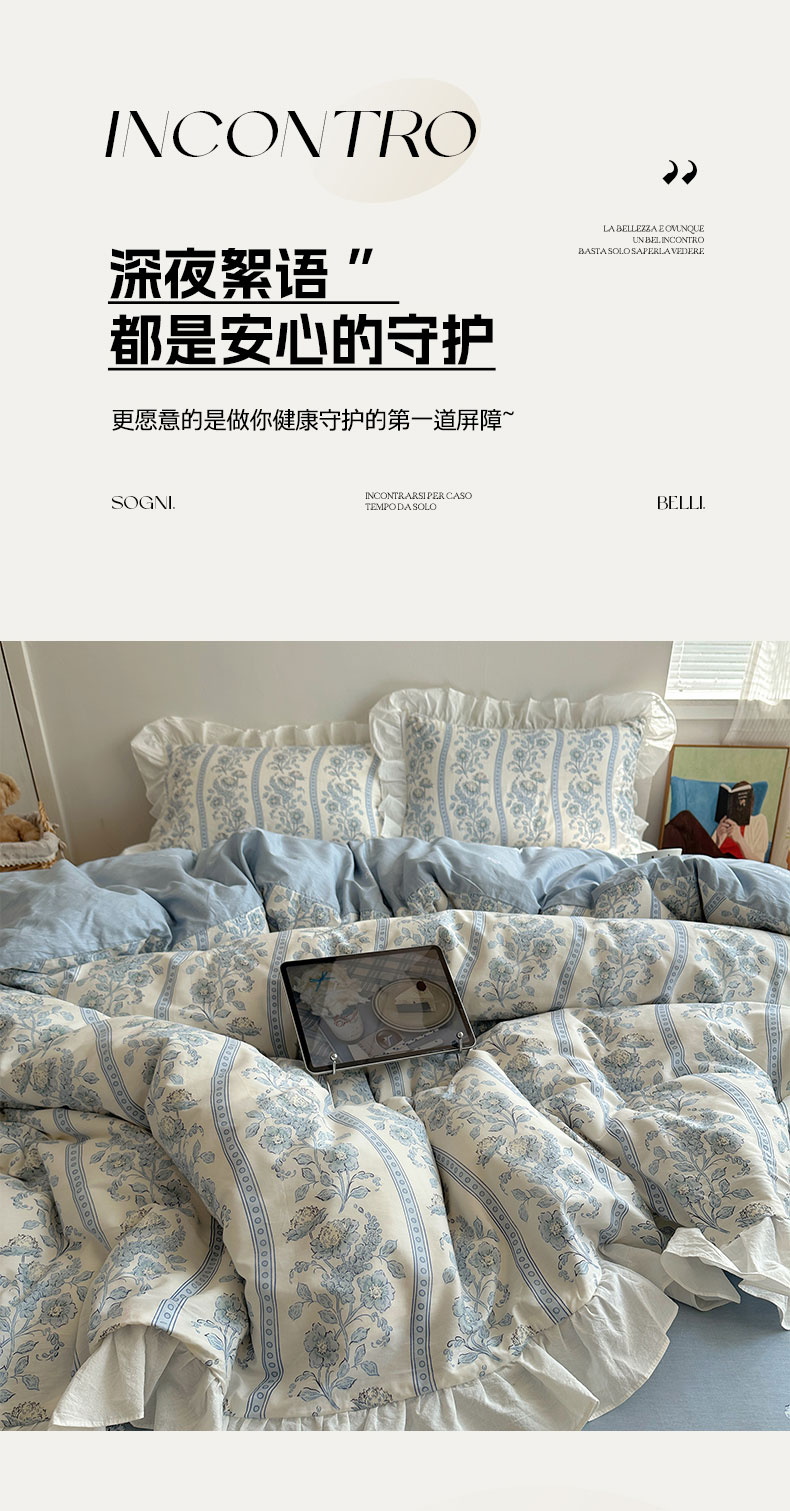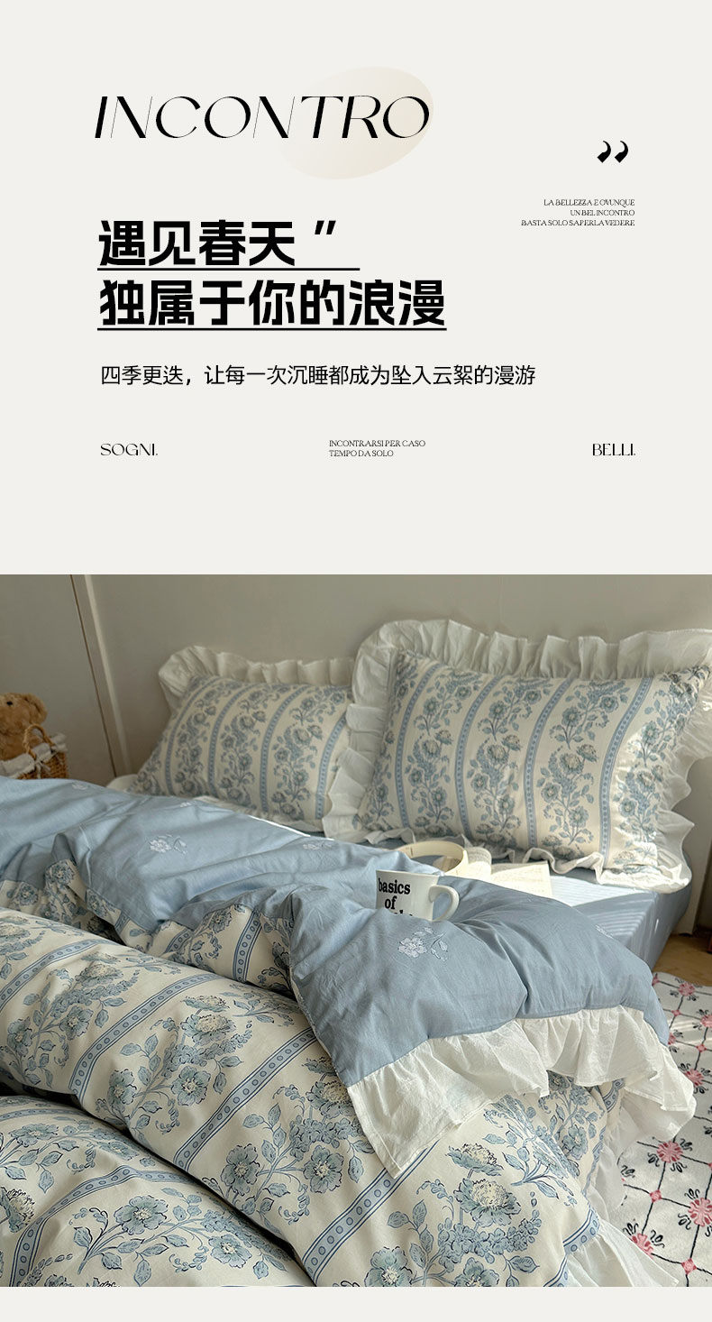 商品名称:六巷胡同 2025新款40支全棉韩式INS博主风小碎花花边四件套-风格二 觅夏