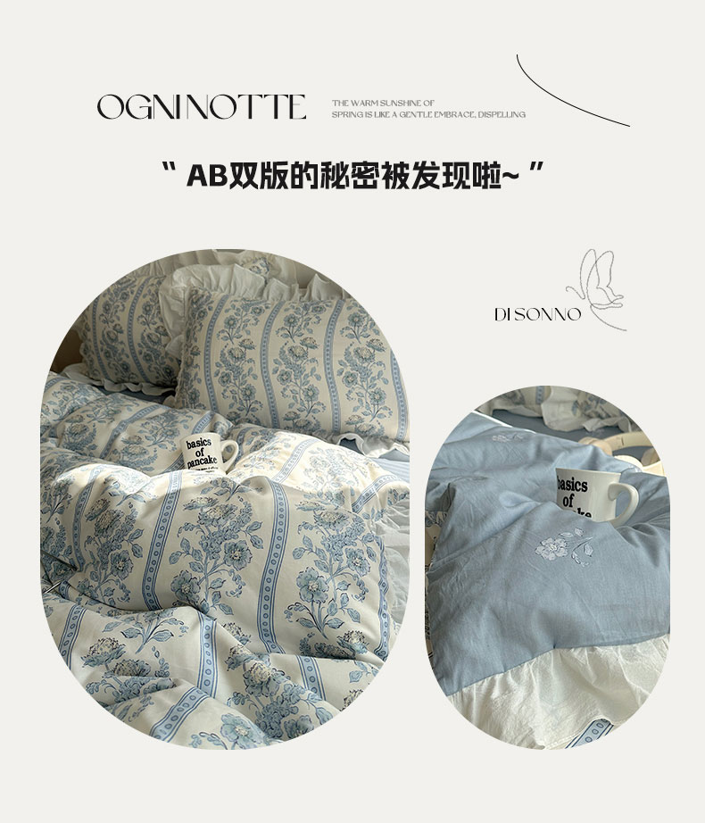 (总)六巷胡同 2026春夏新款INS博主风韩系小碎花全棉花边款四件套,南乔,贝芮,浅栀,苏汐,予椿,允夏,知棠