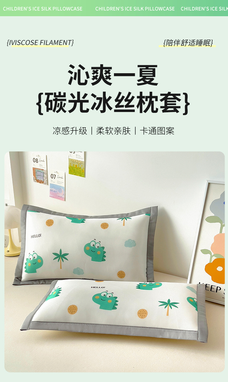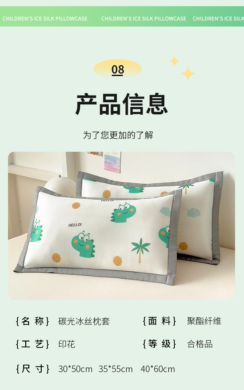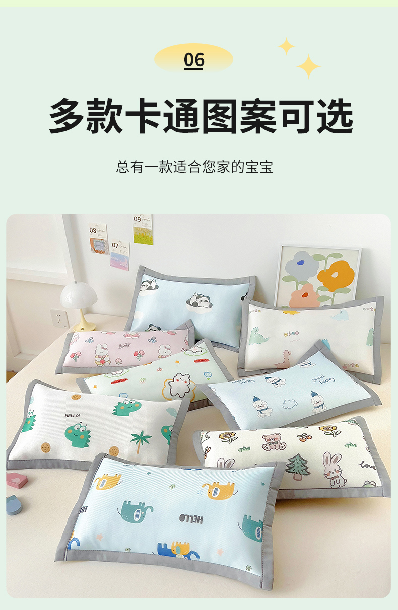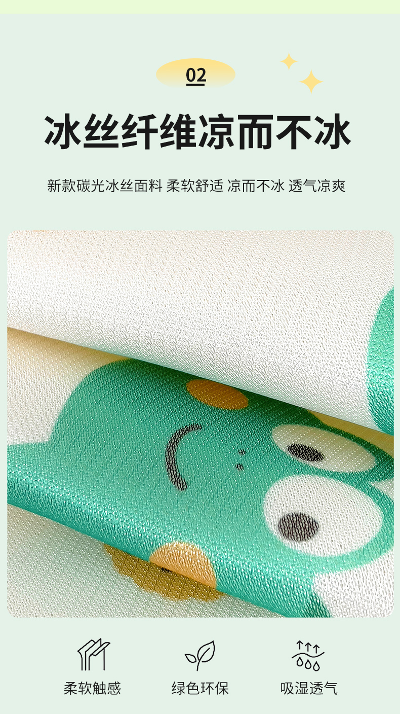 • 91家纺网 家纺一手货源 找家纺 乐秀家纺 2025春夏新款碳光冰丝儿童凉席枕套 动物花园