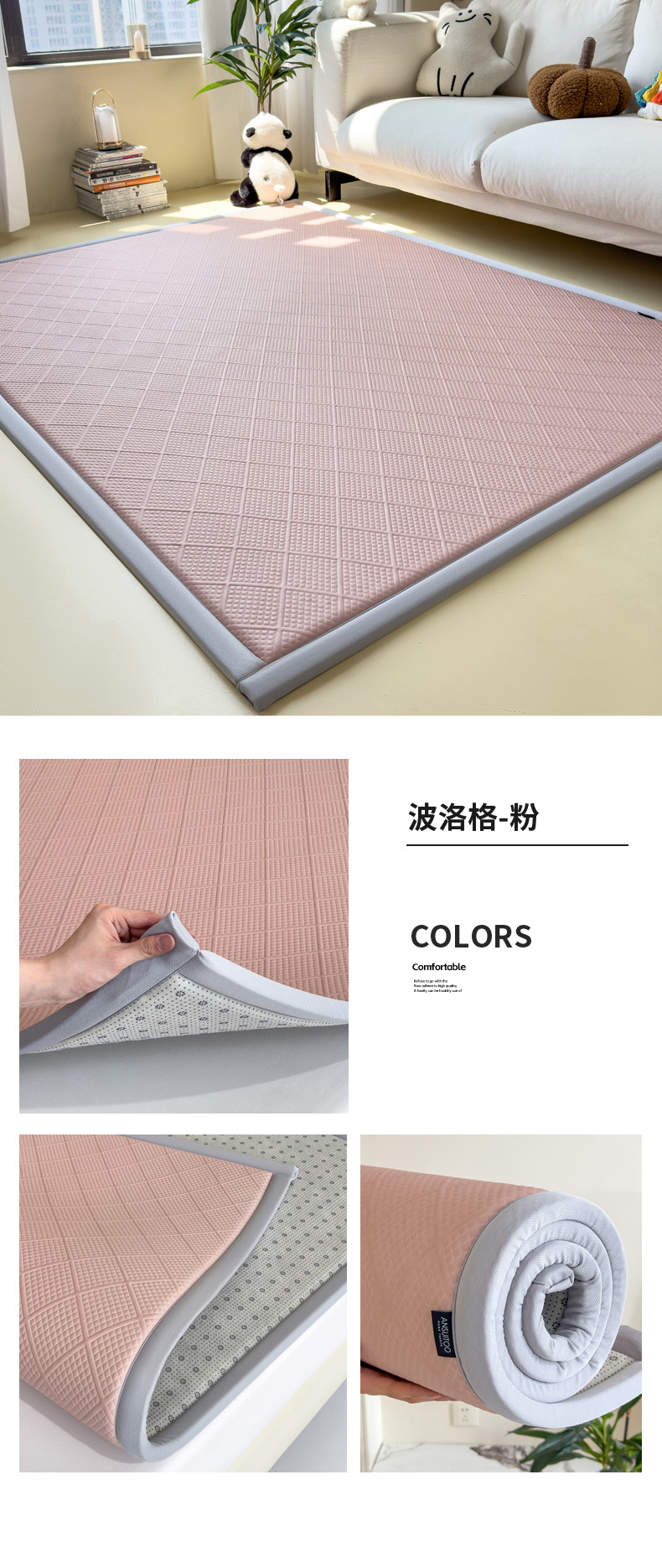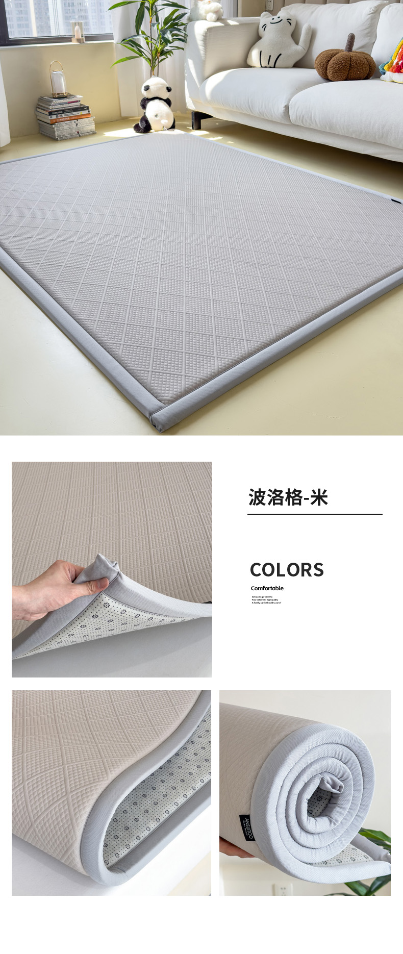 (总)席世家 2025新款凉感豆豆多功能地垫凉席垫,波洛格-粉,波洛格-灰,波洛格-蓝,波洛格-米,小熊-粉,小熊-蓝