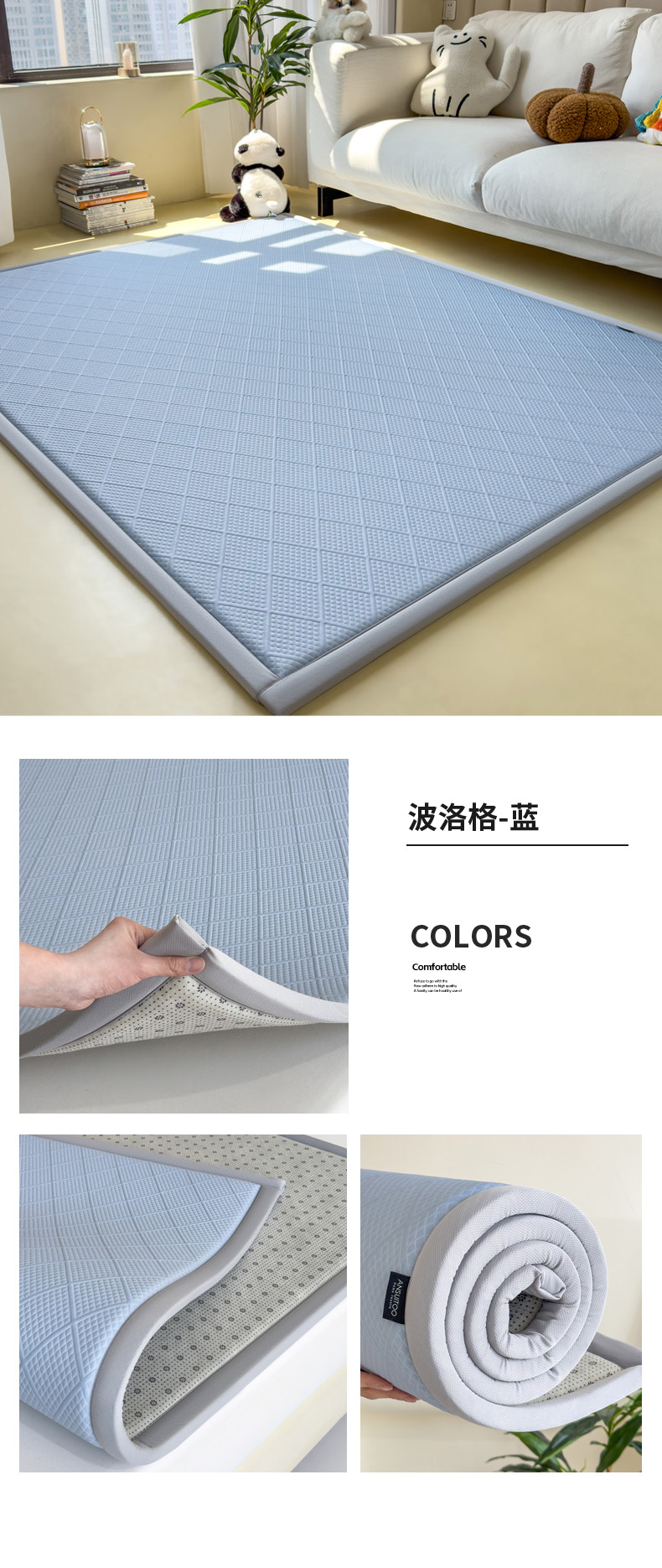 (总)席世家 2025新款凉感肌理多功能地垫凉席垫,肌理-灰,肌理-蓝,肌理-绿