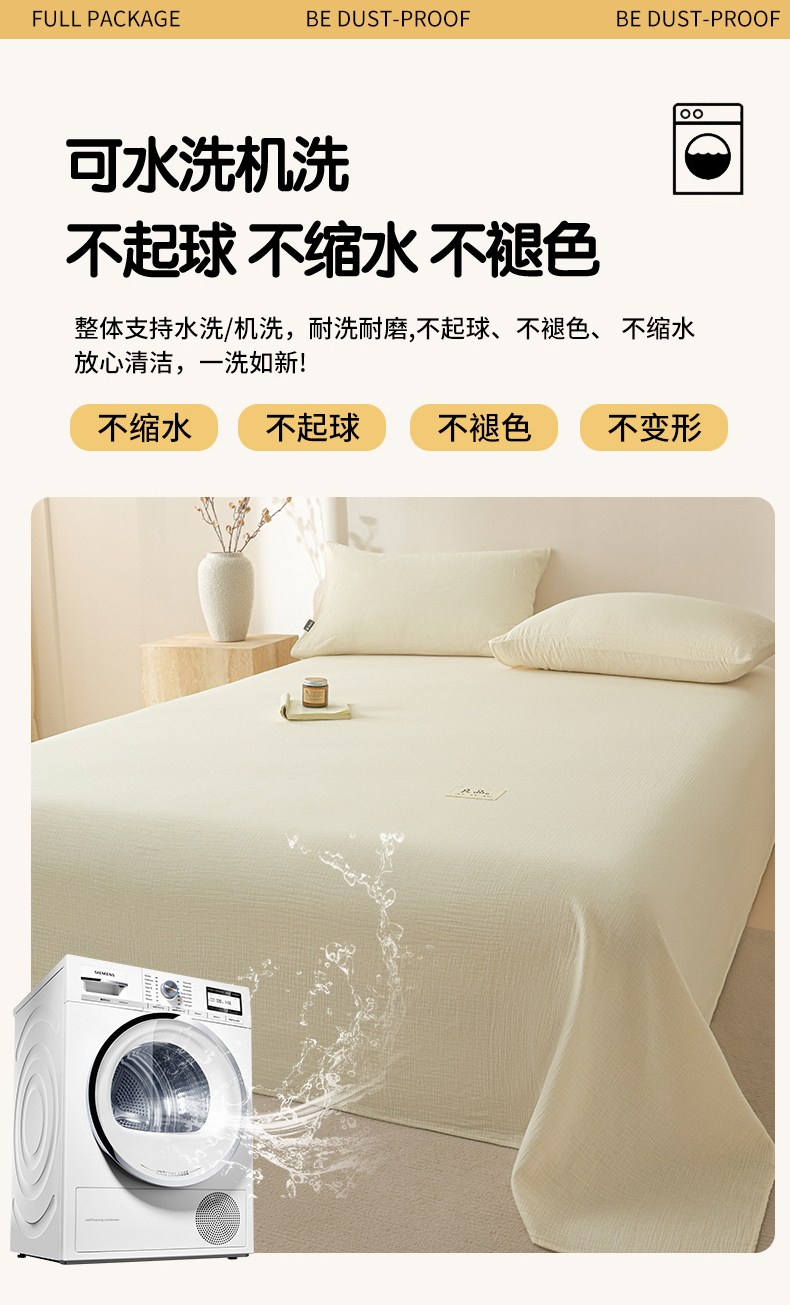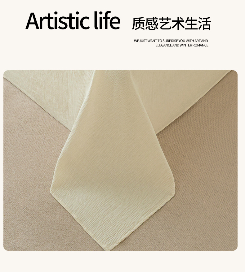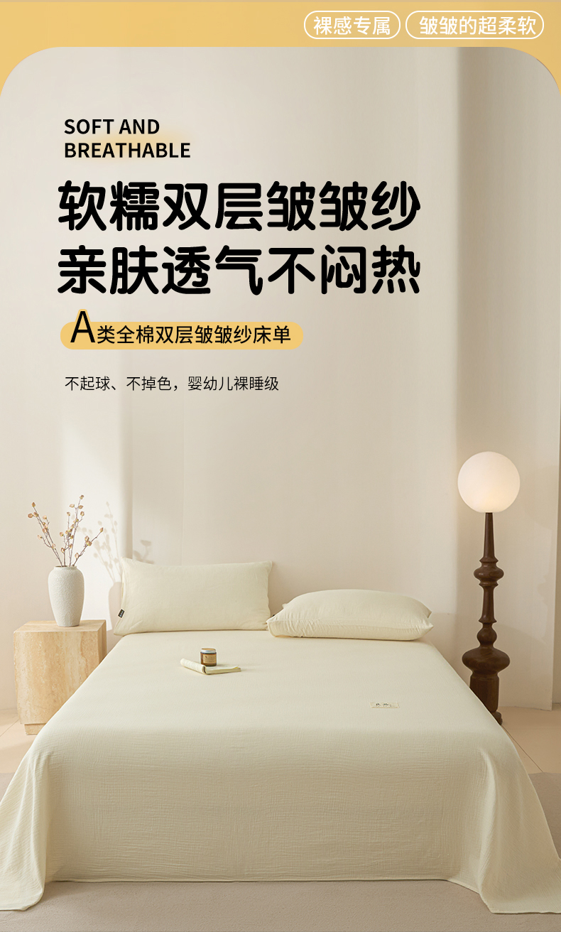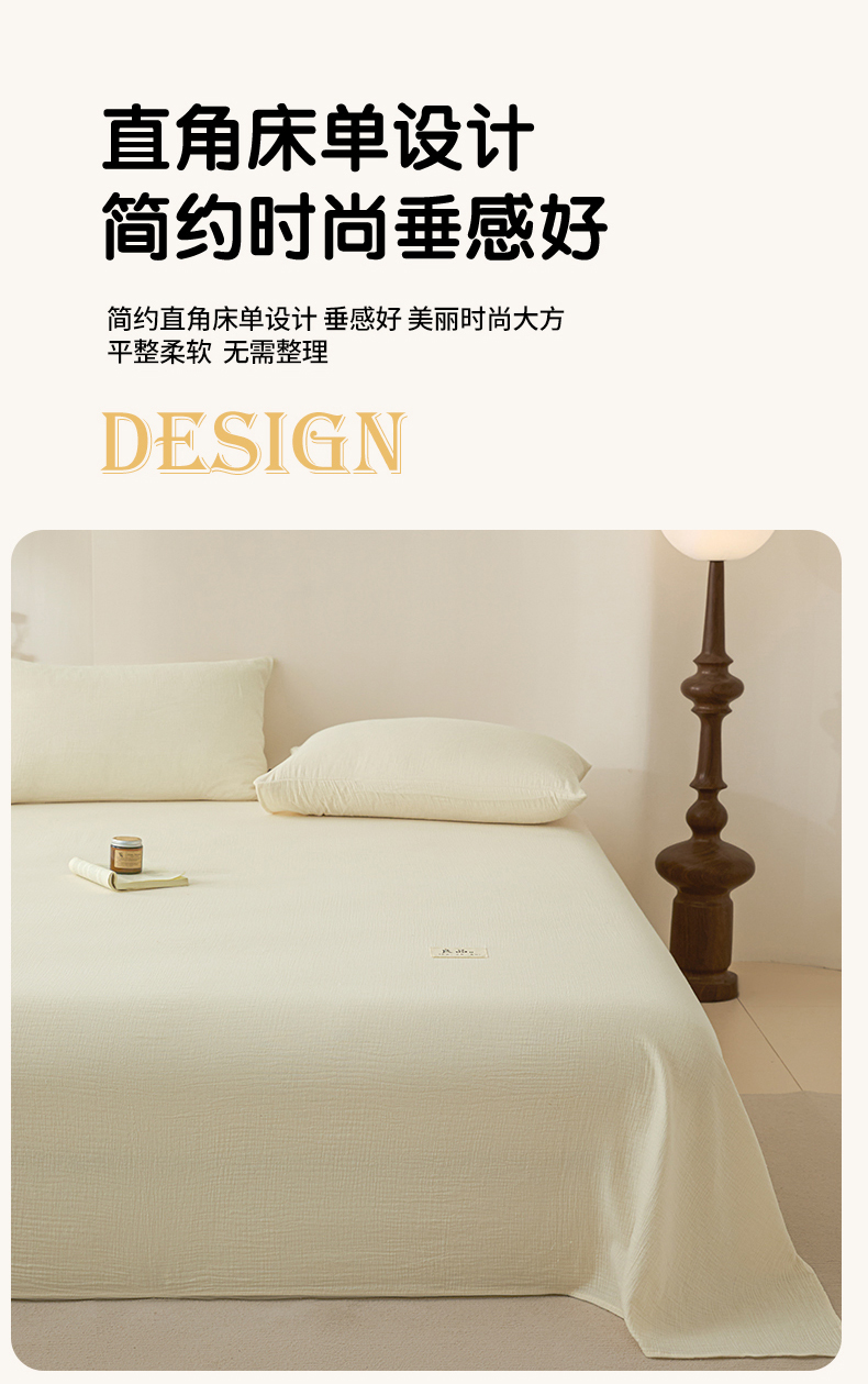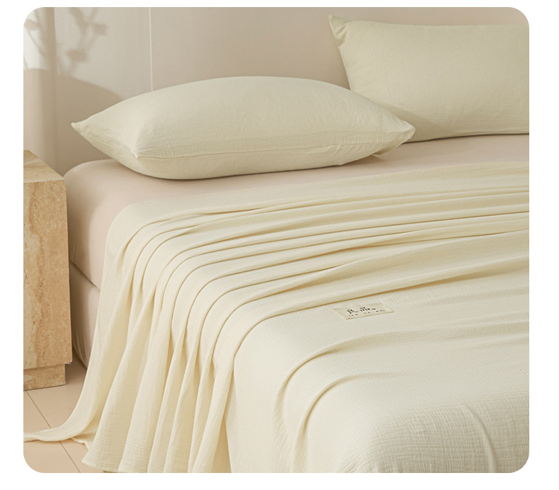 • 91家纺网 家纺一手货源 找家纺 鑫钰 2025新款纯色系列全棉双层皱皱纱床单-床笠 奶茶白-床单