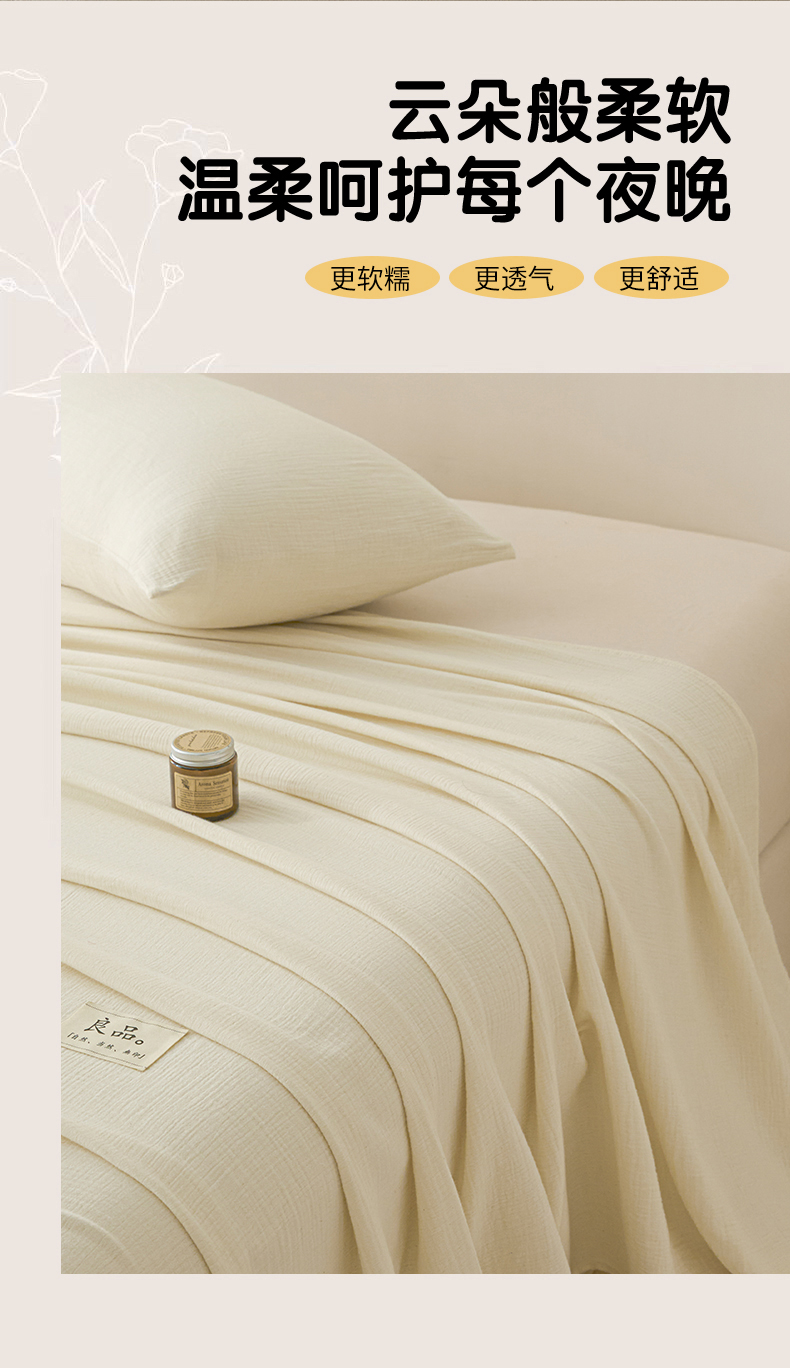 当前位置: 91家纺网 > 商品网购 > 床上用品 > 床单 > 鑫钰 2025新款纯色系列全棉双层皱皱纱床单-床笠 奶茶白-床单