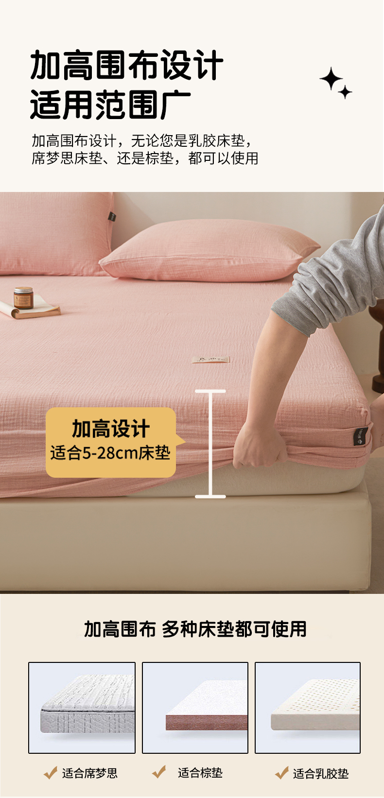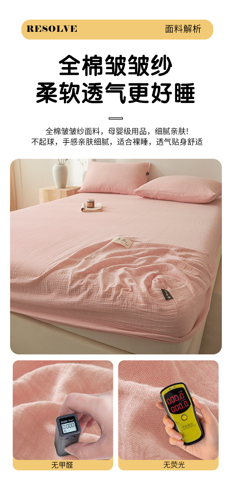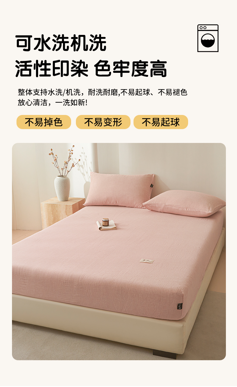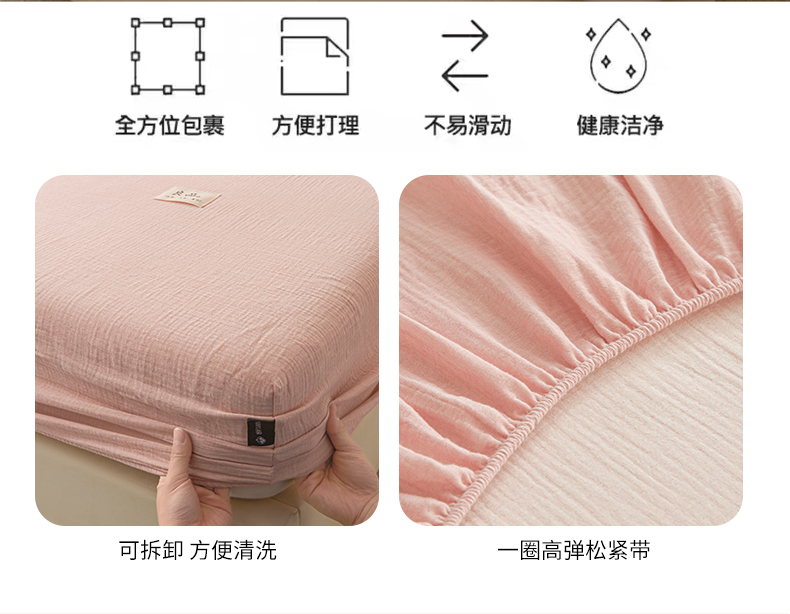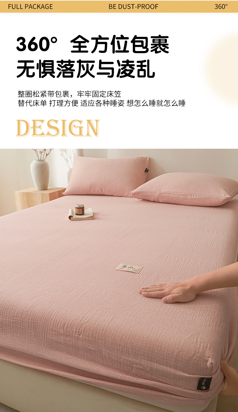 • 91家纺网 家纺一手货源 找家纺 鑫钰 2025新款纯色系列全棉双层皱皱纱床单-床笠 仙女粉-床笠