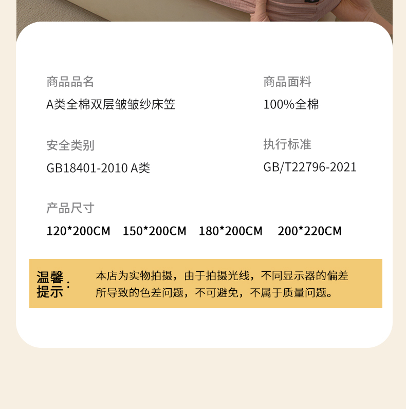 当前位置: 91家纺网 > 商品网购 > 床上用品 > 床单 > 鑫钰 2025新款纯色系列全棉双层皱皱纱床单-床笠 仙女粉-床笠