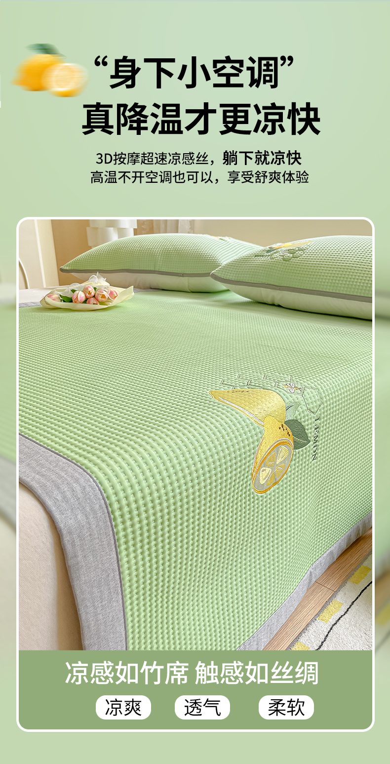 当前位置: 91家纺网 > 商品网购 > 床上用品 > 凉席 > 冰丝席 > 鑫钰 2025新款超速凉感冰丝绣花凉席-床席款 冰柠檬-冰豆豆灰(床席款)