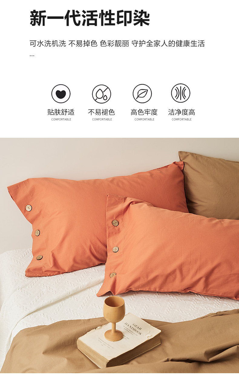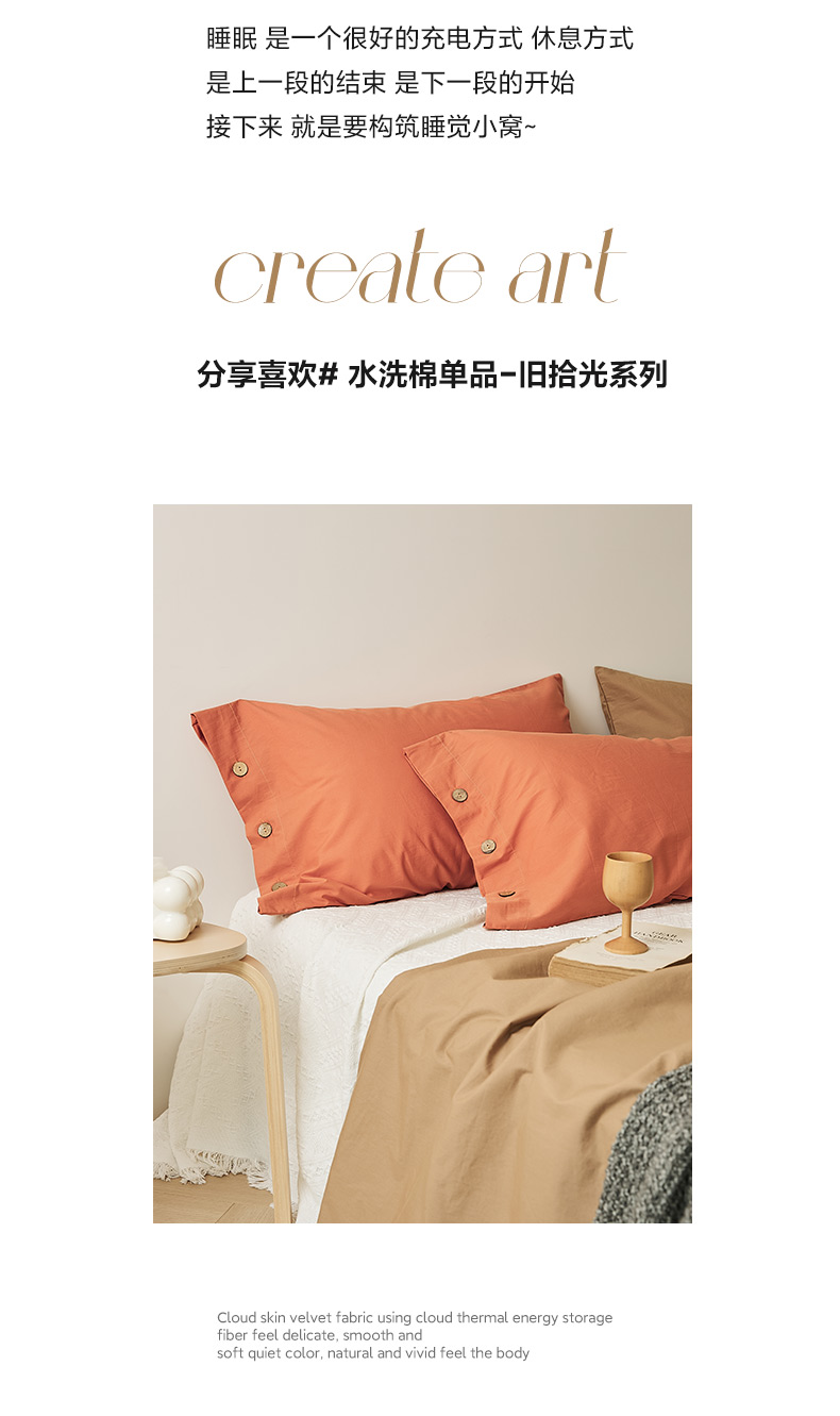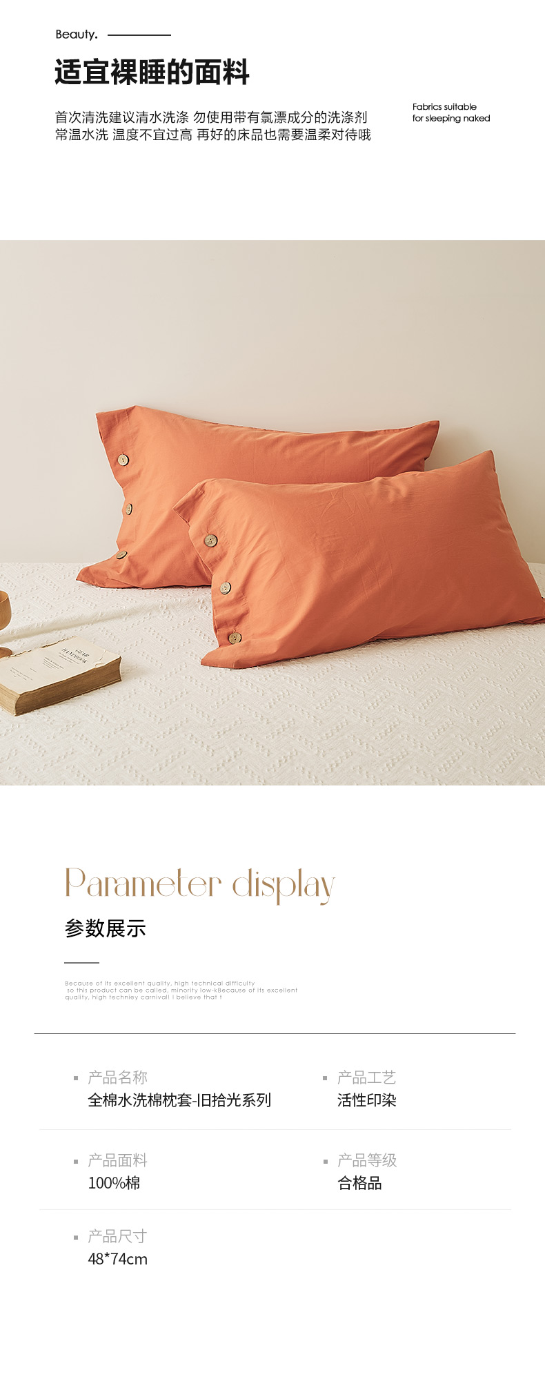 商品名称:EH家居 2025新款旧拾光系列全棉水洗棉单品枕套 旧拾光-橘红