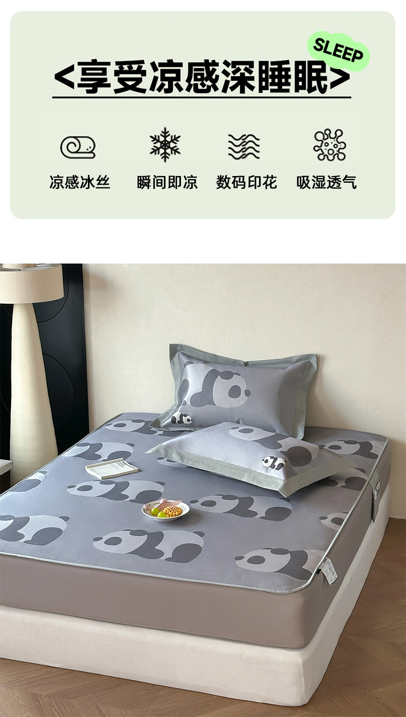 商品名称:(总)橘滋2025夏日高端A类原创设计轻奢简约数码印花冰丝席凉席床笠