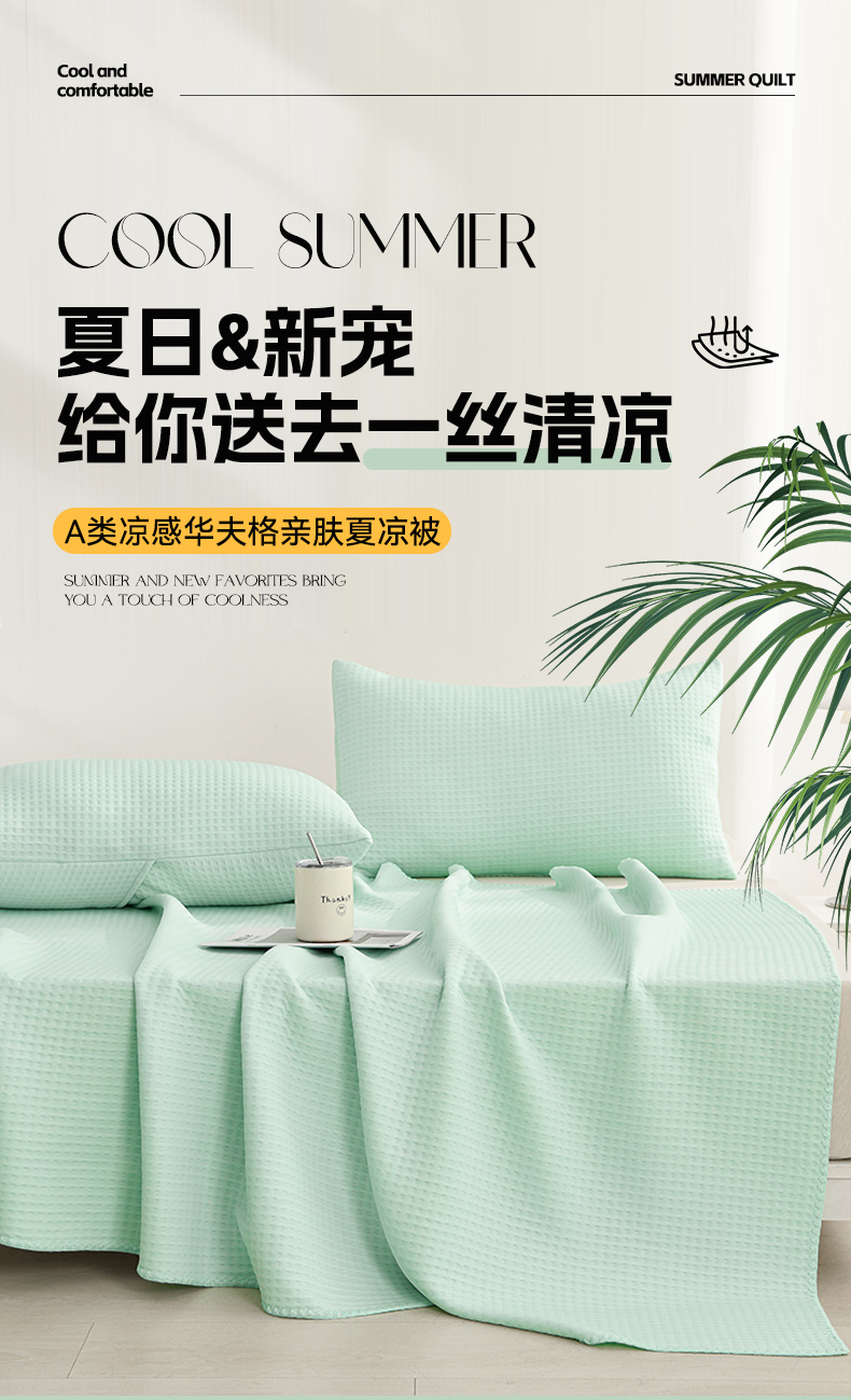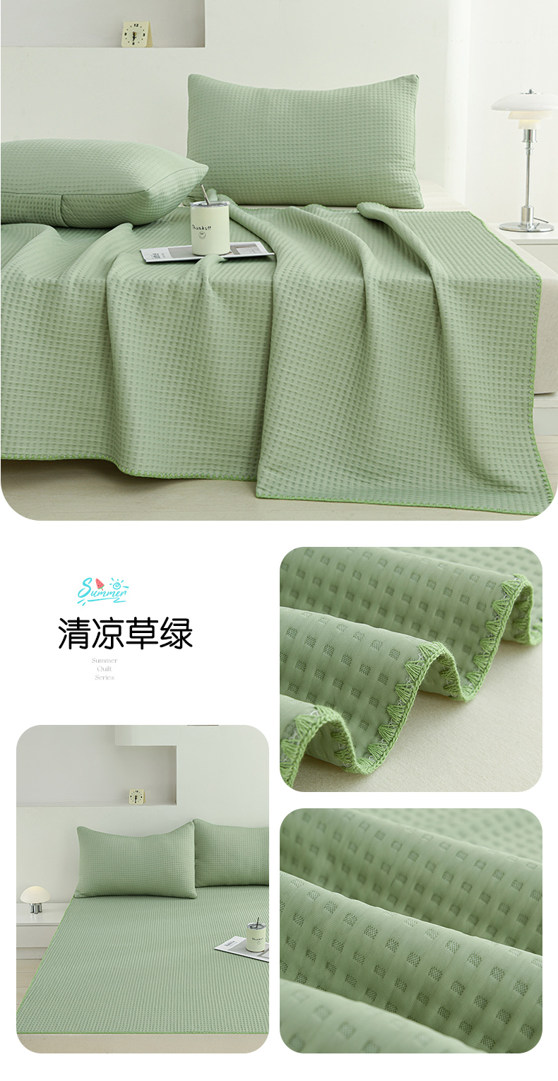 商品名称:圣楚家纺 2025春夏新款清凉华夫格夏被夏凉被空调被 清凉水绿